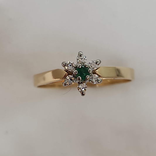 Emerald and Diamond Cluster Ring
