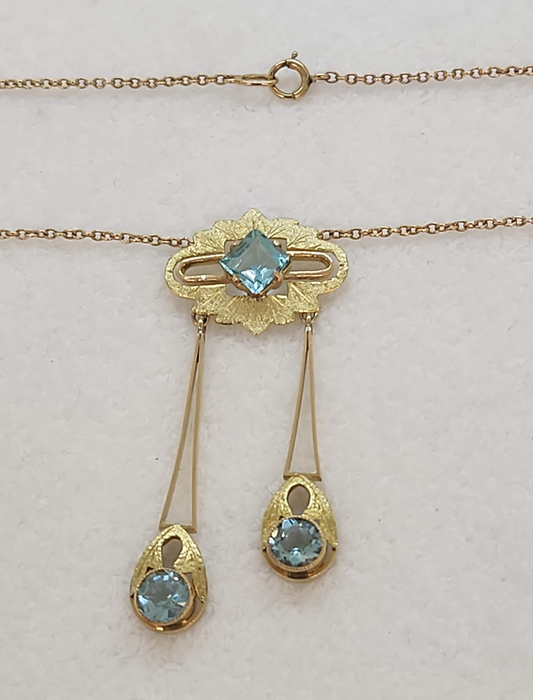 Lavalier Blue Glass Pendant and Chain