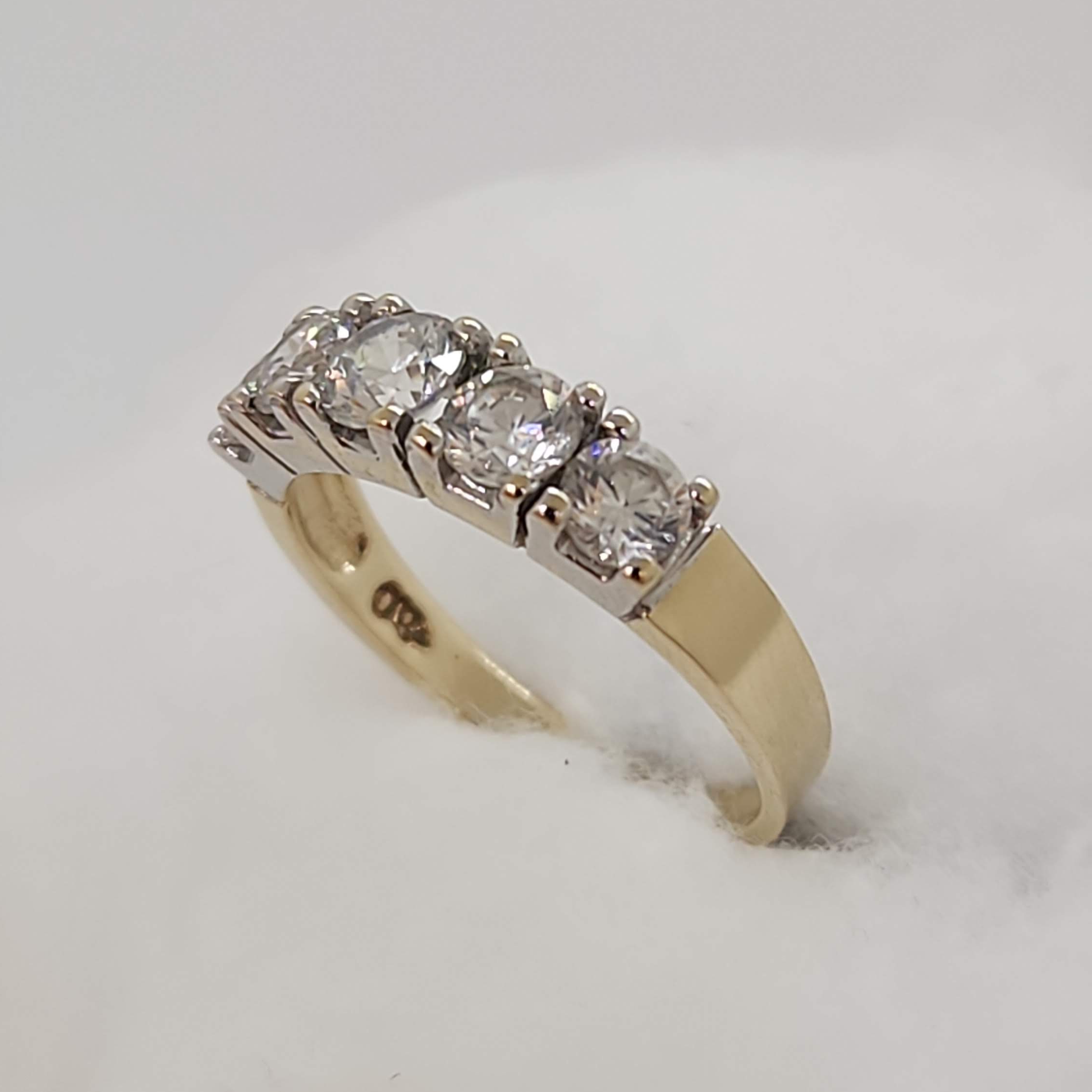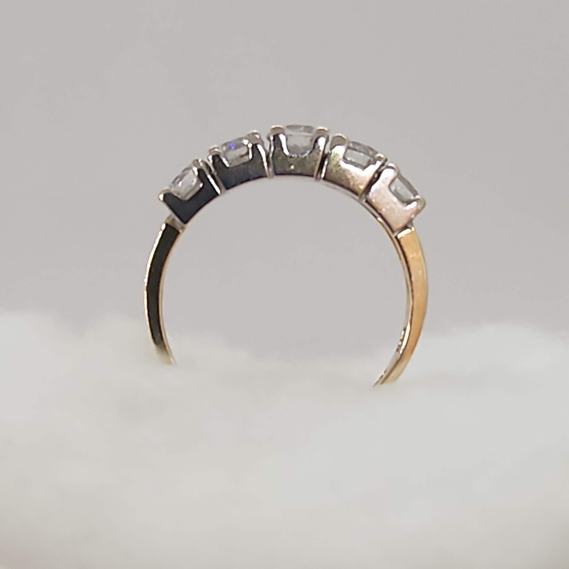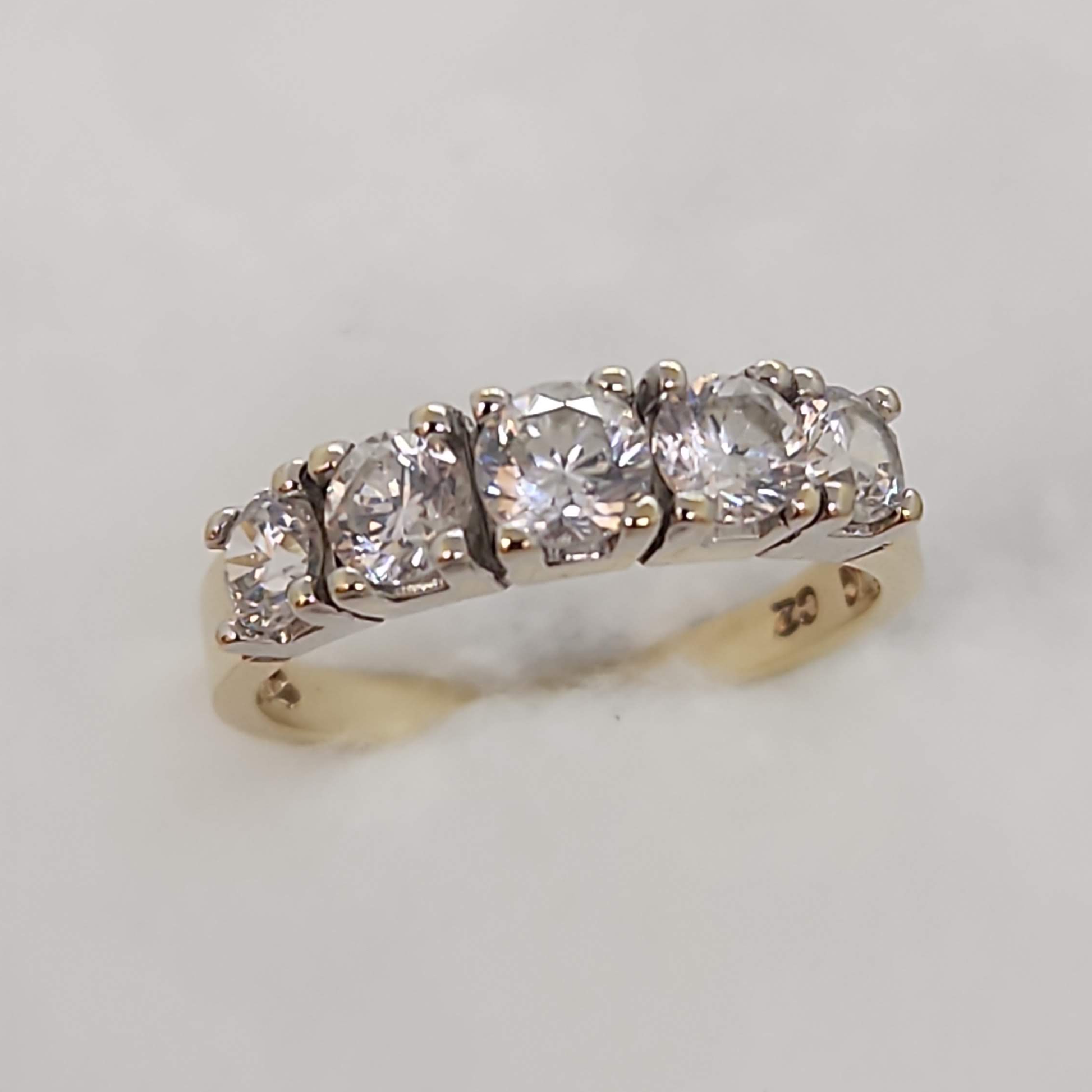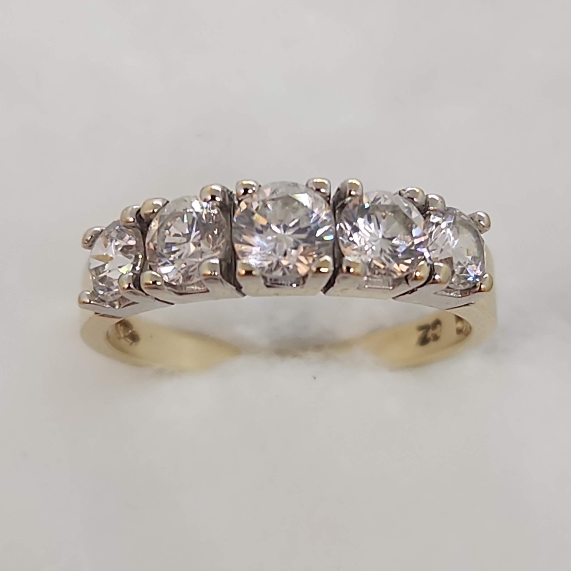 Looking for a diamond alternative? This 5 across cubic zirconia stone band may fit the bill and your budget. A classic ring design that pairs or stacks with almost anything.