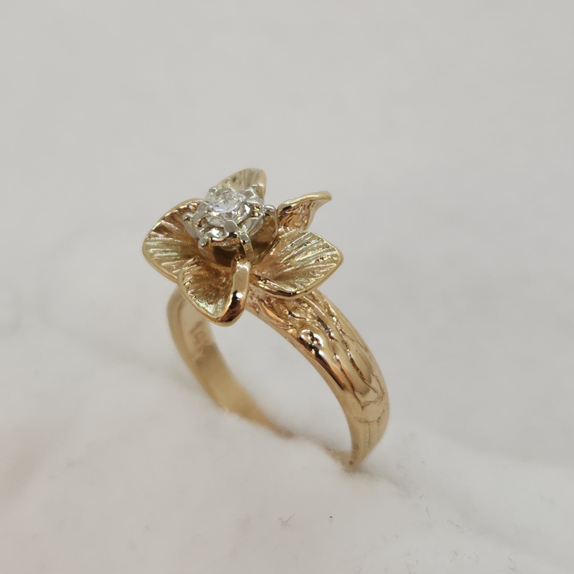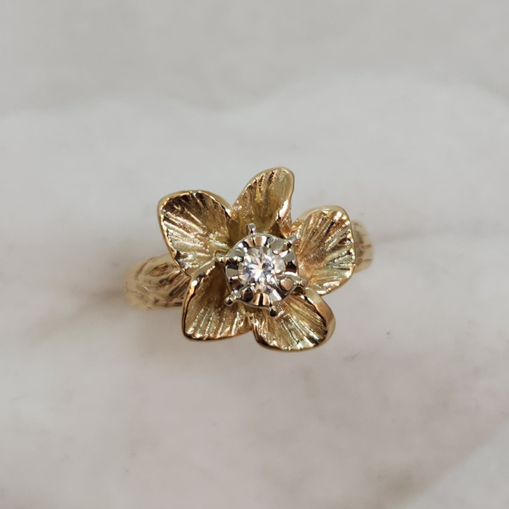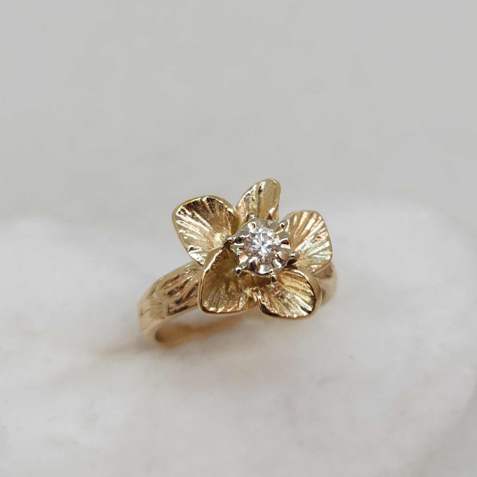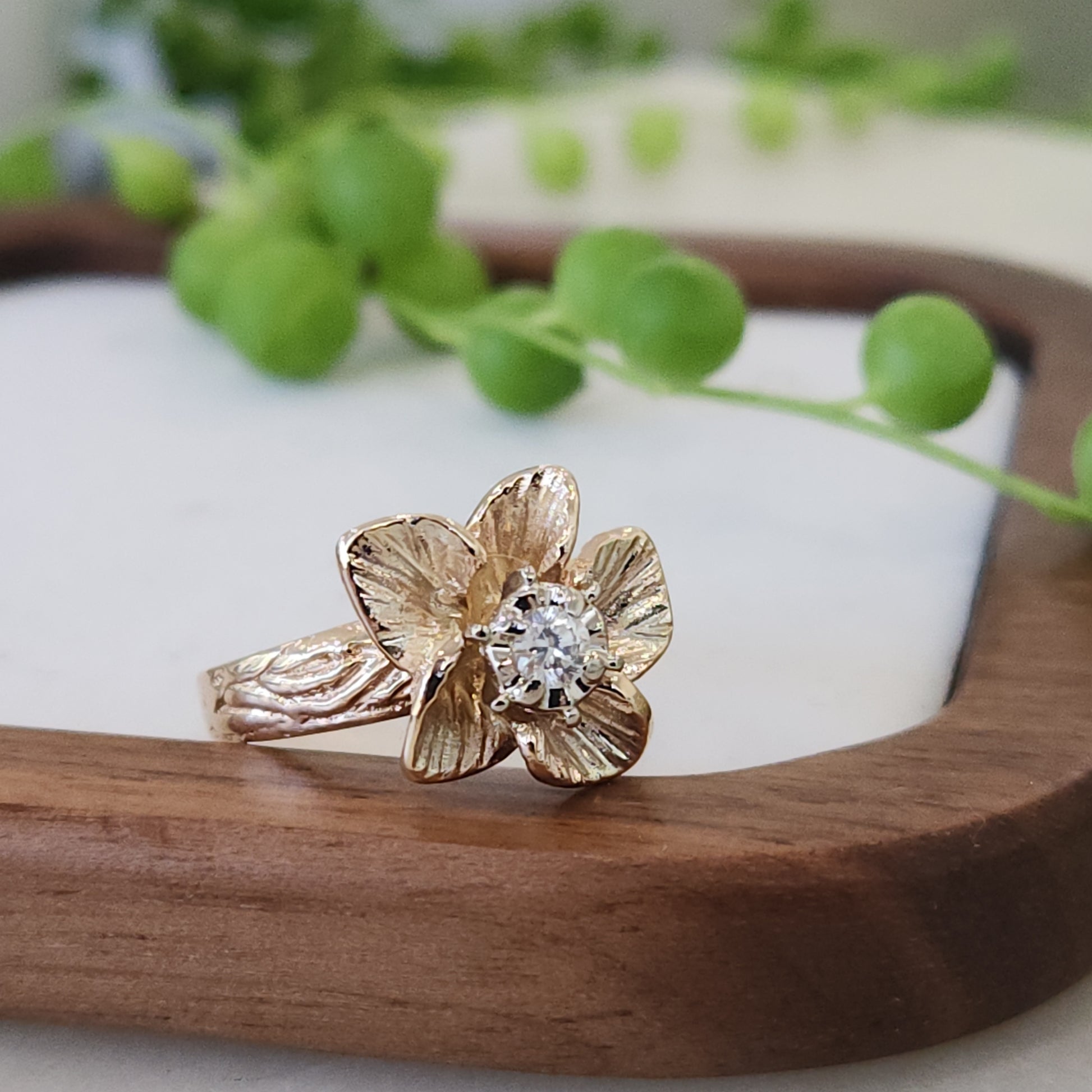 Have you ever seen a diamond ring quite like this? She's so beautiful...the way the petals of the flower look as though there's a slight breeze in the air. Everything feels as though it's got perfect proportions, the size of the flower, the height off your finger. This would be lovely for any lover of flora and fauna or a totally romantic engagement ring!