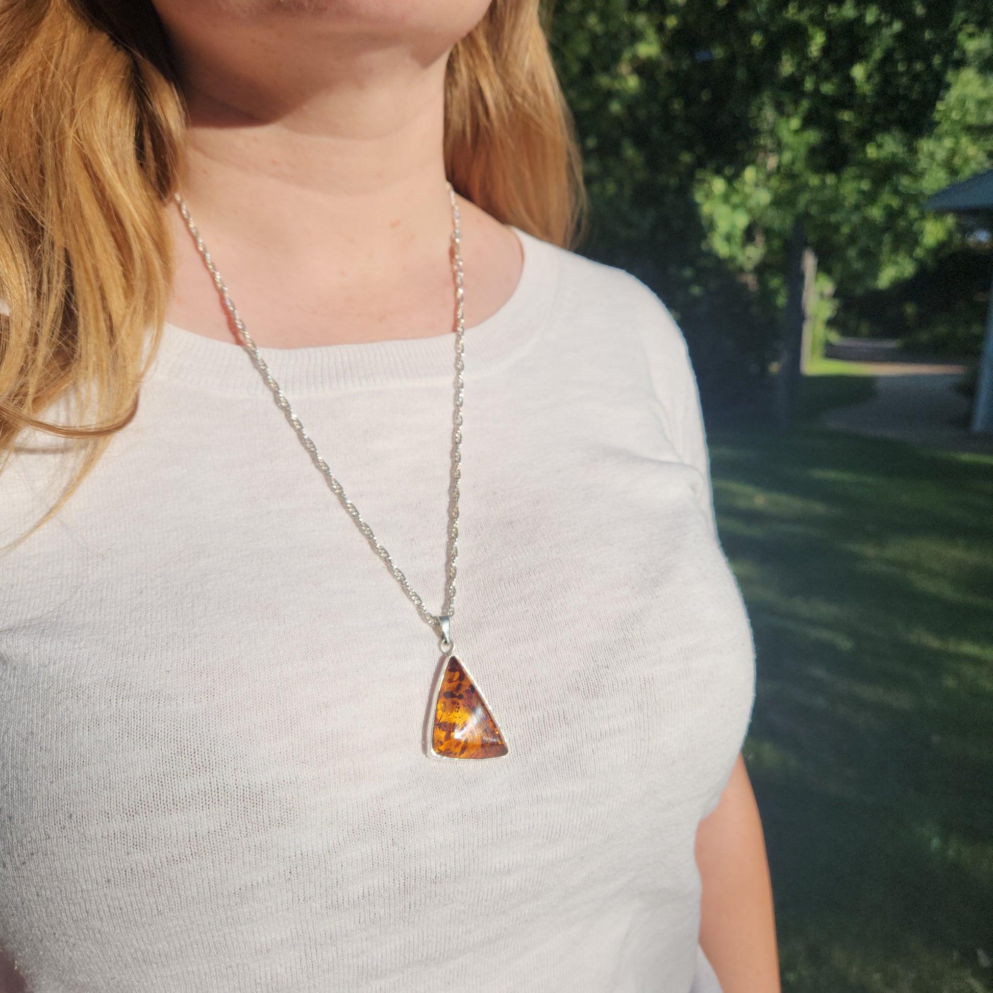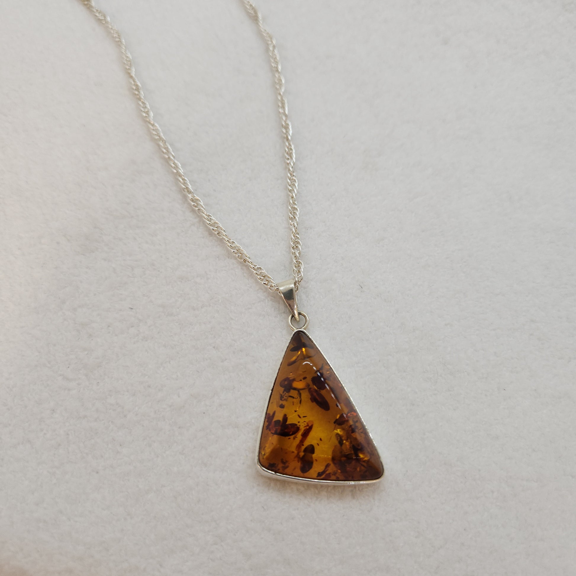 An ancient material, amber is the hardened resin of ancient pine trees. Drops of water, air bubbles or fragments of plant tissue create the unique and interesting features we can see in this stone.