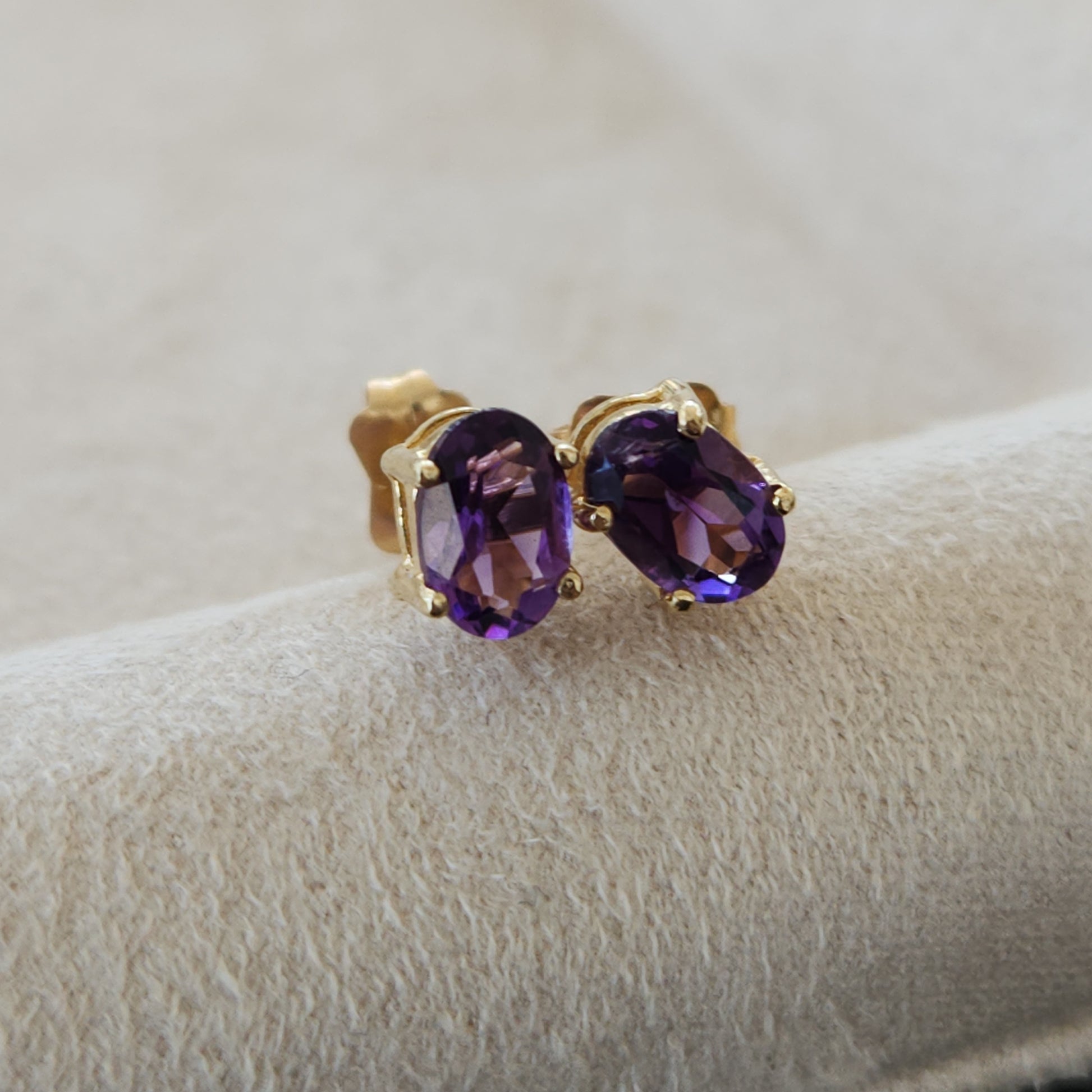 Quiet lavender purple Amethyst. February birthstone. Easy to wear, soft color. Strong basket construction and butterfly backings.