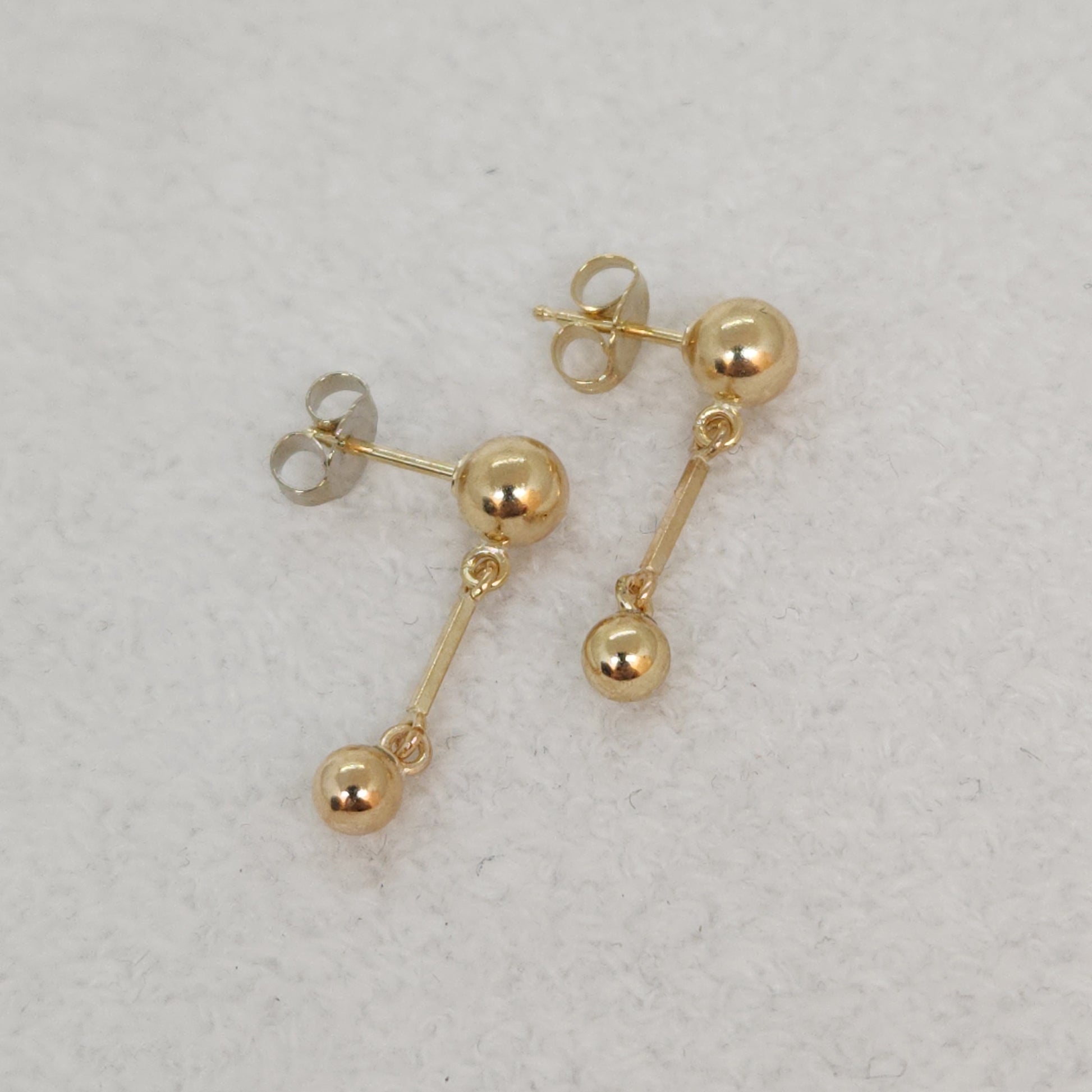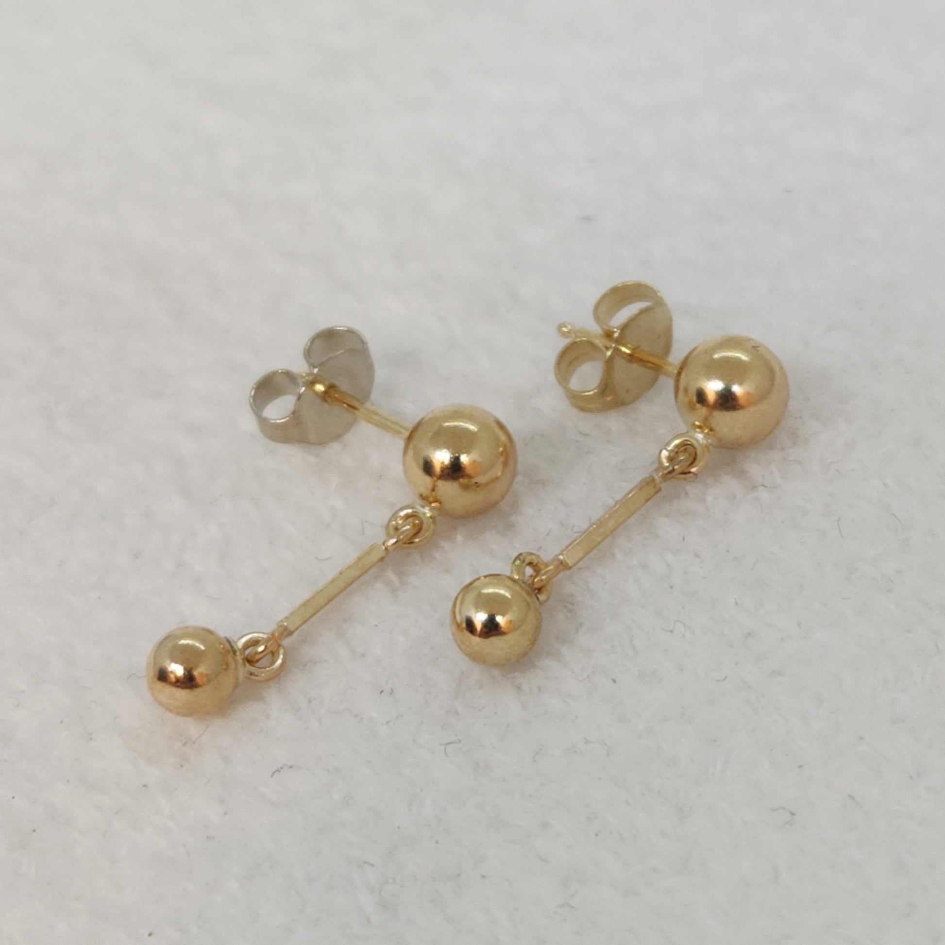 Once upon a time a goldsmith created these earrings from individual parts. Square wire bars with highly polished balls on each end. A design one can wear any day!