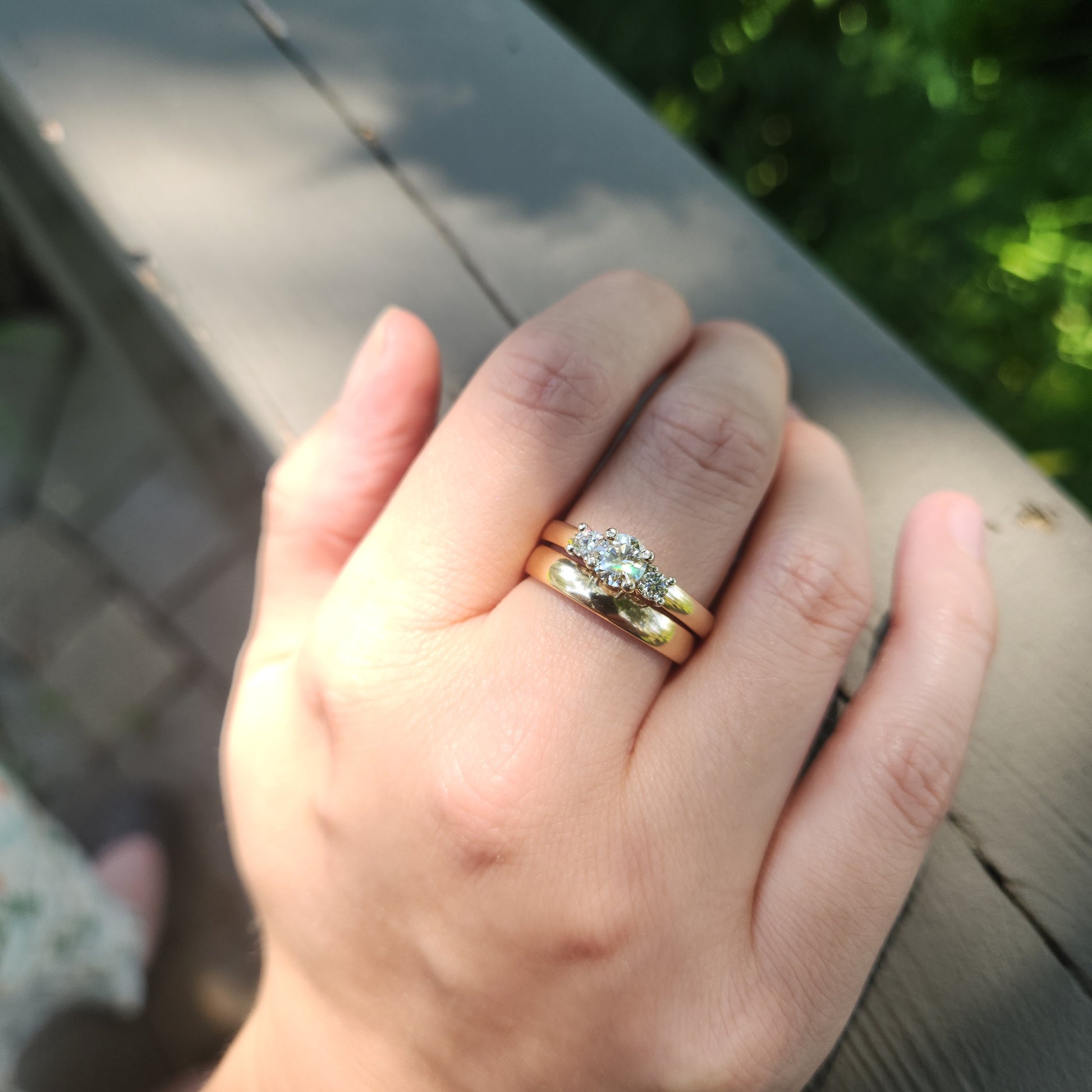 - Check out listing R1385 for a nicely paired wedding band