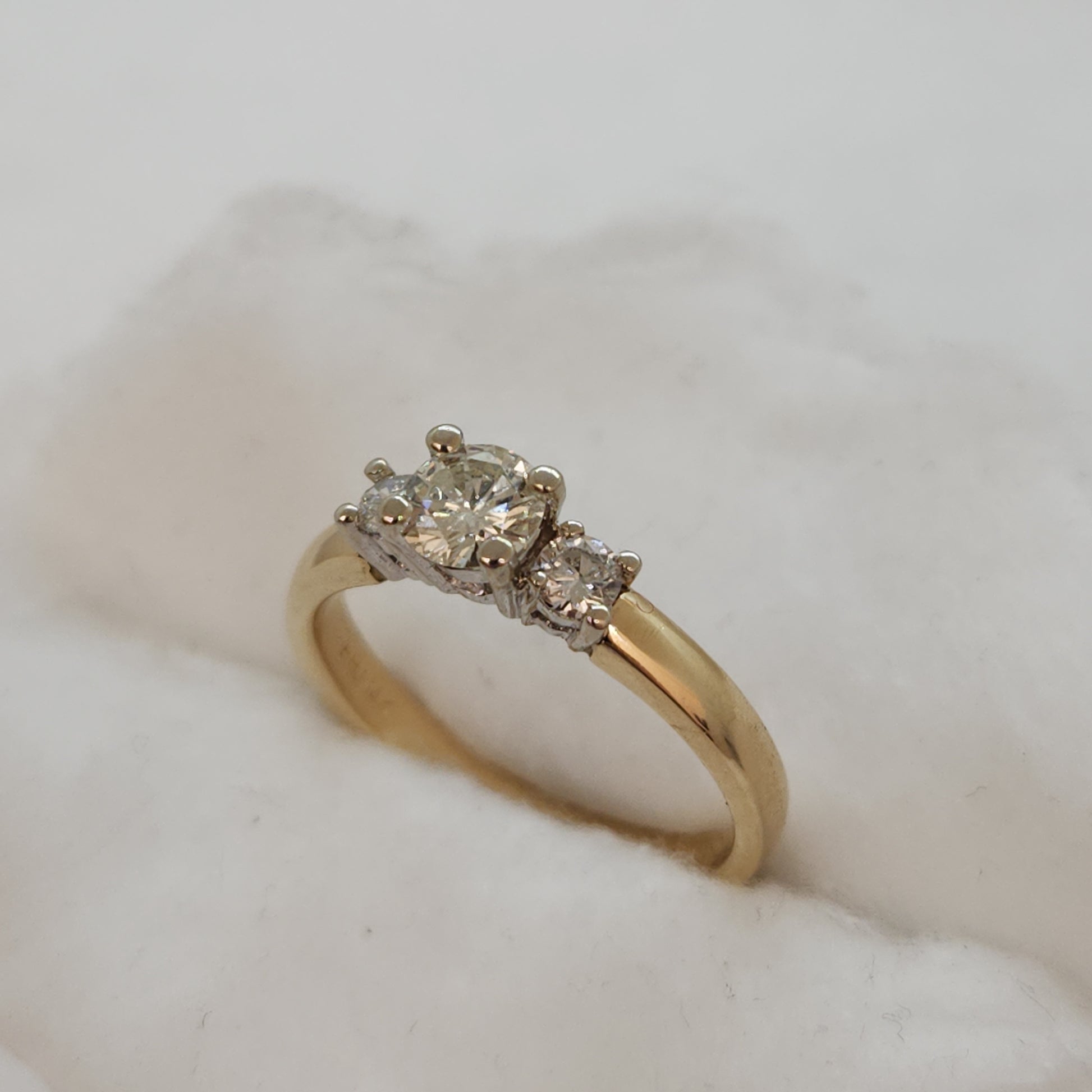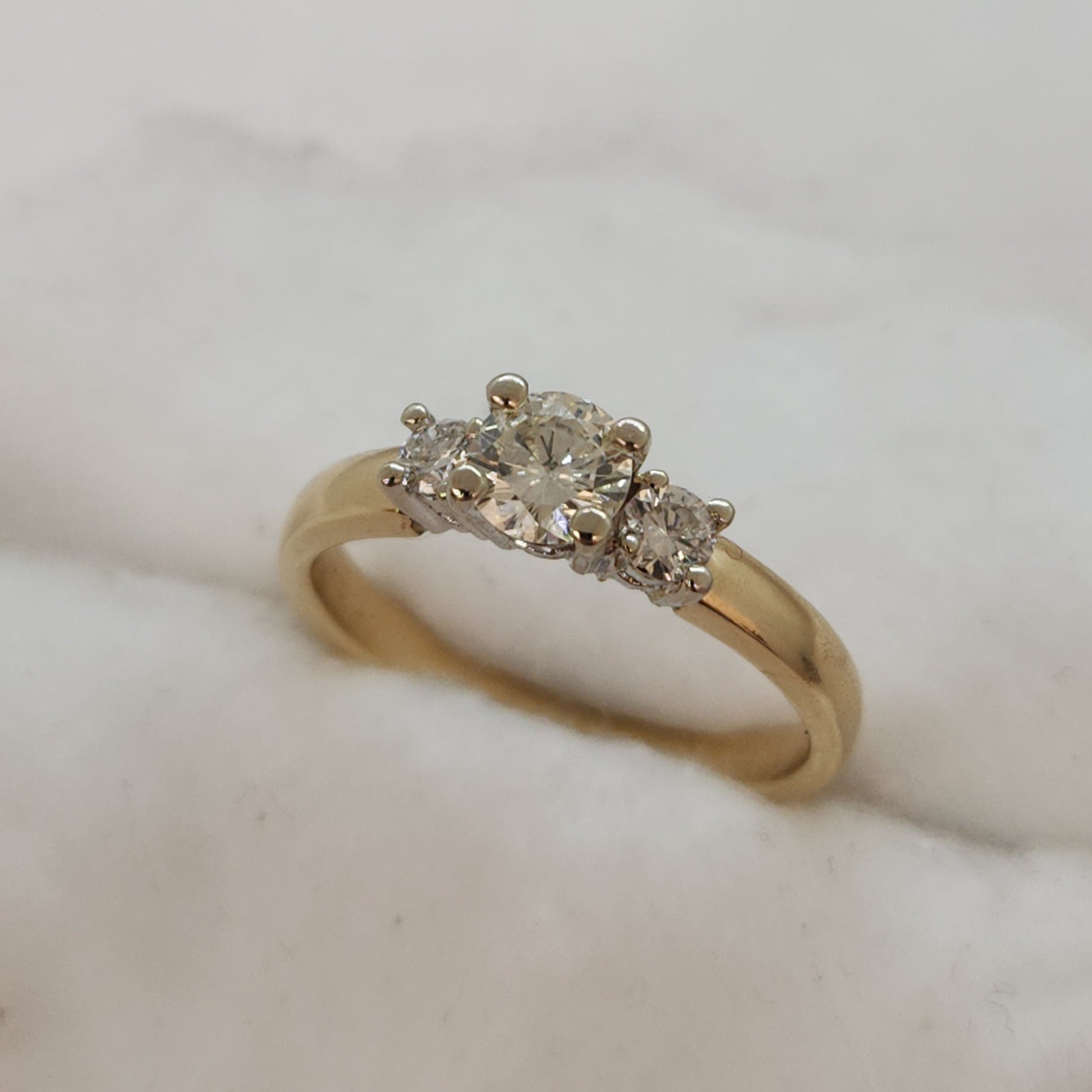 - Three Natural Diamonds, Central Diamond is 0.5ct, Ring is 0.70tcw, Clarity VS1, Colour I-J