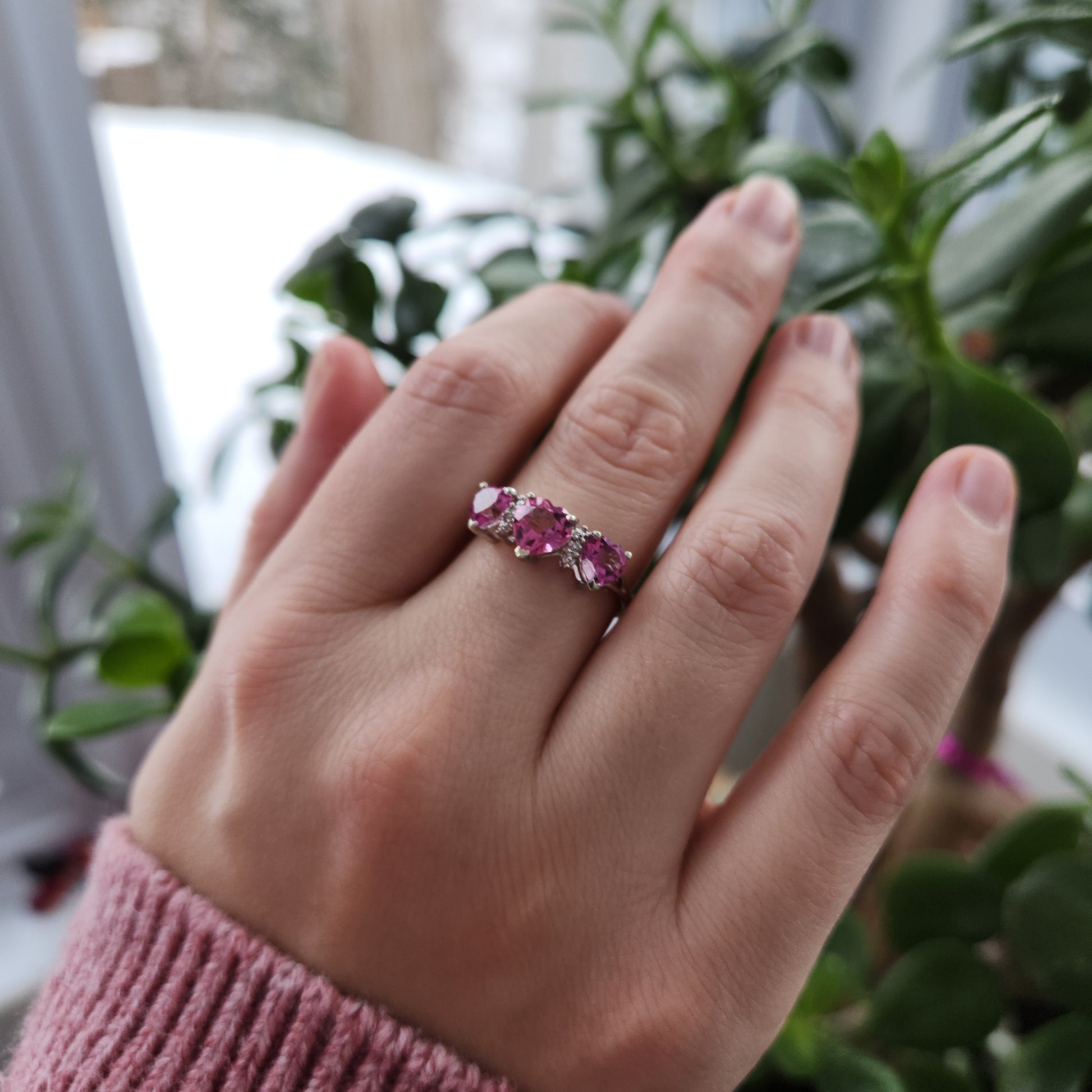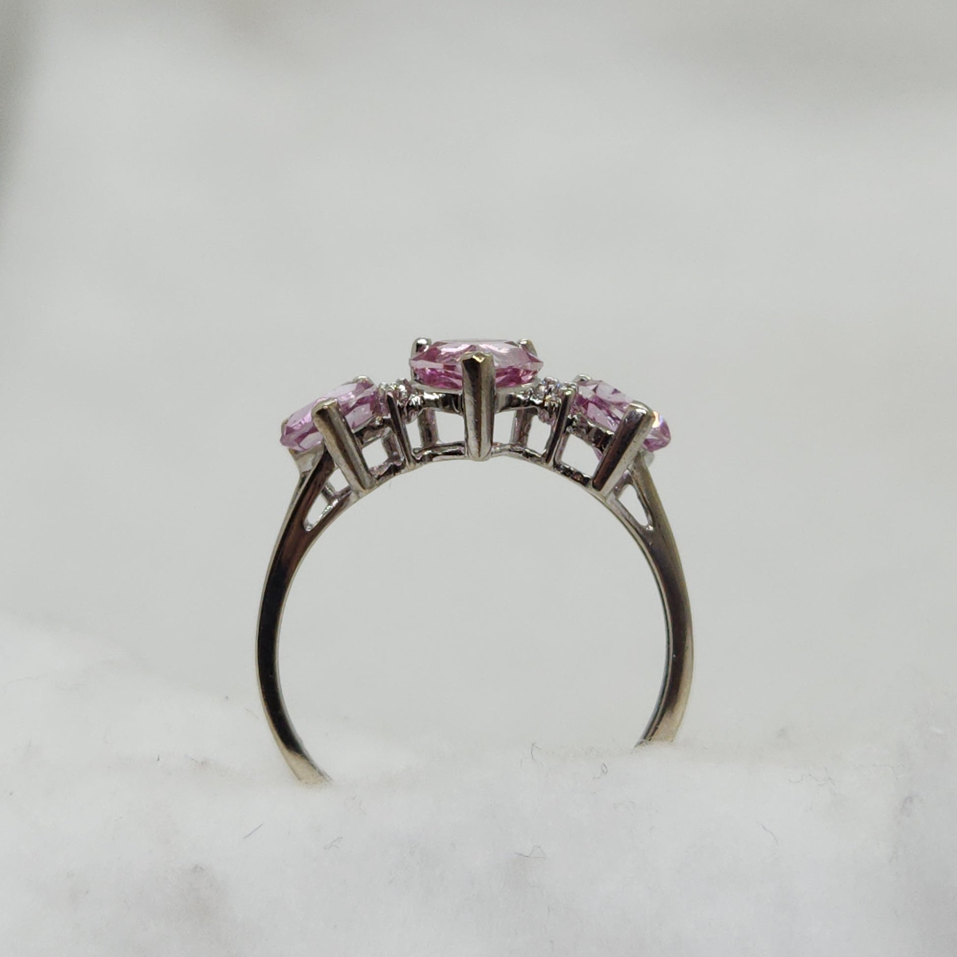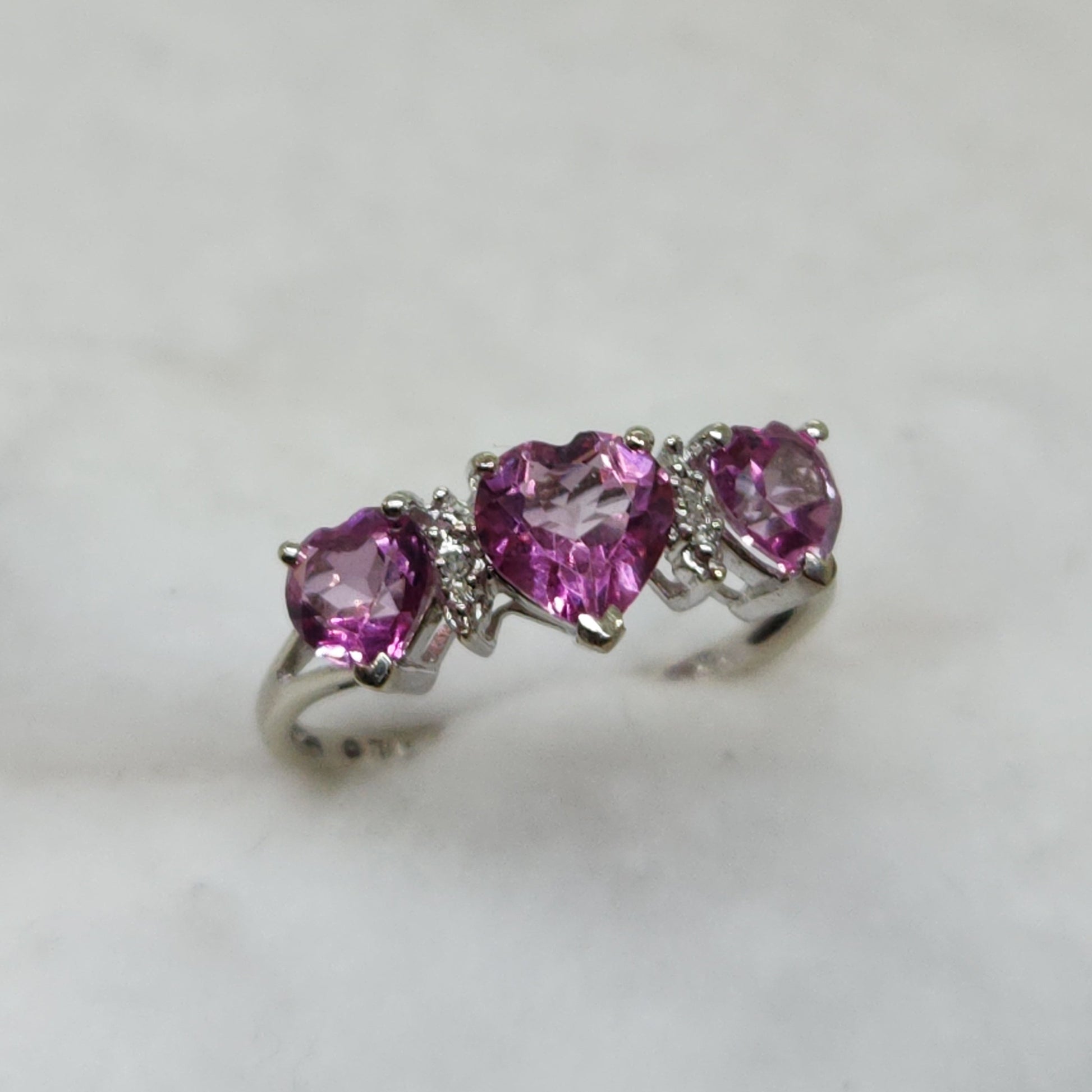 Three heart-shaped spinels interspersed with single-cut natural diamonds - perfect for the woman who wears her heart on her sleeve.