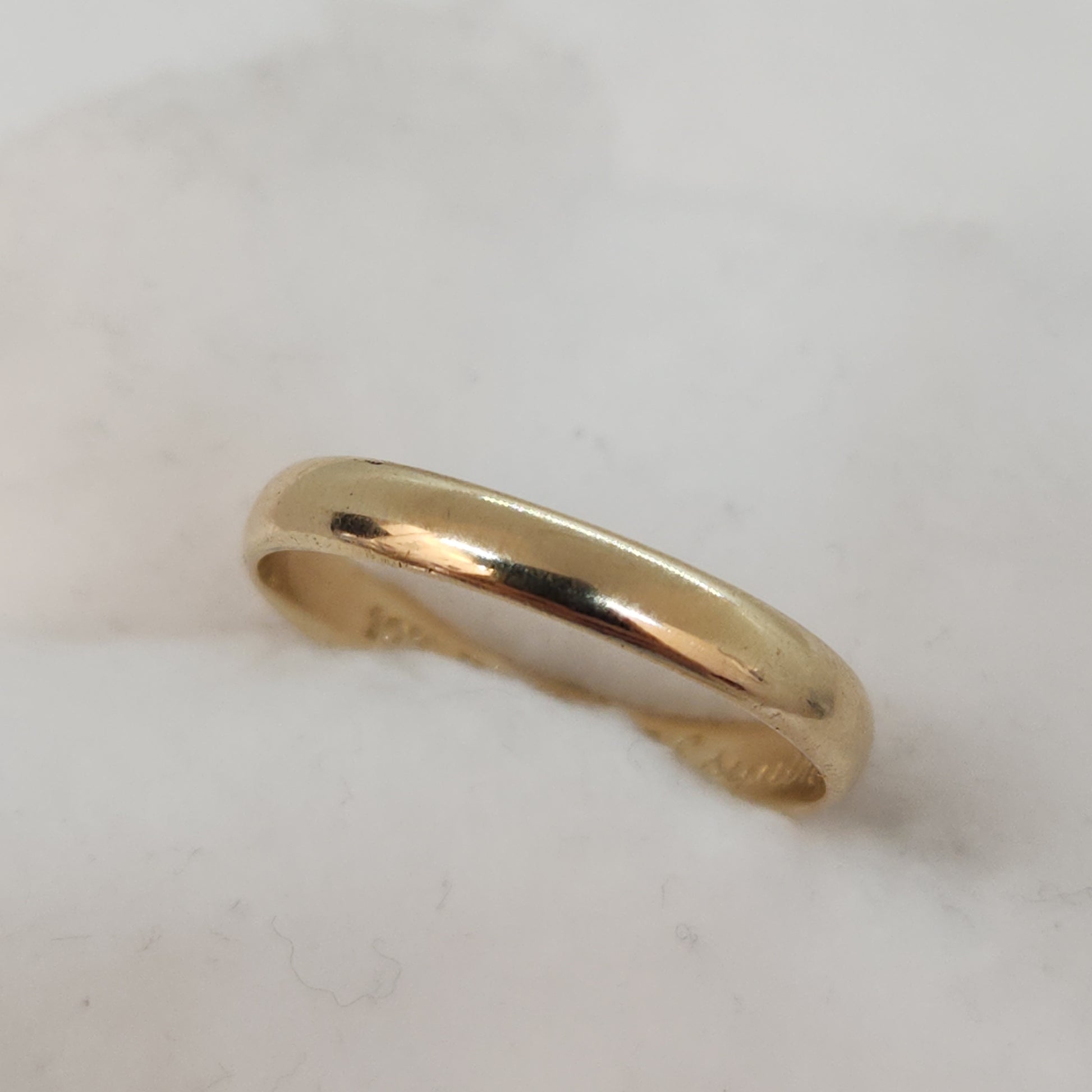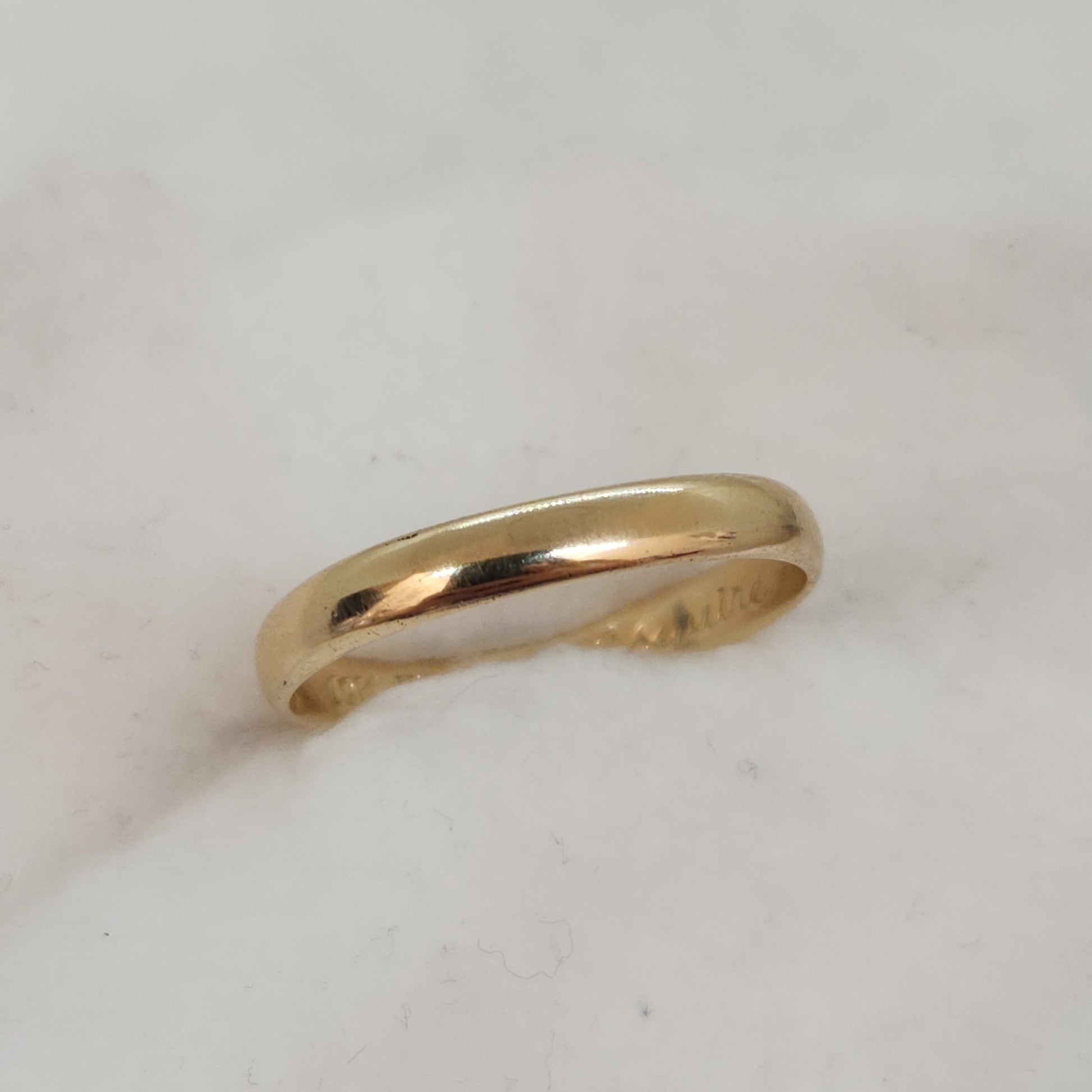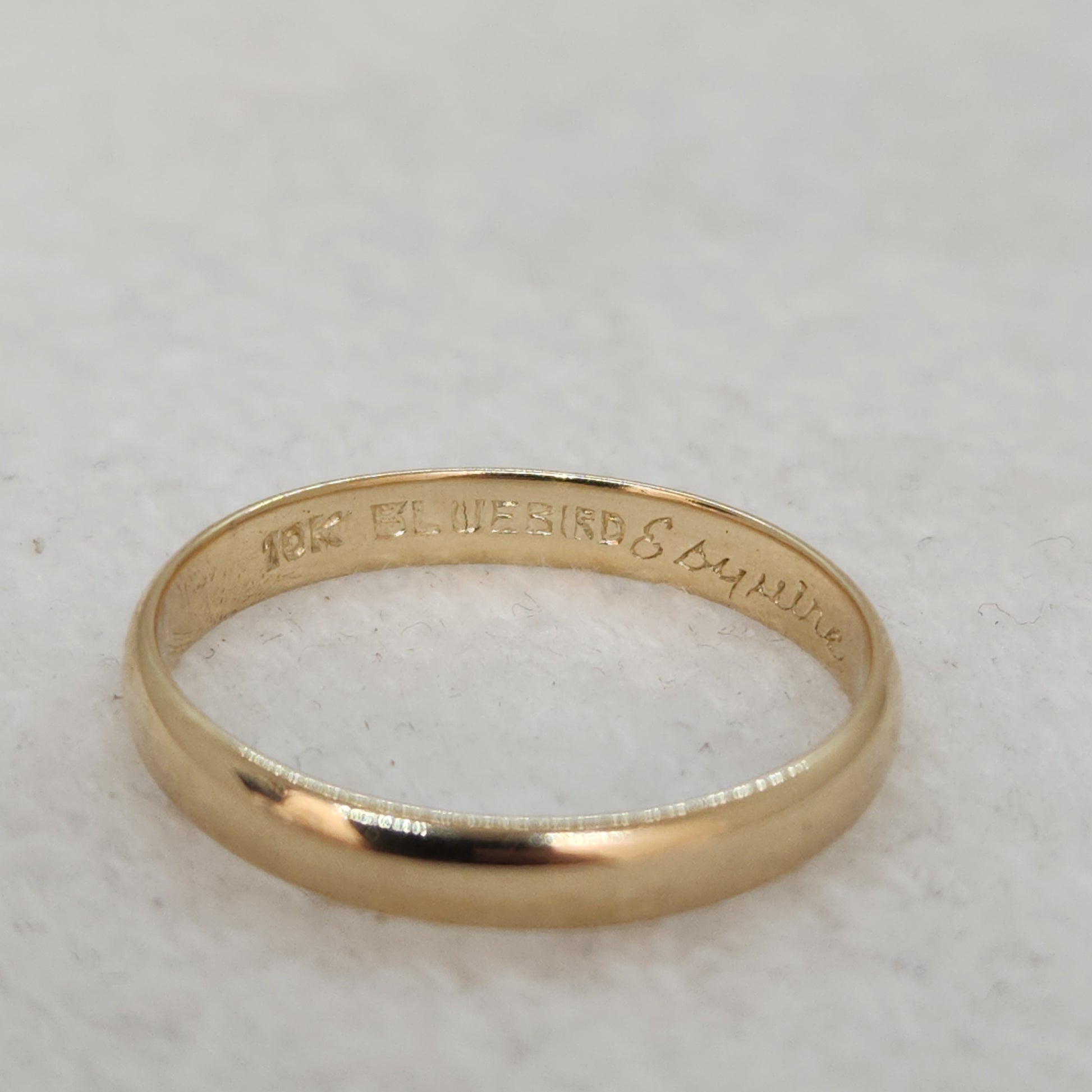 A simple strand of gold, joined to elicit endless love, this wedding band is emblazoned with "Bluebird" the name of a line of bridal jewelry popular in the 40s and 50s. The addition of the term "Esquire" could refer to it being a gents ring, as the title was historically bestowed to men of higher social rank, particularly members of the landed gentry above the rank of gentleman and below the rank of knight, but given it's delicate design, it could be used be either gender