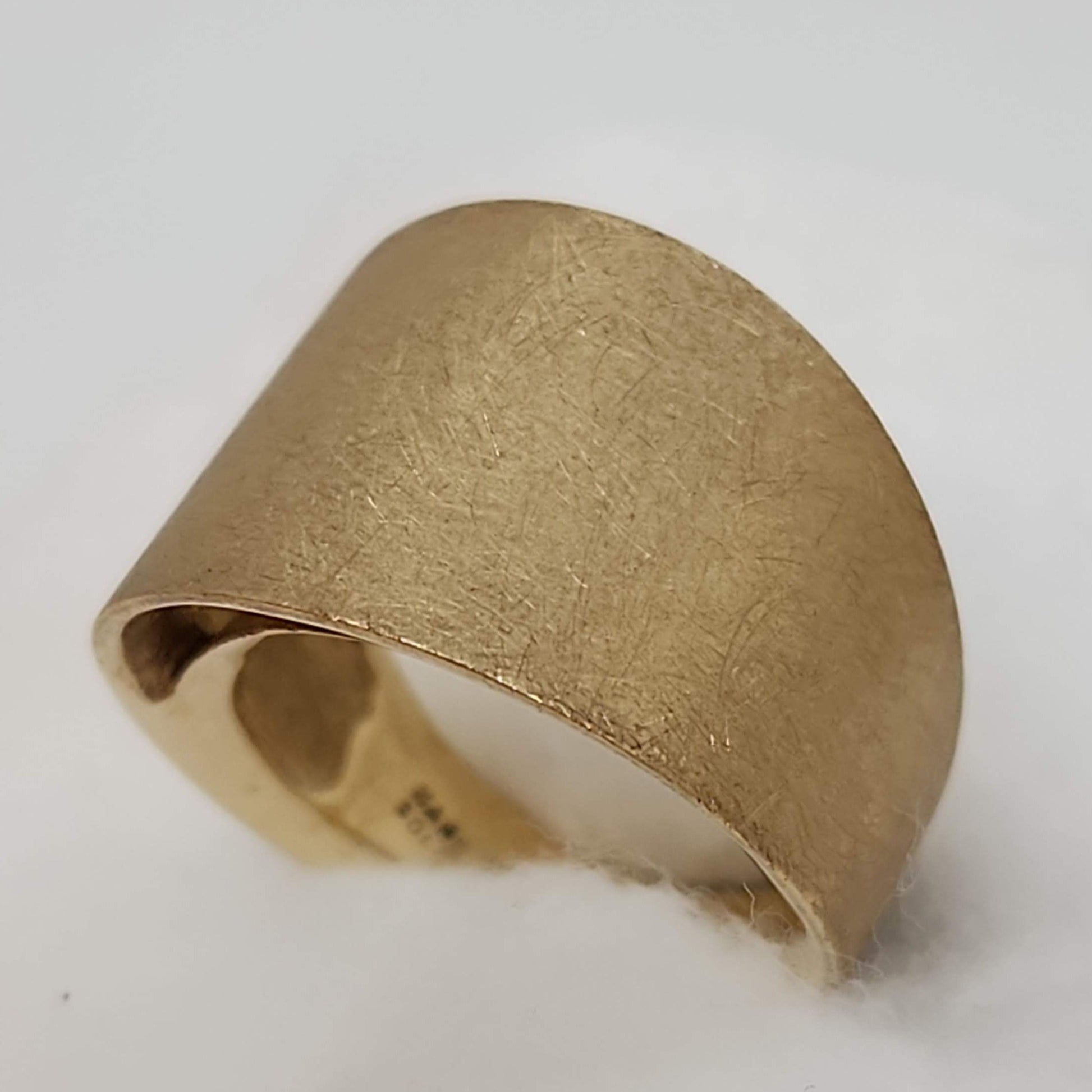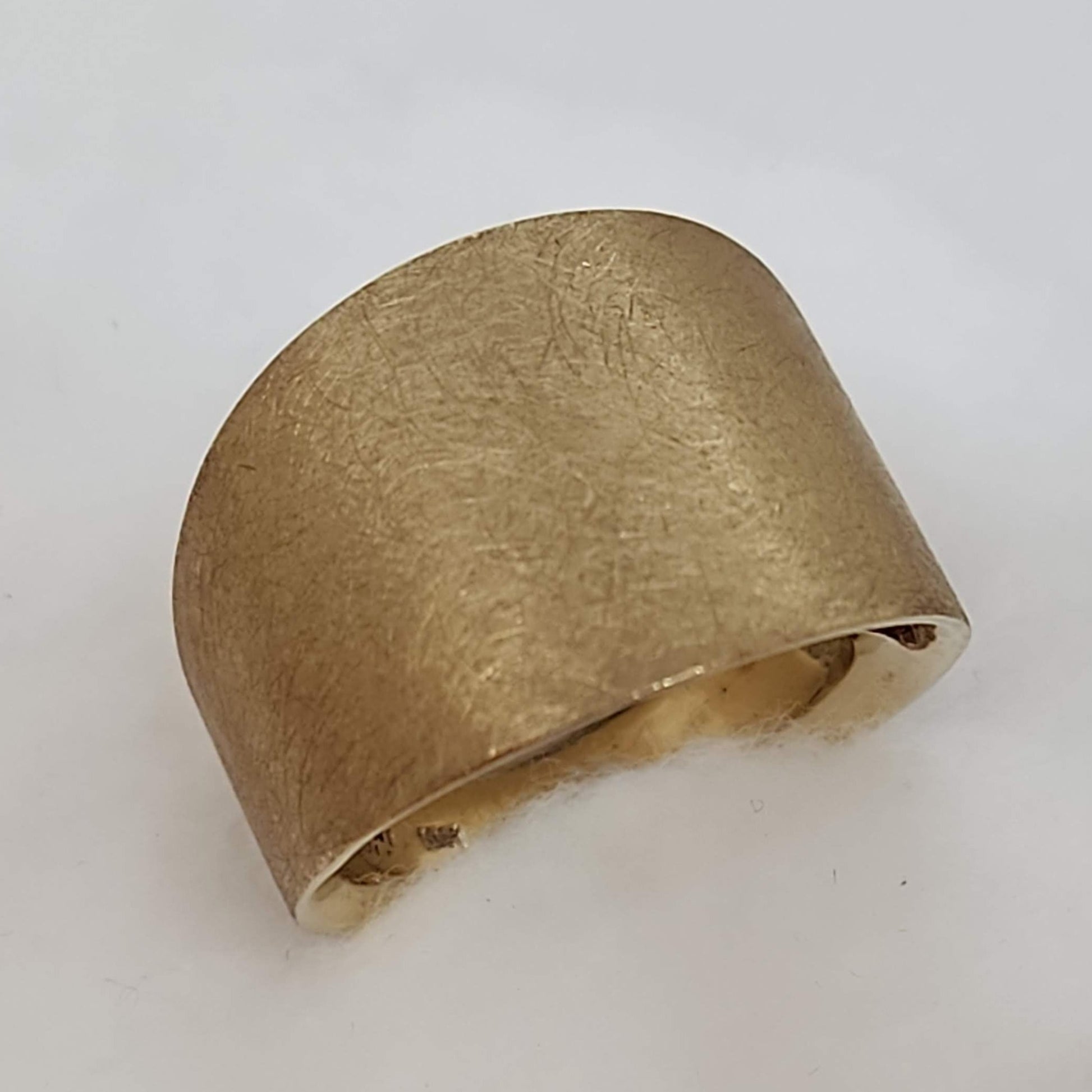 Broad in width yet beautifully tapered to curve with your finger. A lifted height gives this ring extra oomph. Bold yet understated. Designed and made by Marigold Design Studio.