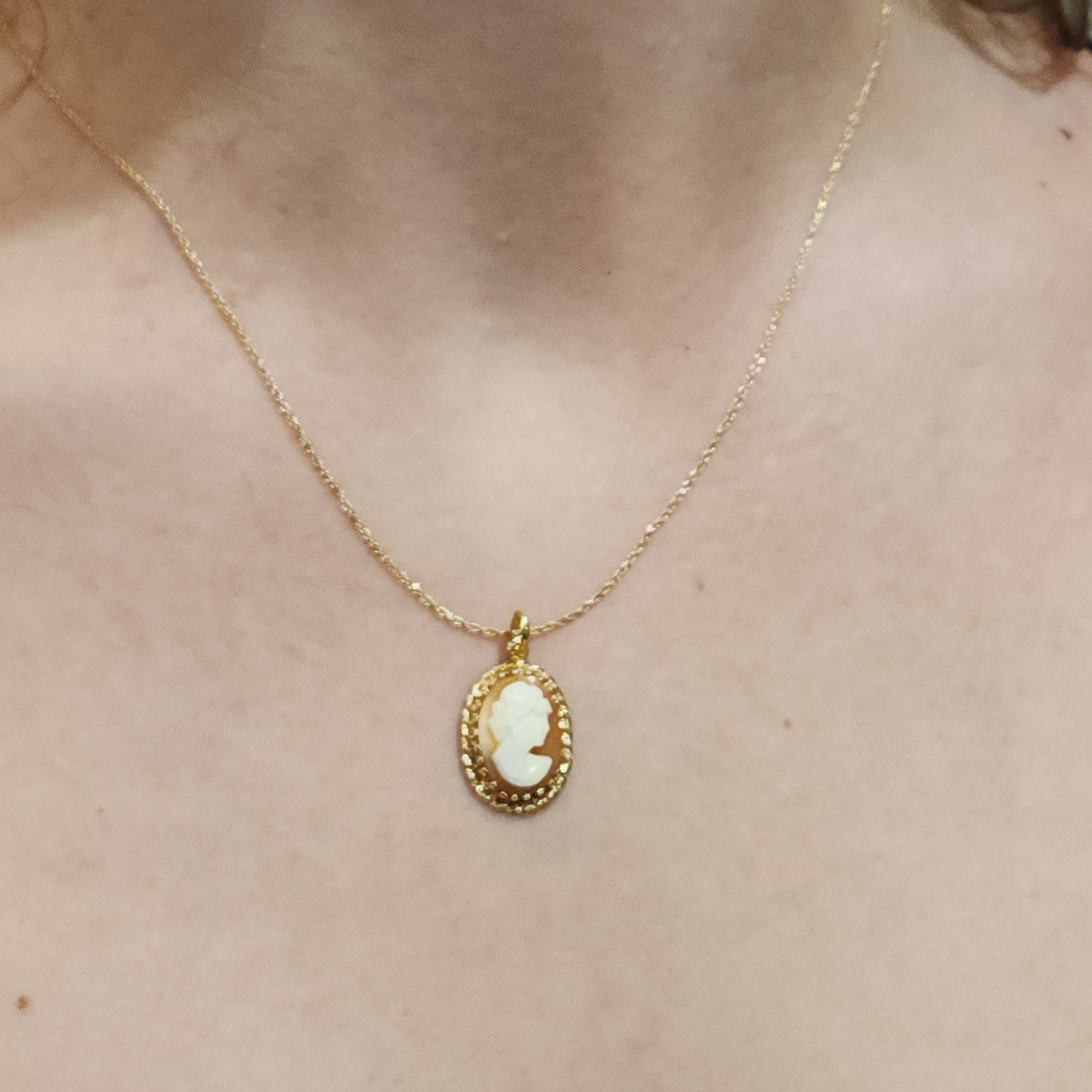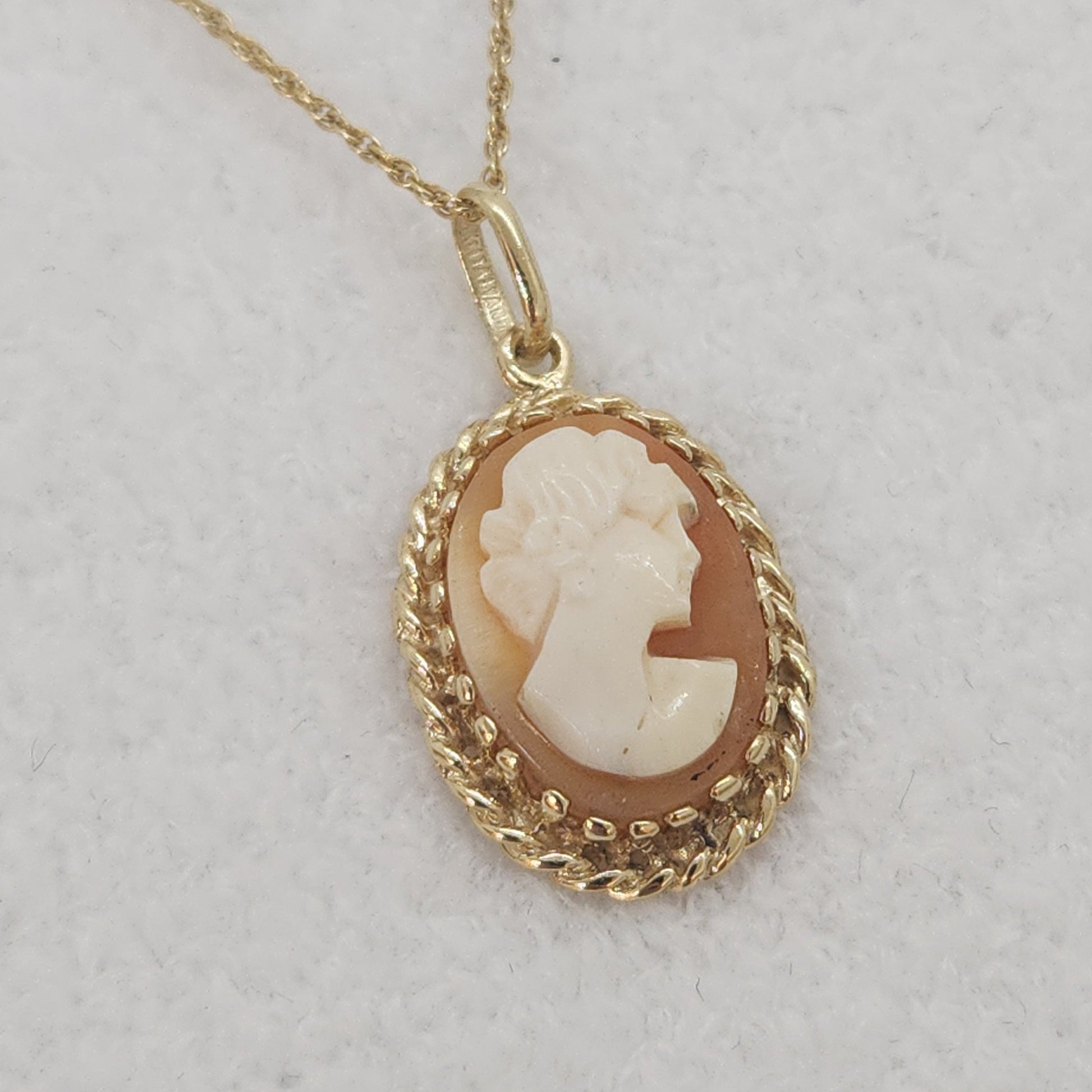 A classic cameo pendant multi claw and rope design that matches the rope chain it hangs from. Shell Cameo hand carved approximately 50 years+ old in 14k Yellow Gold. We have matching earrings for it as well.