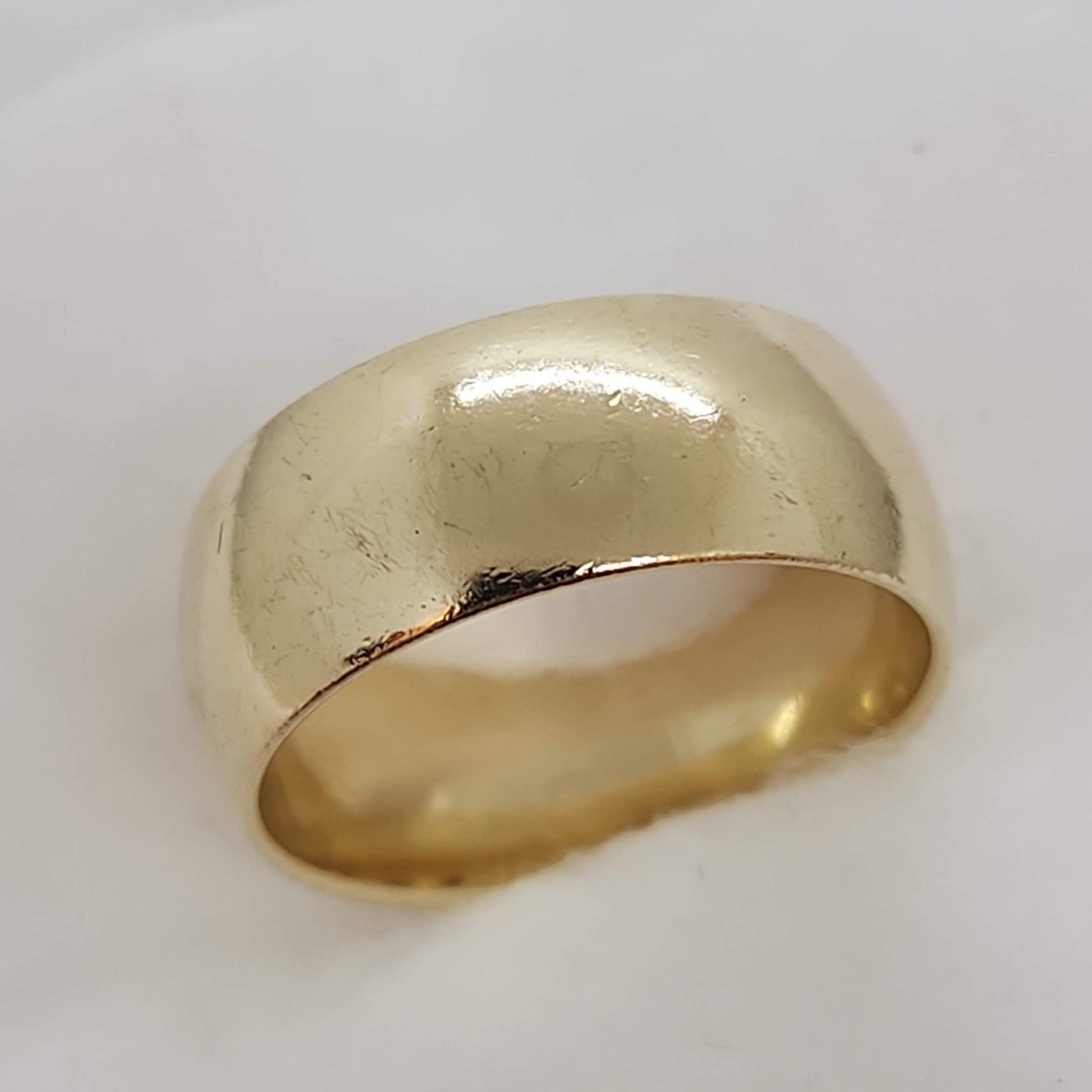 This broad vintage band has a timeless design. It has age appropriate markings which can be removed and either a high polish or a brushed finish could be applied should you wish. A beautifully striking ring.