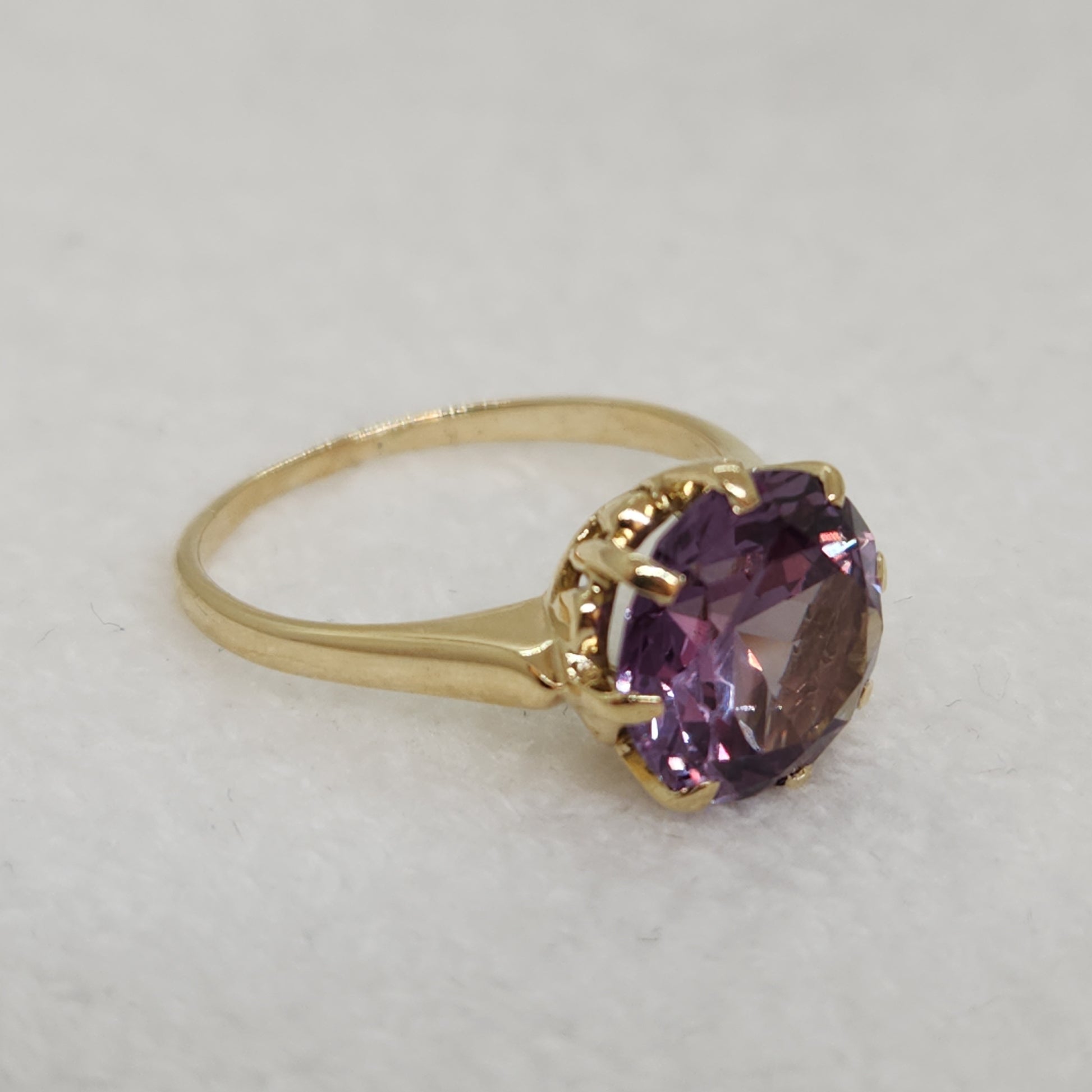 This beautiful basket setting has such a vintage look! The stone is of a colour changing variety. It will go from a greyish blue in daylight to a warm violet purple under artificial light. A special and very fun piece.