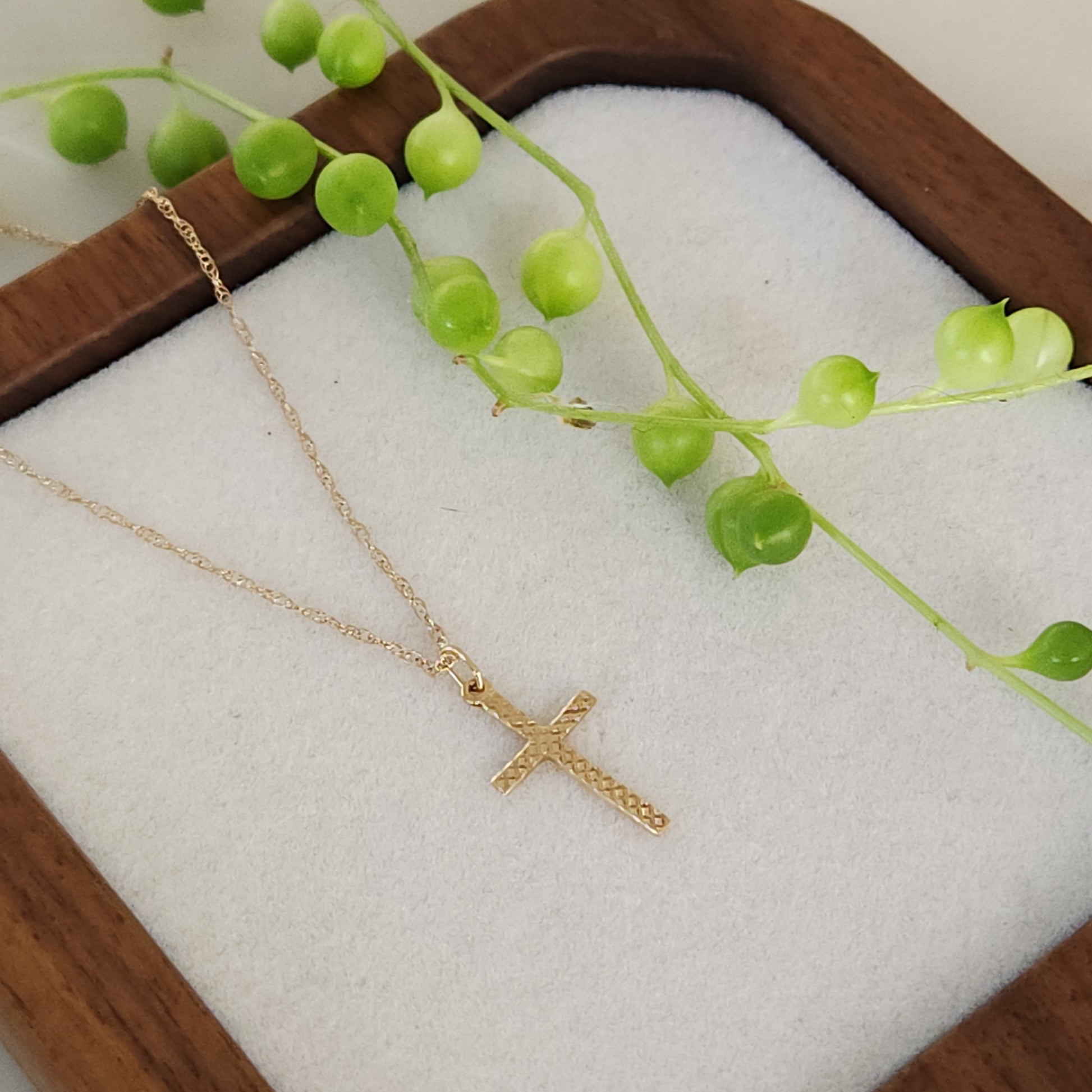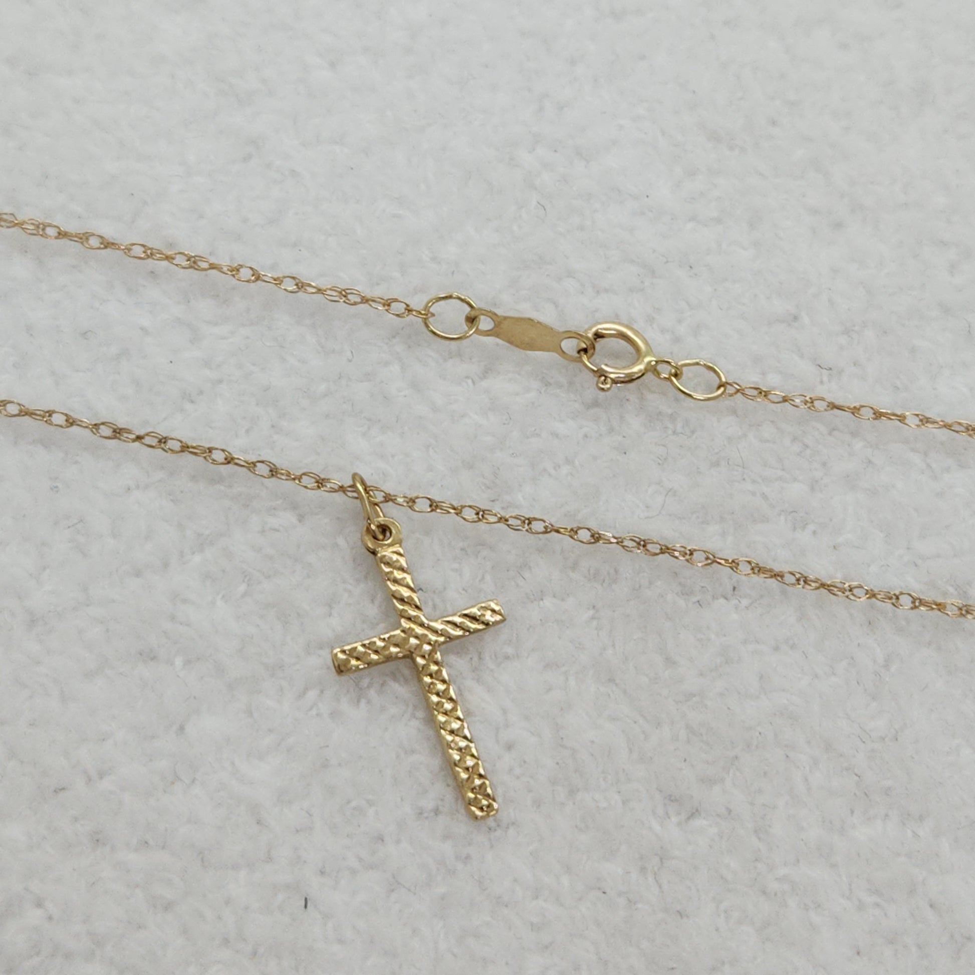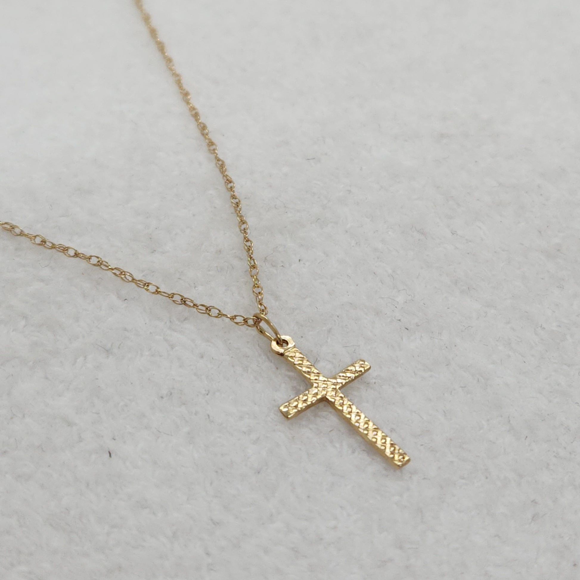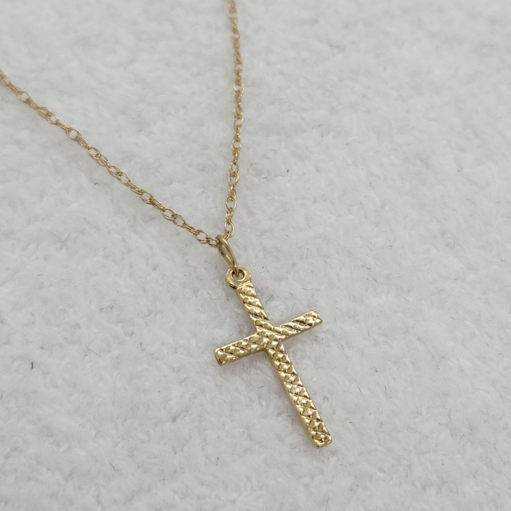 Sized for a child, this is a lovely cross for a young person to wear on special occasions. The cross has an embossed texture that reflects the light beautifully and is so flattering on this fine rope chain. A great gift for a first communion.
