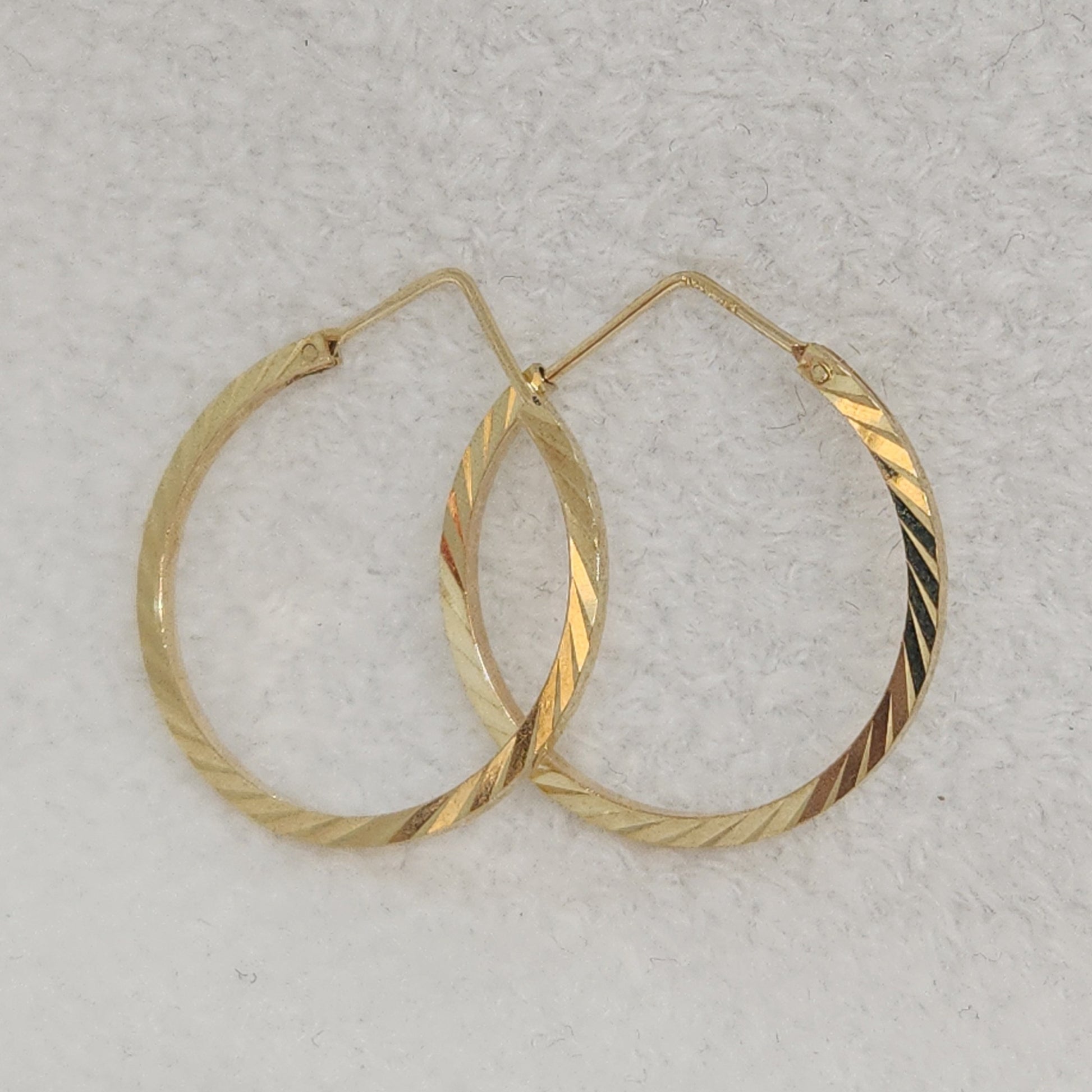 Nothing reflects light quite like diamond cuts. These hoops have a high polished front surface, and diamond cuts on the sides. Comfortable, and light these are ideal for everyday wear.