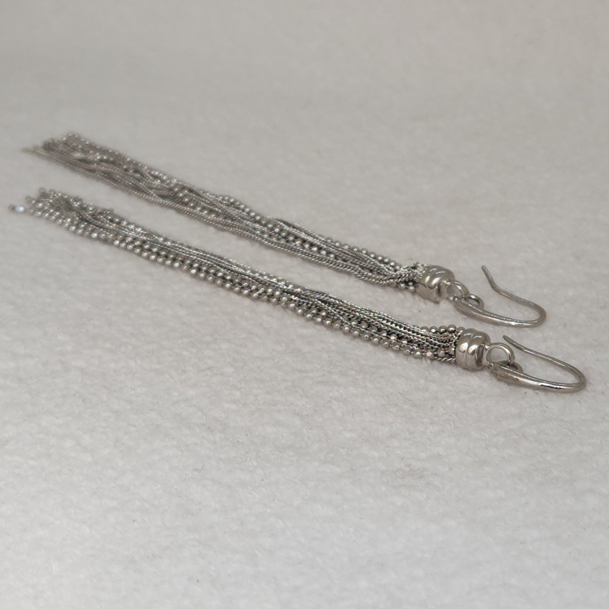 At almost 5 inches long, these silvery strands will dance and shimmy along with you on your next night on the town!