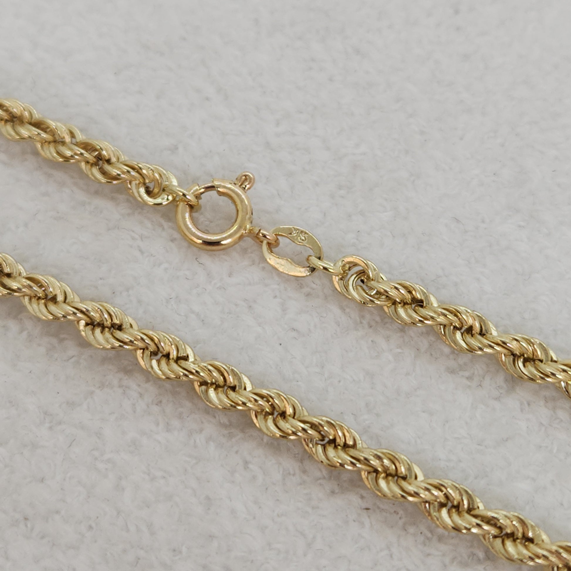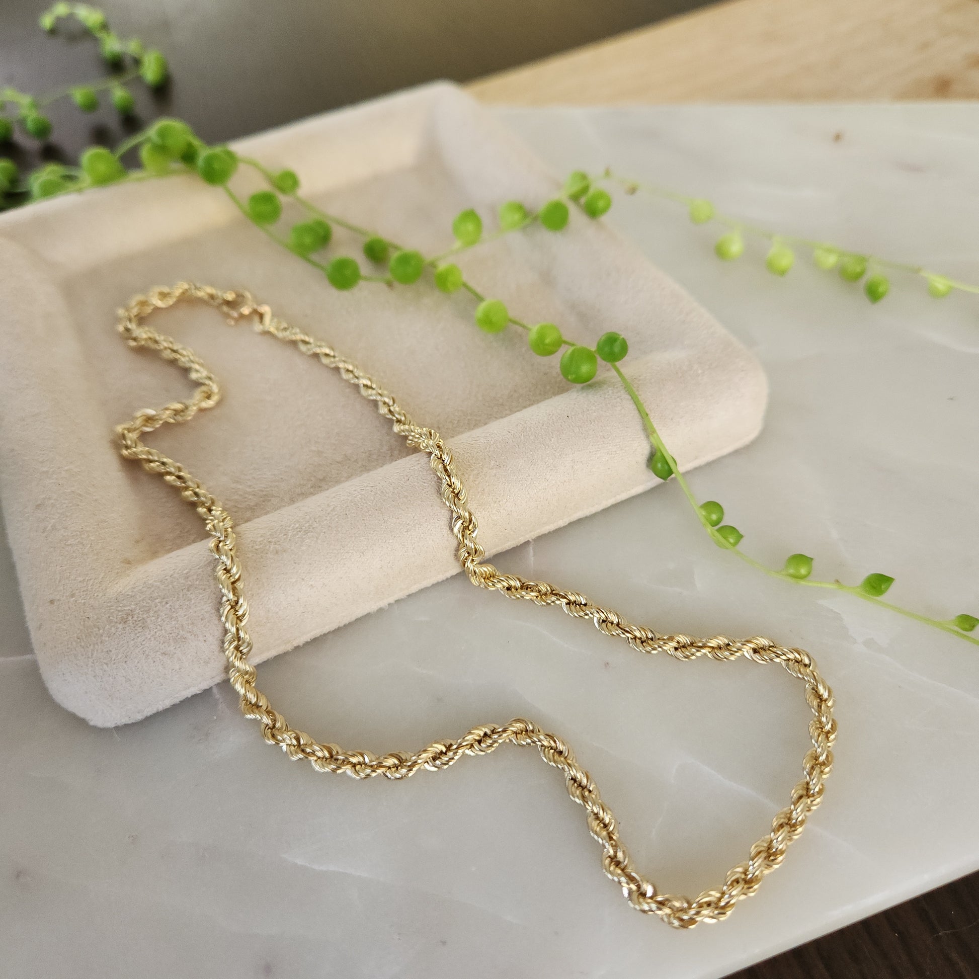 In their classic form, rope chains are made up of uniform links that are connected to two other links at a time. This design gives the chain a natural twist. As it is a hollow chain, it's best worn sans pendant. It's a perfect chain for layering with others.
