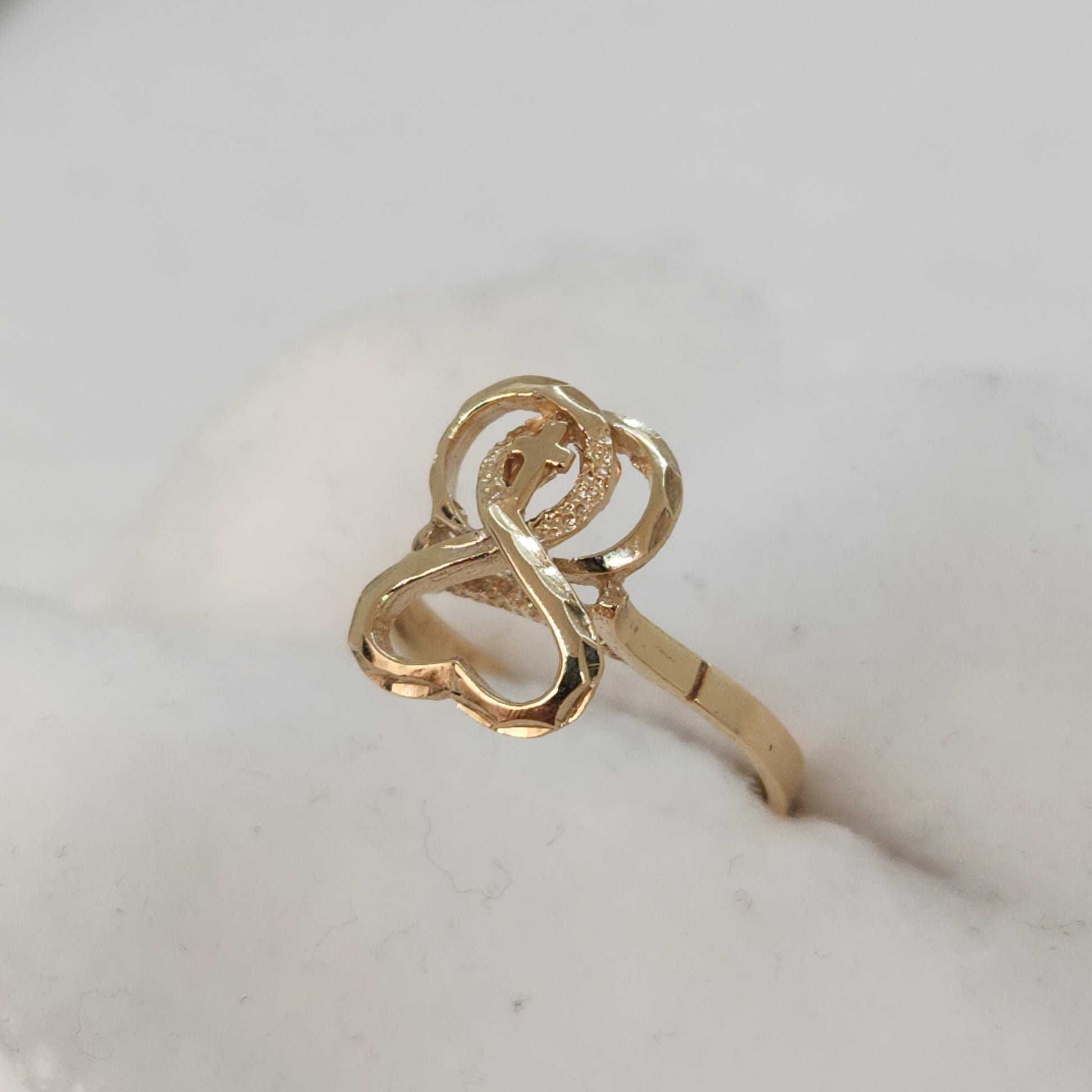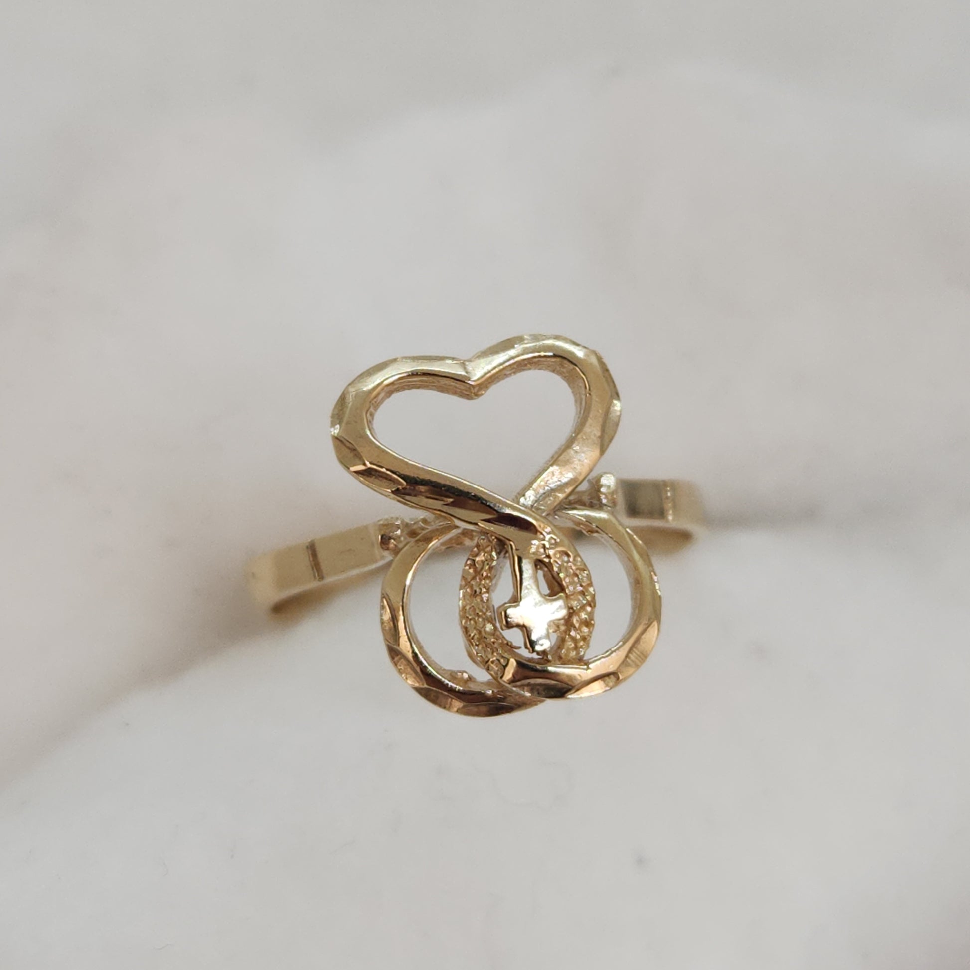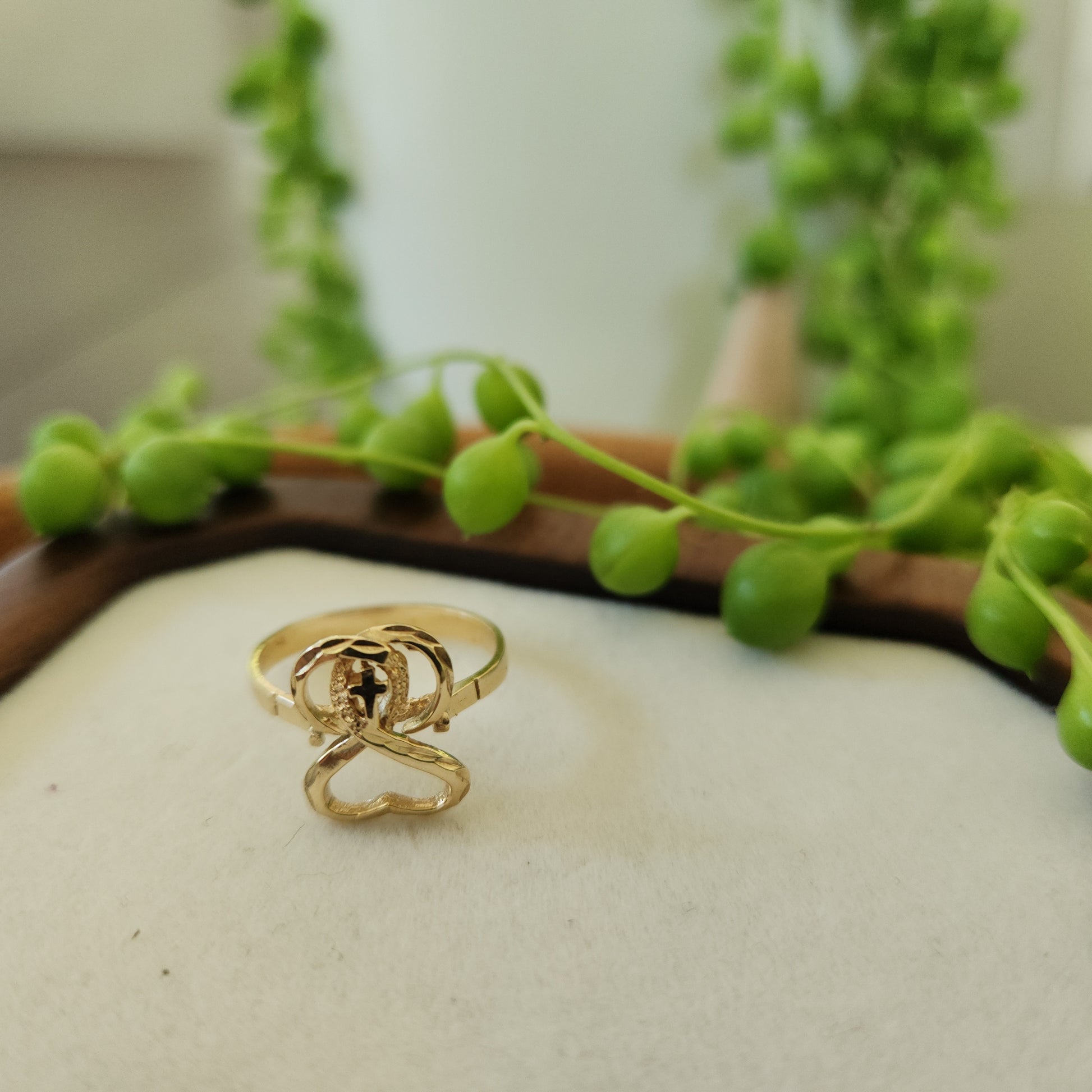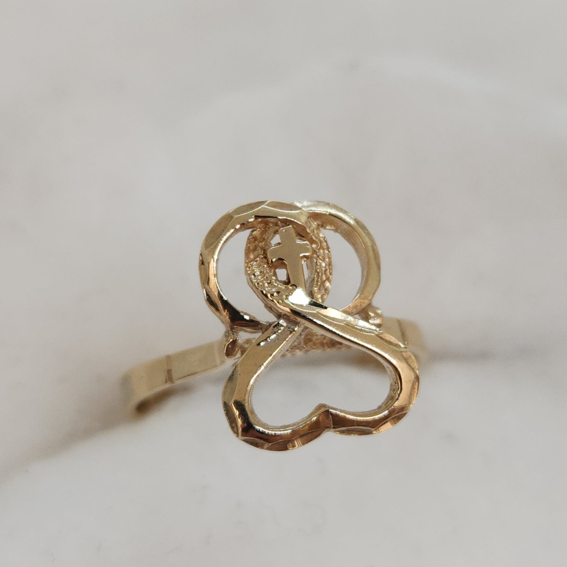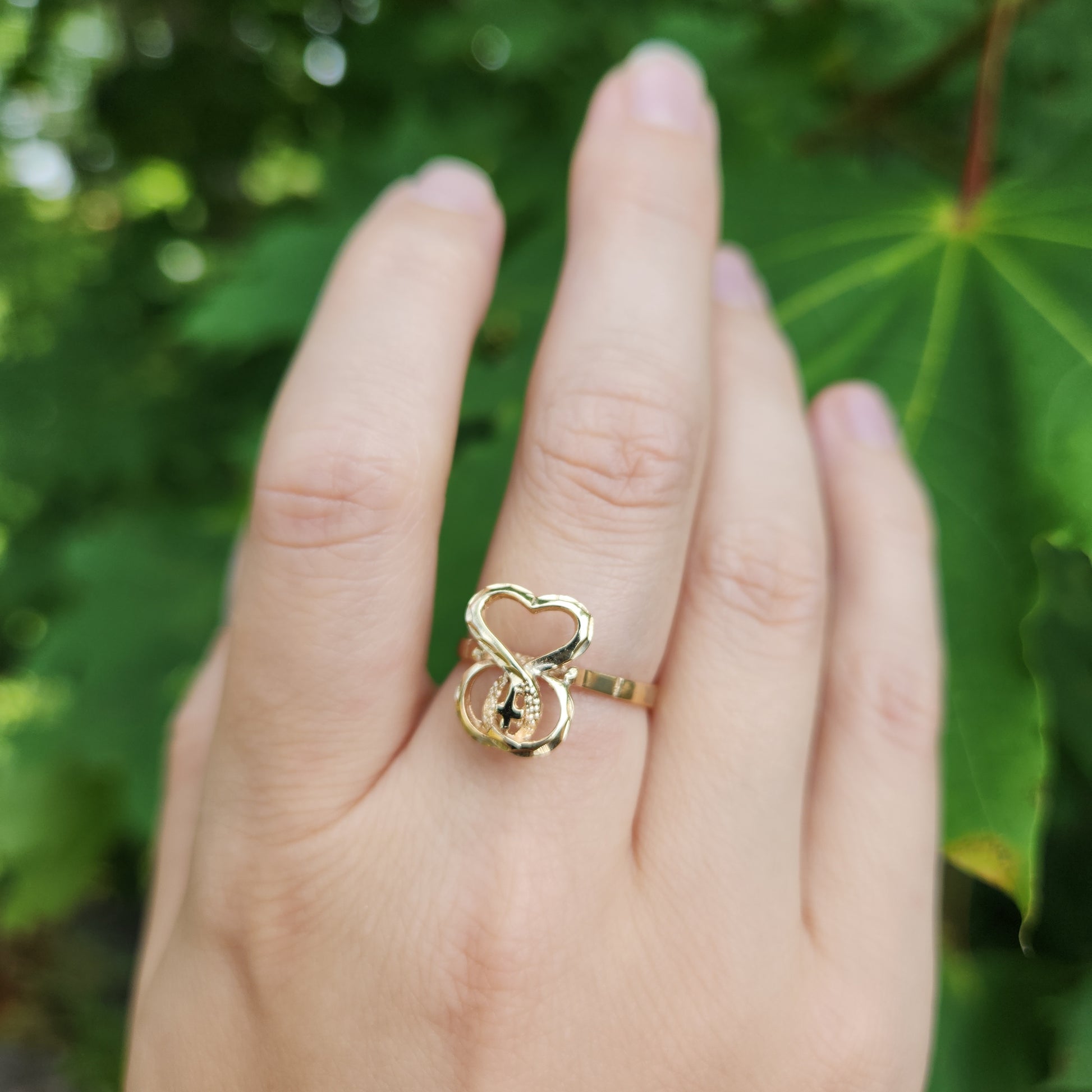 Sporting a heart that loops into encircling a small cross, this elegant ring would make an amazing promise ring, or simply worn as a statement of how important your faith is in your life.