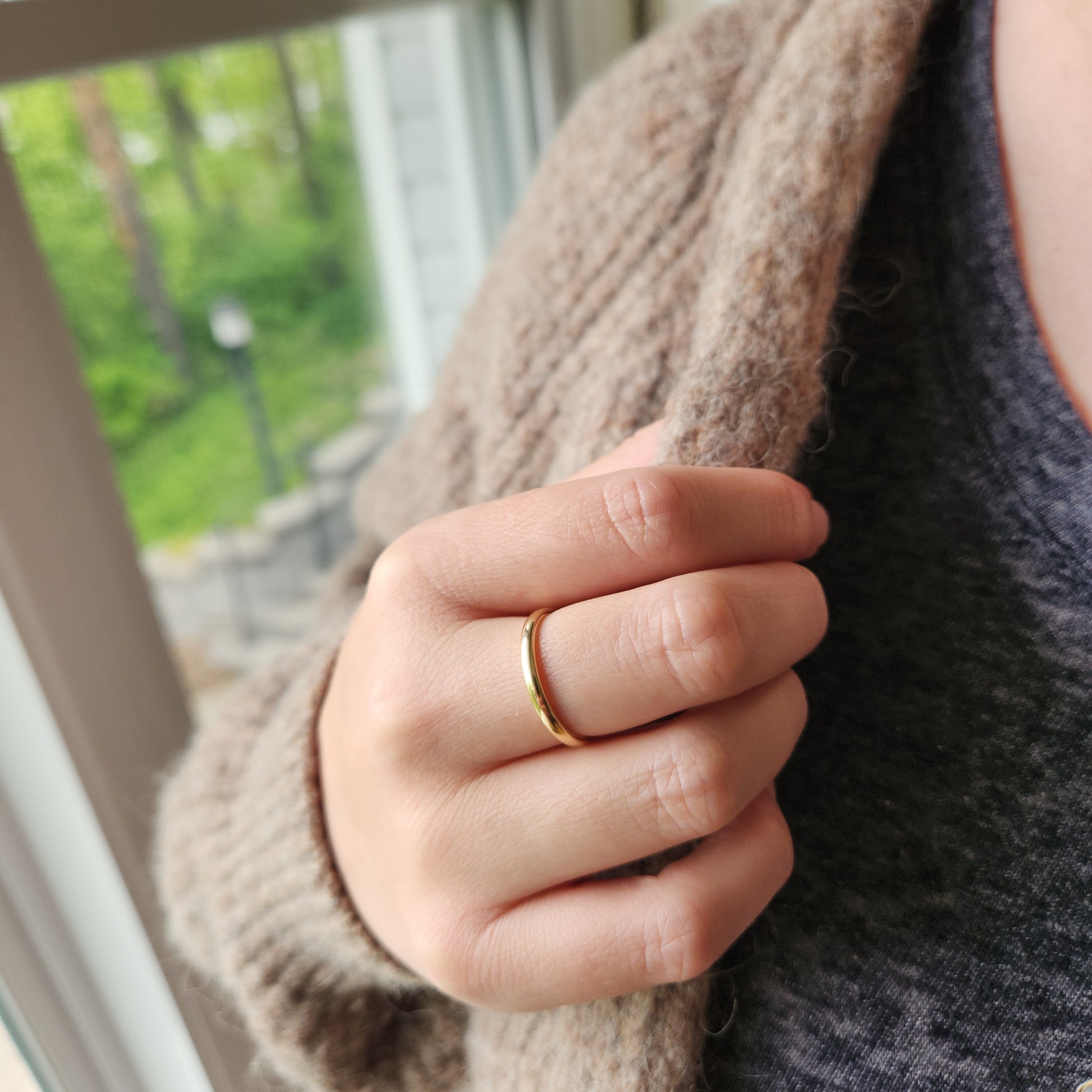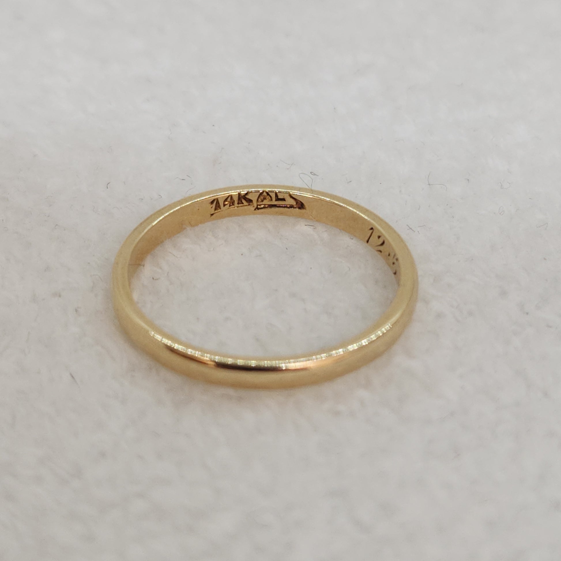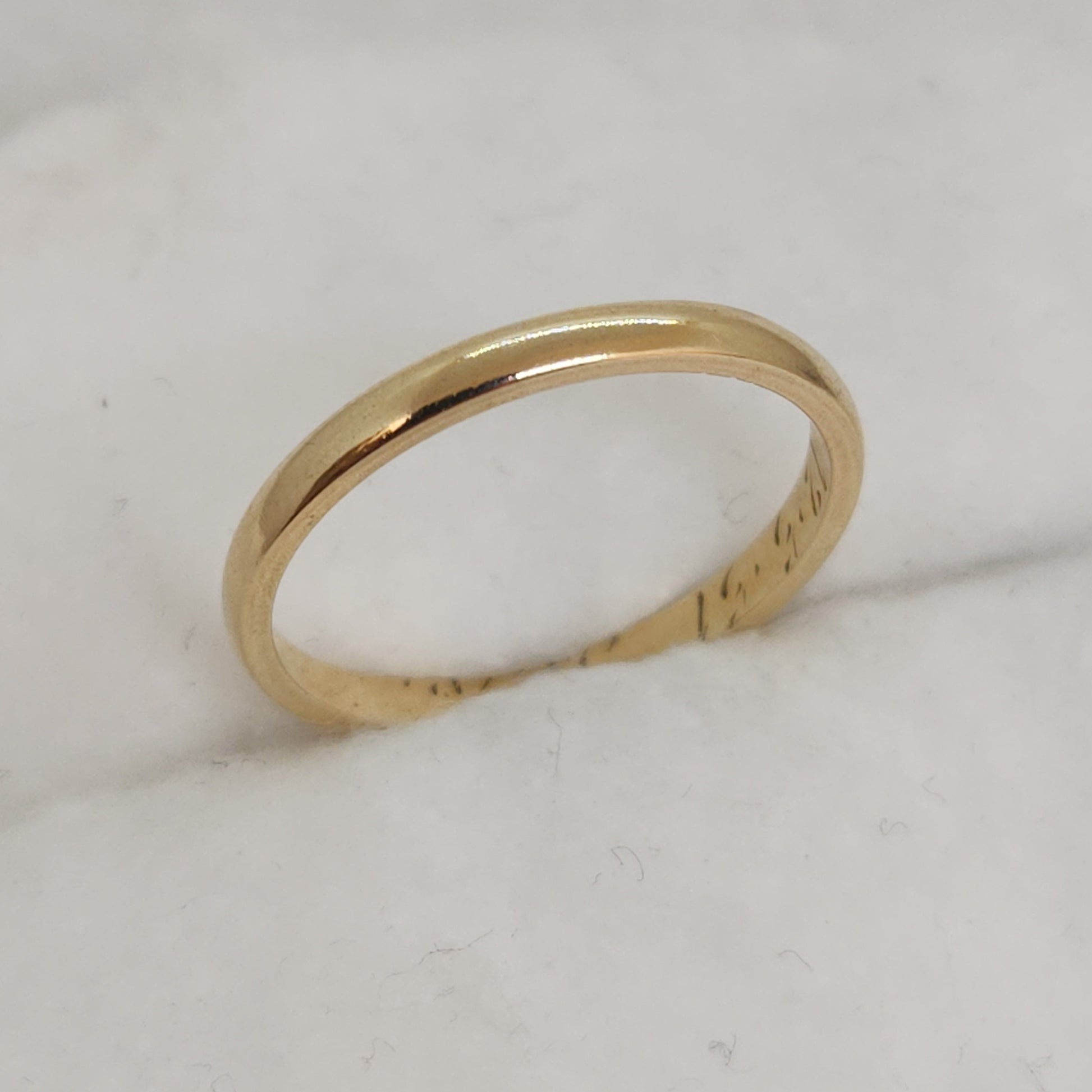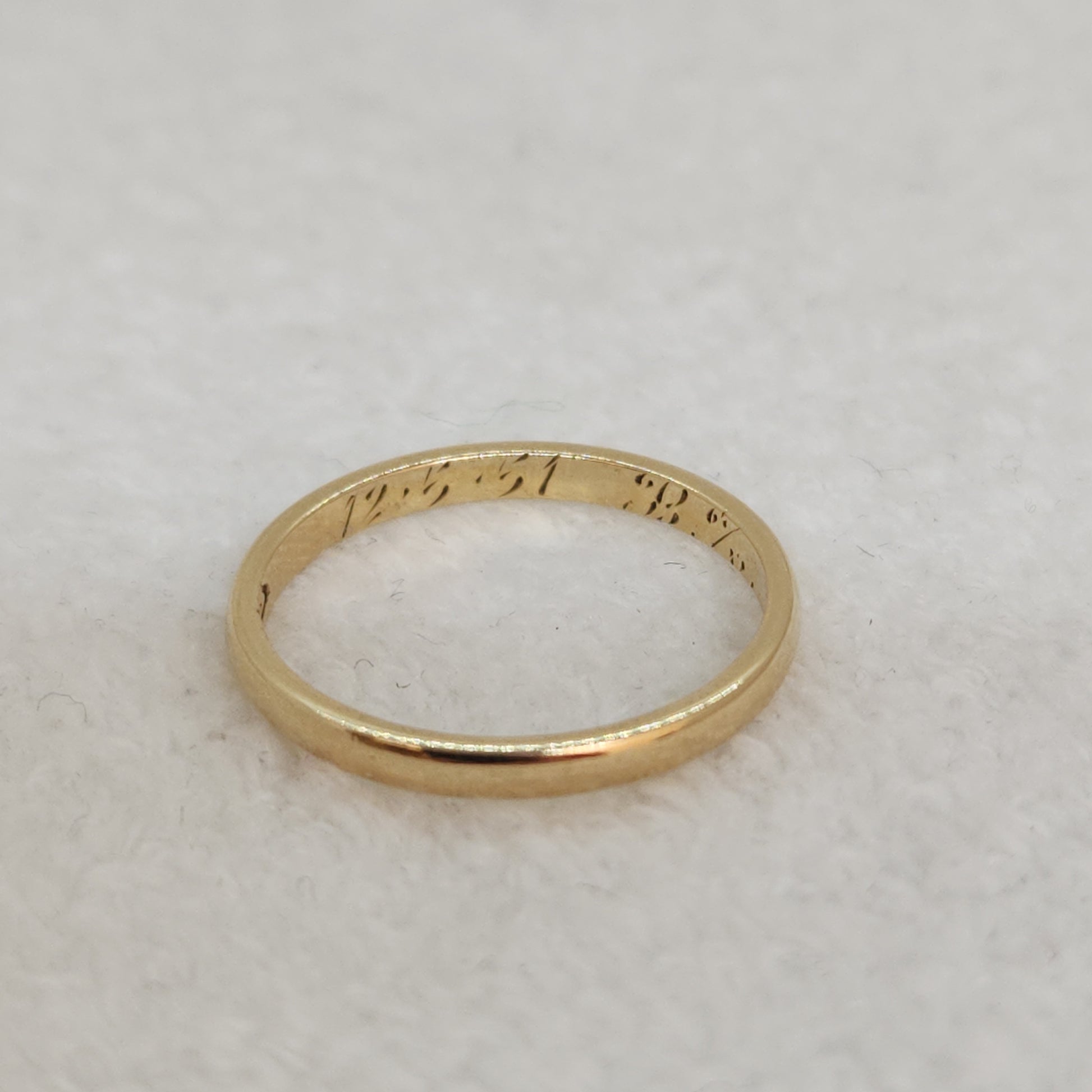 This is a band that has a history. The engraving on the inside marks the date "12.5.51" We can only imagine the couple that marked their special occasion in the year 1951, and all the decades it's been worn and loved.