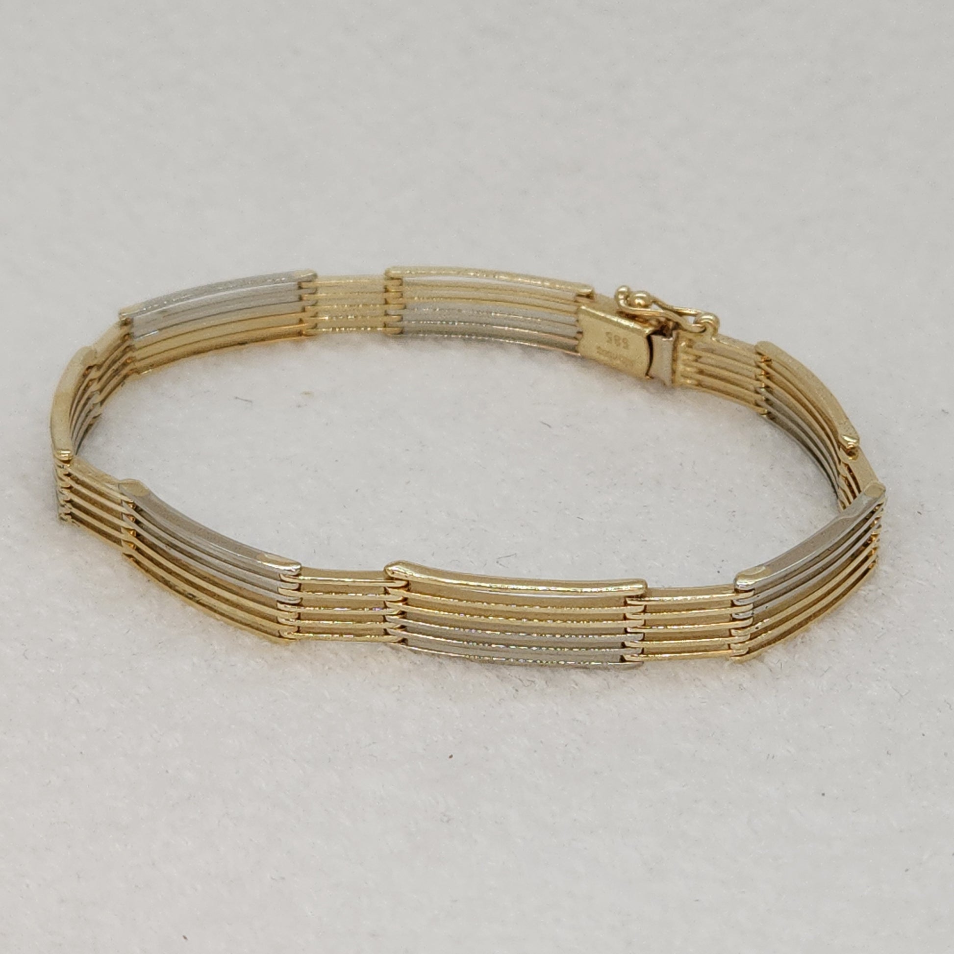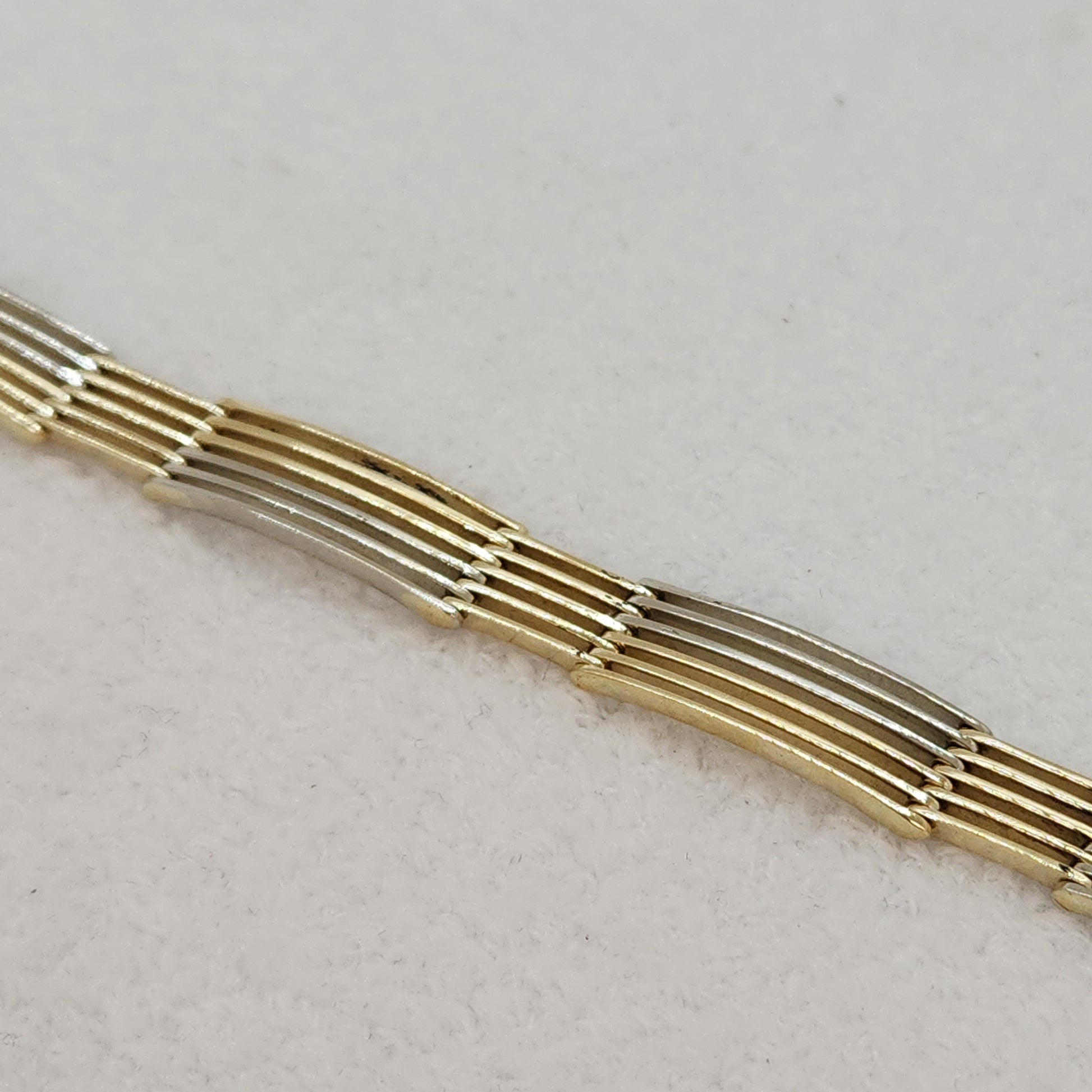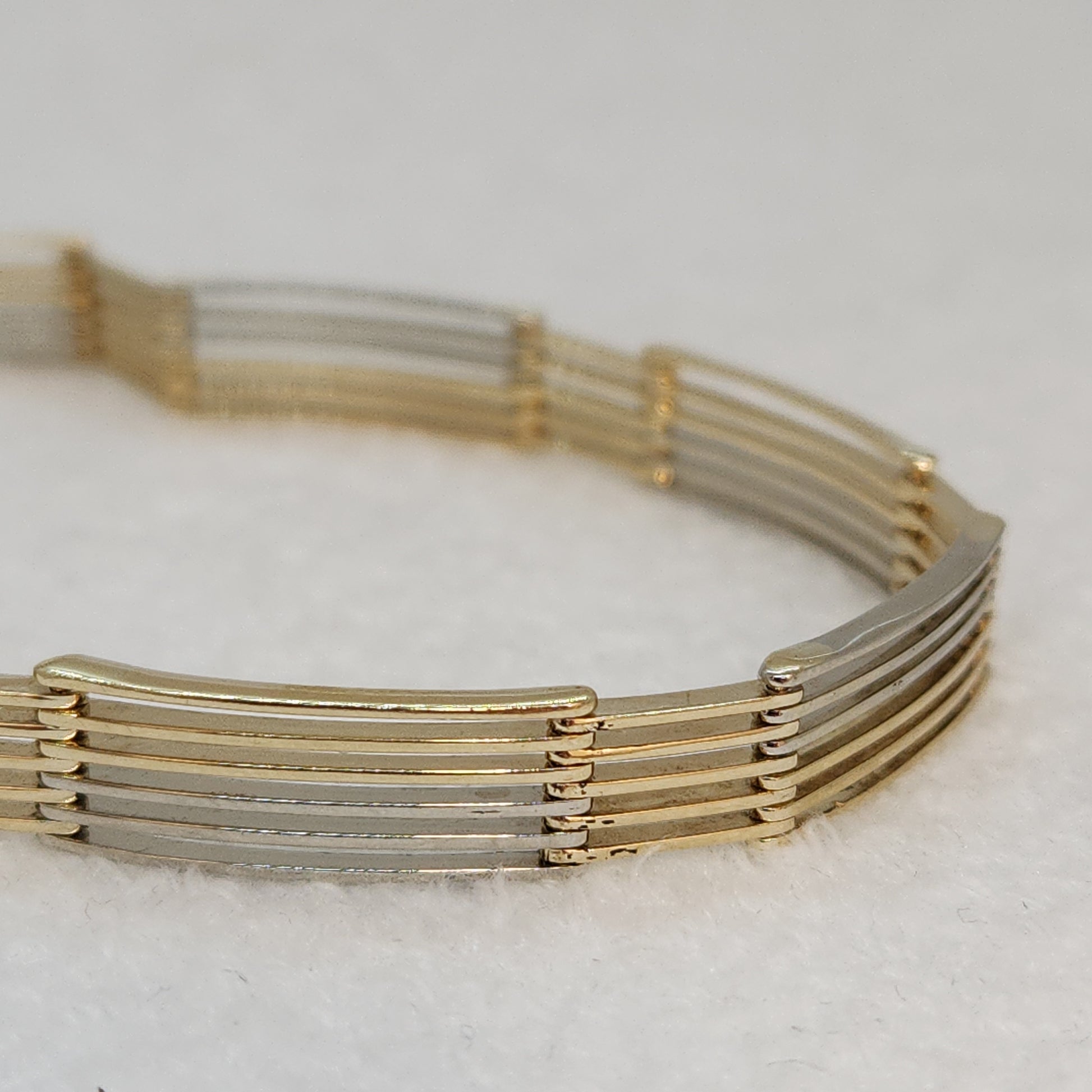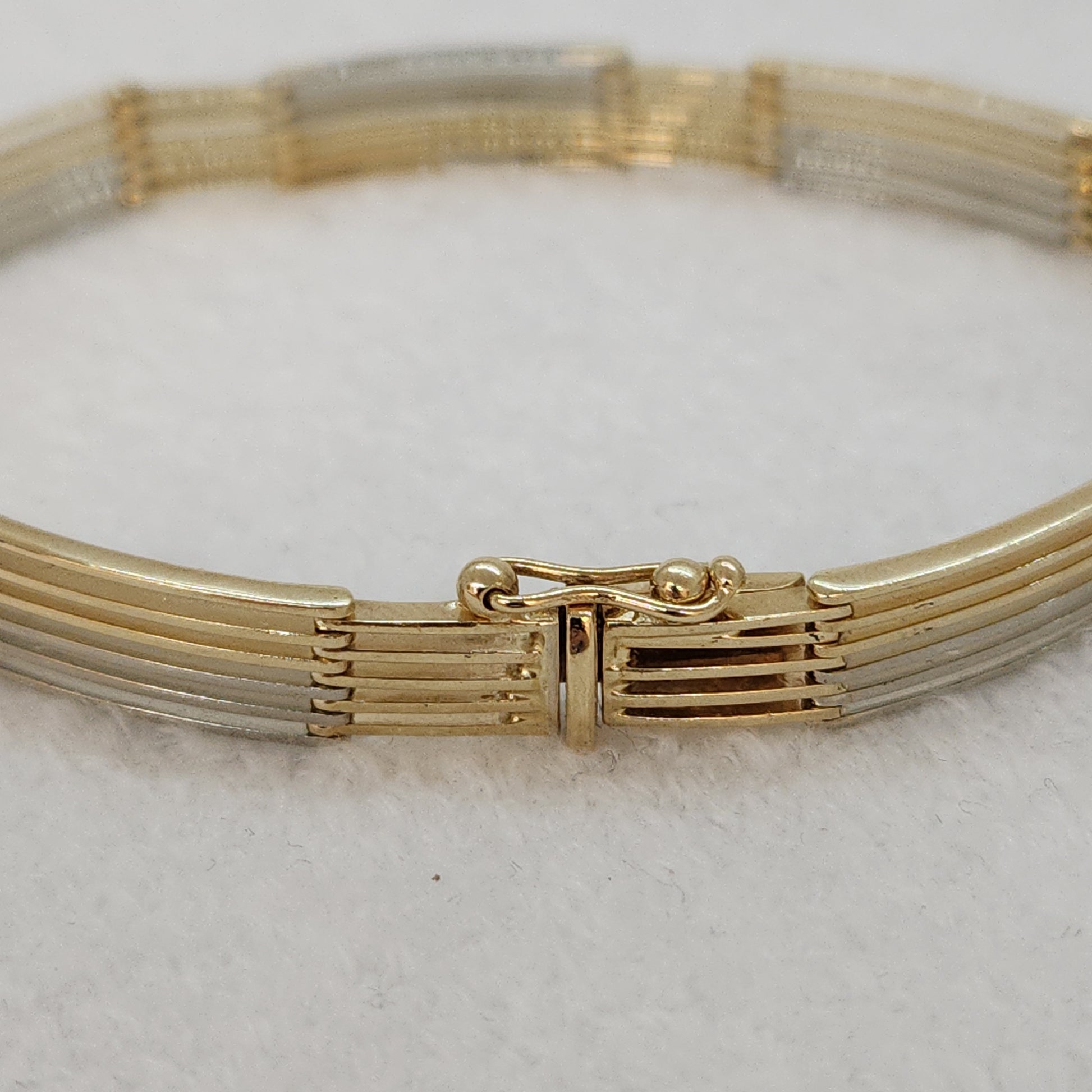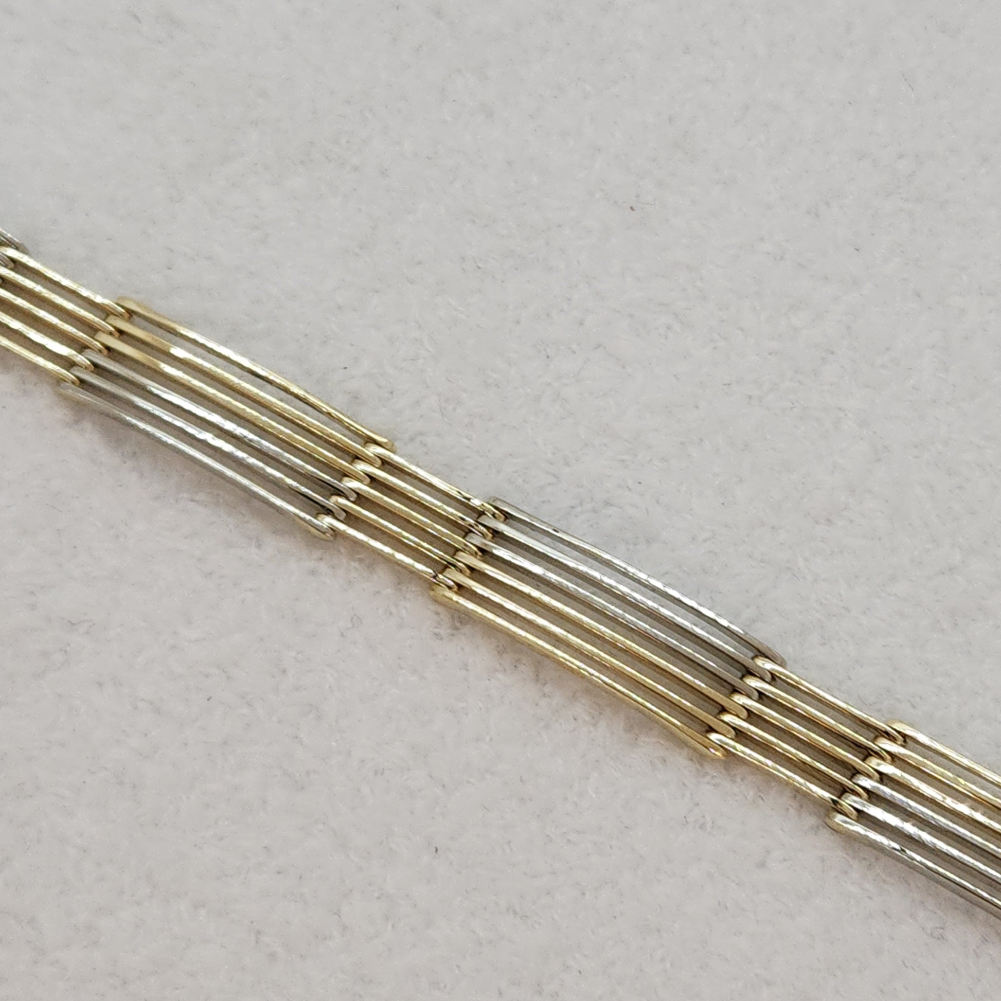 A two tone bracelet with a sleek and modern vibe. It dates to the 70s-80s yet has a look reminiscent of a Victorian Gate link. The name comes from their unusual interlocked panels which are designed to resemble the gates of an English manor house.