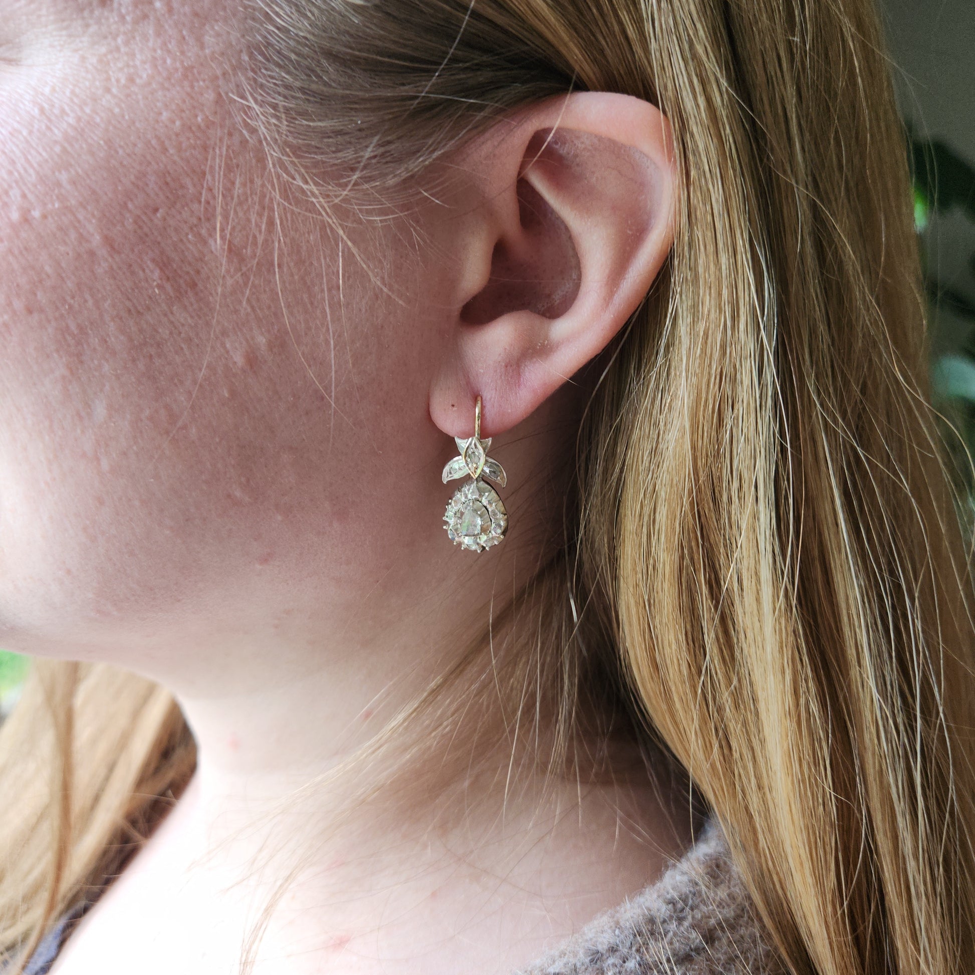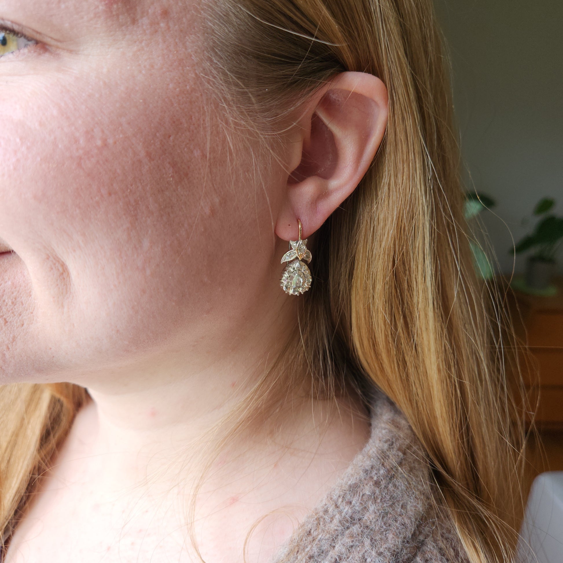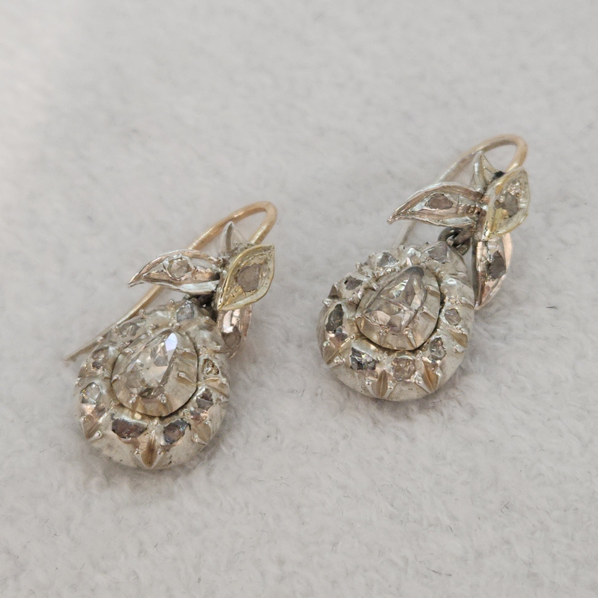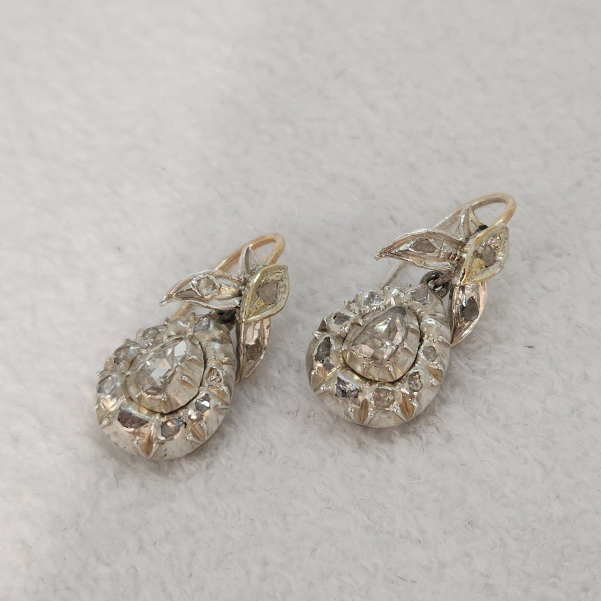 The Georgian Era spanned from 1714 to 1837 and was known for its craftsmanship and intricate design. Diamonds were favoured for evening wear and coloured stones were worn during the day. As we see in these earrings, gemstones were often set in closed-back settings. We are in awe looking at these earrings. The design is so perfect, the dangle, the proportions are so flattering. The rose cut diamonds with a flat back were thought to create a deeper connection between the wearer, making it a romantic choice.