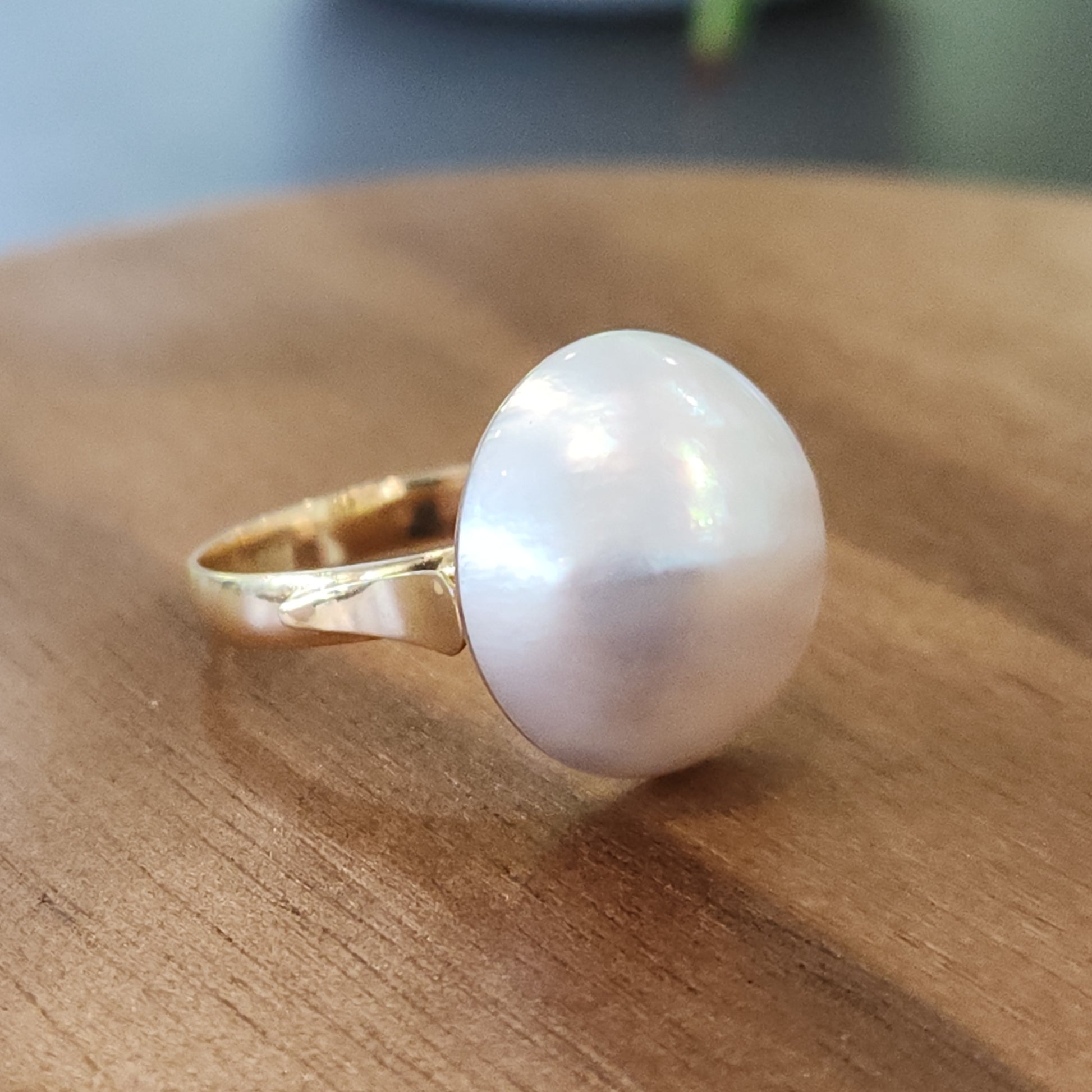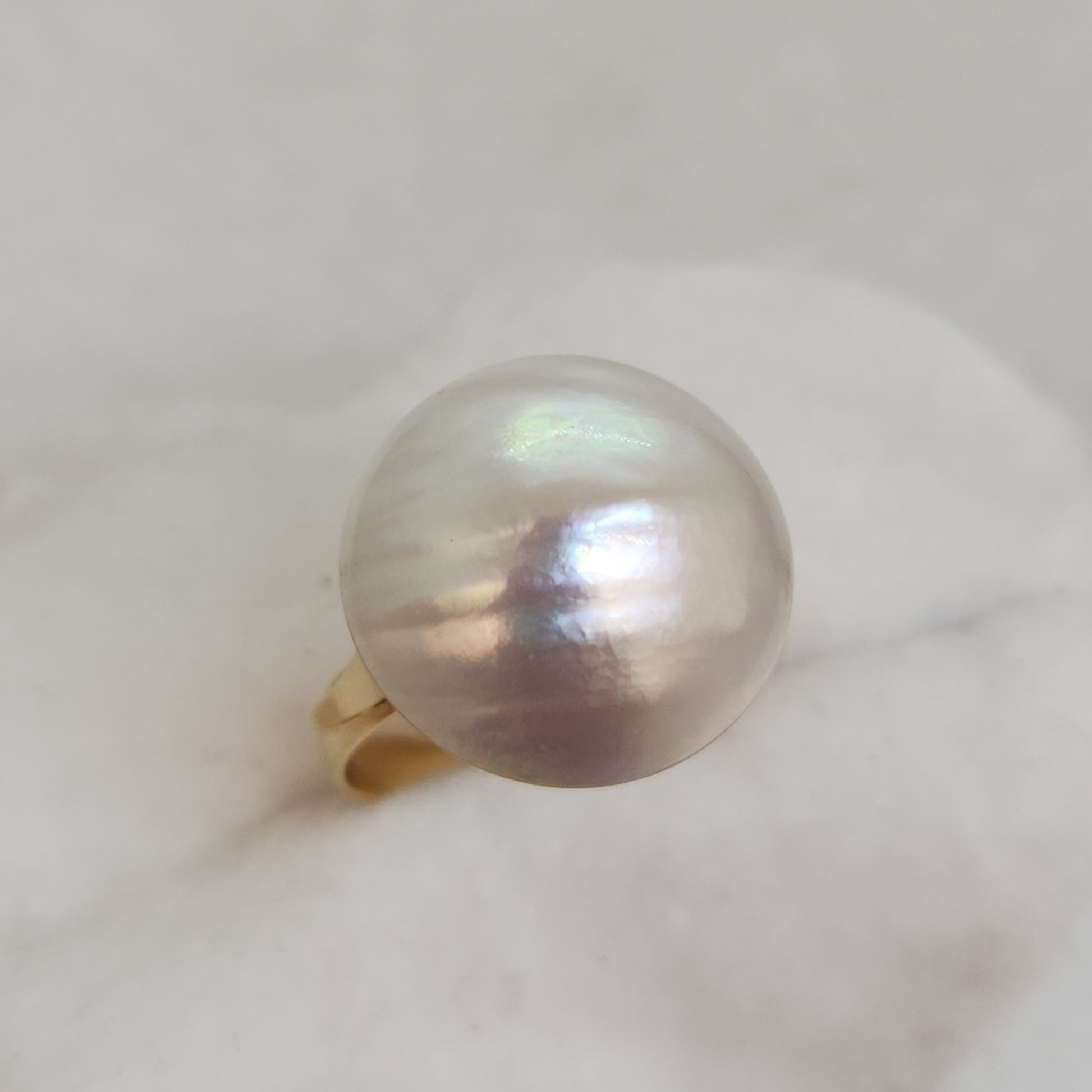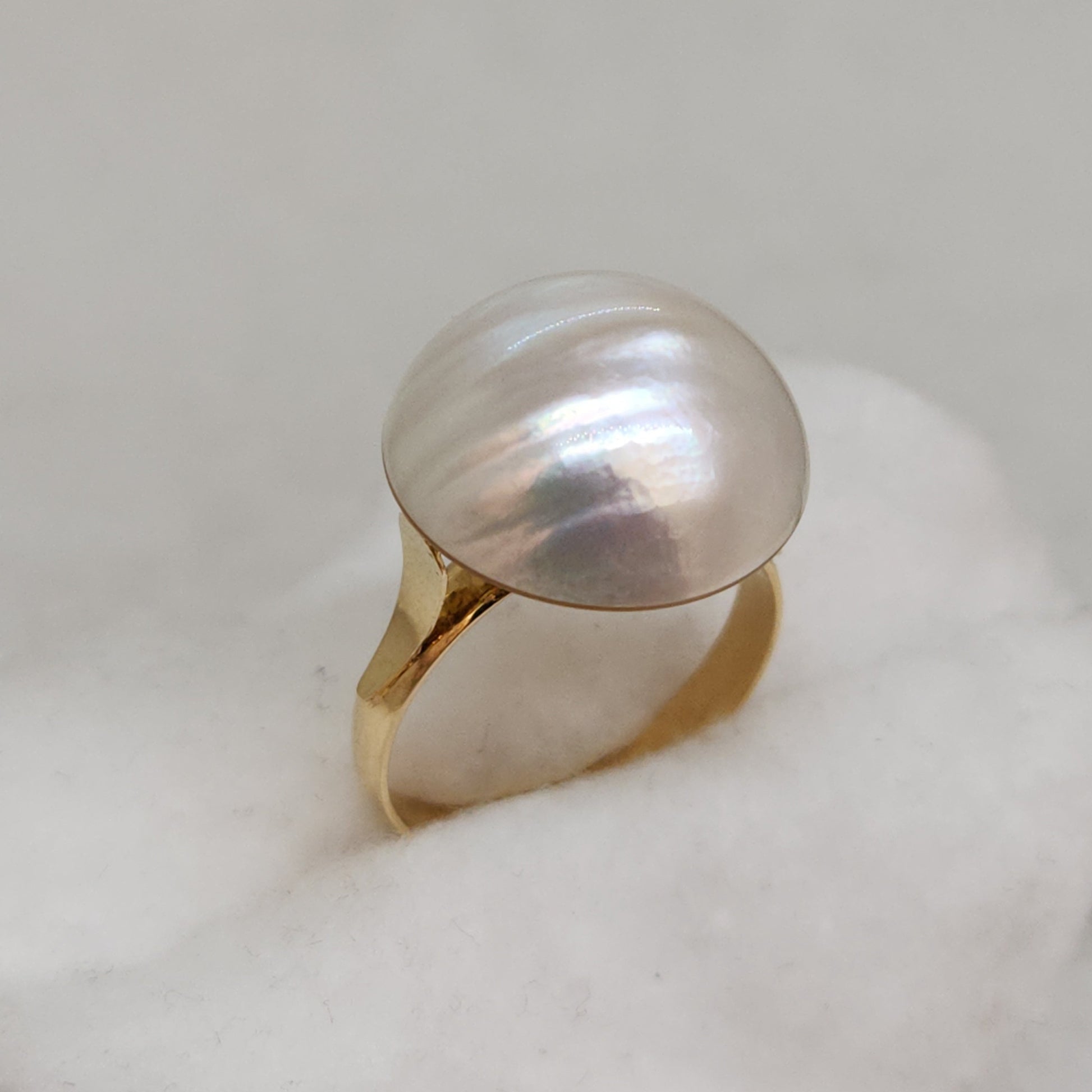 With ripples akin to ocean waves, this is a glowing delight! A mabe pearl, sometimes referred to as a blister pearl, is one formed on the side of the mollusk's shell. This forms a half-dome shape.
