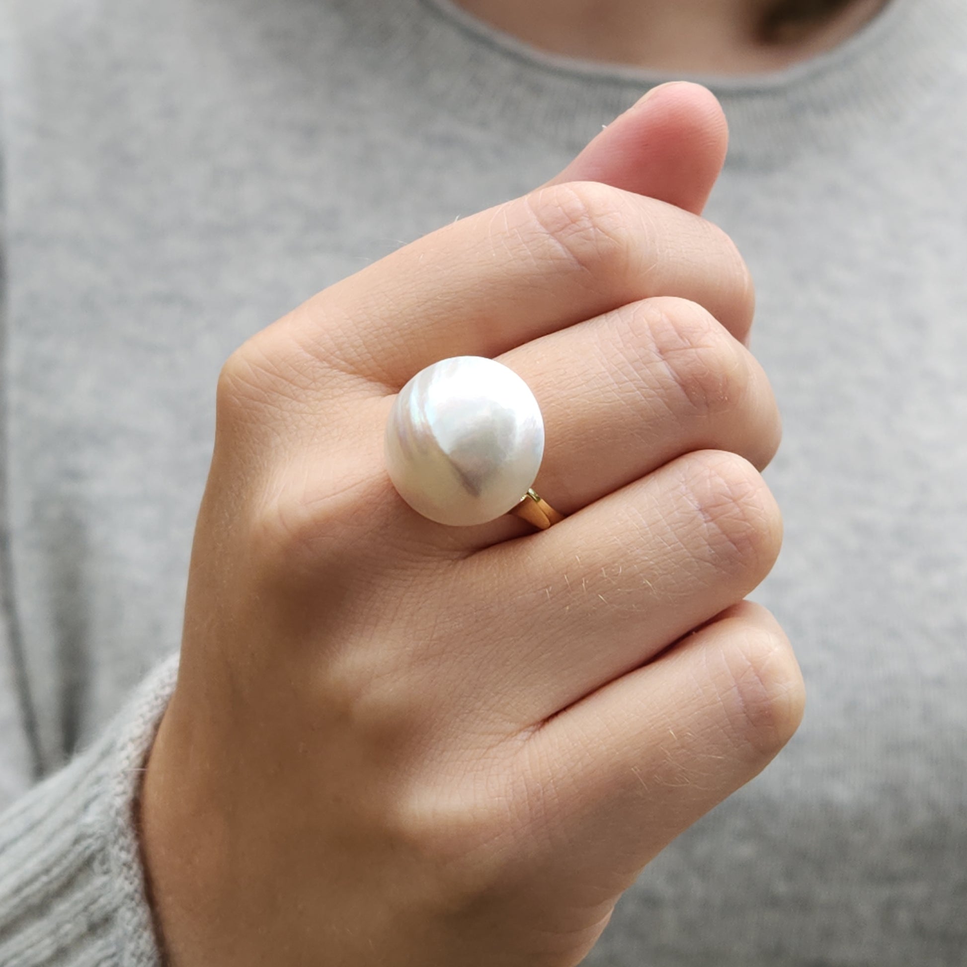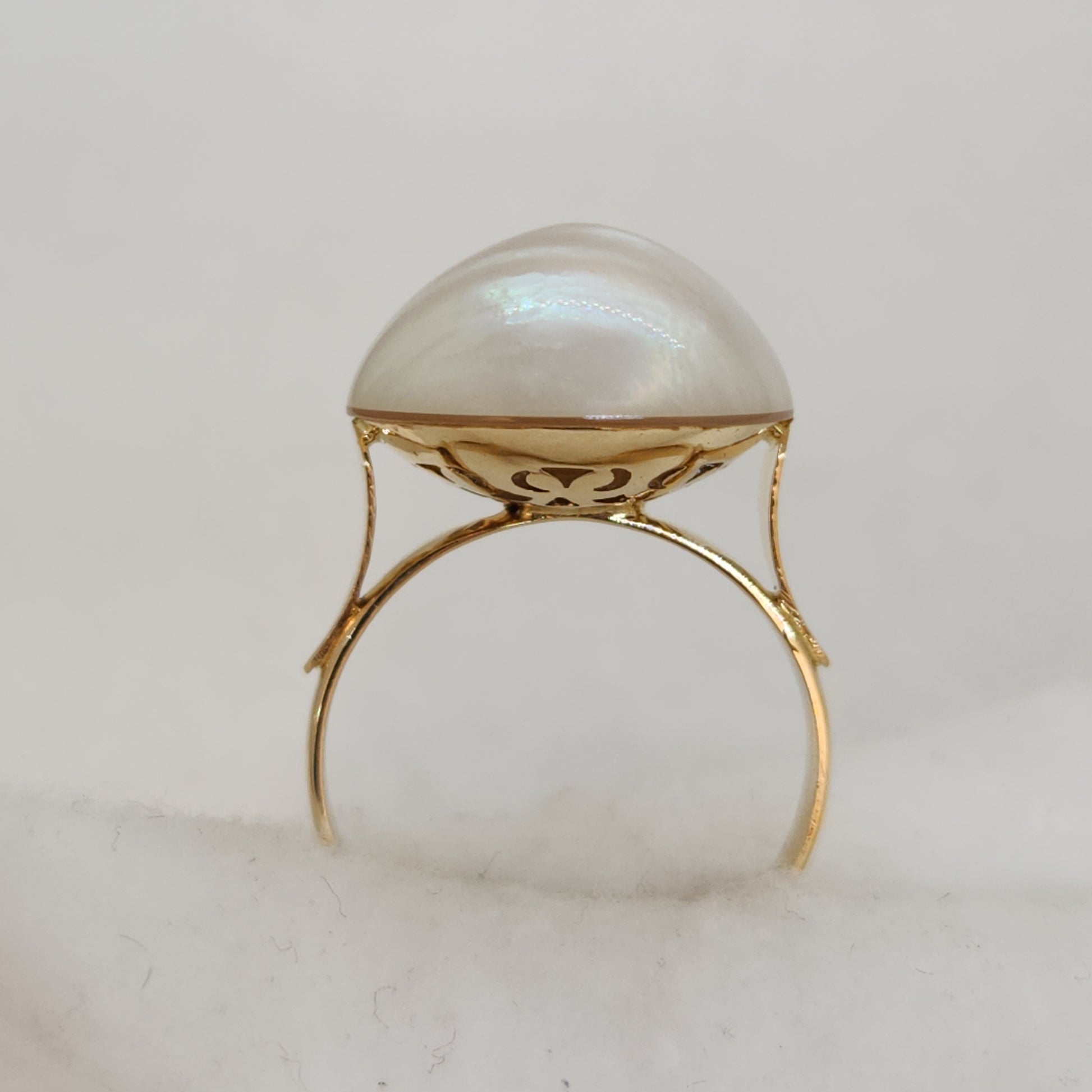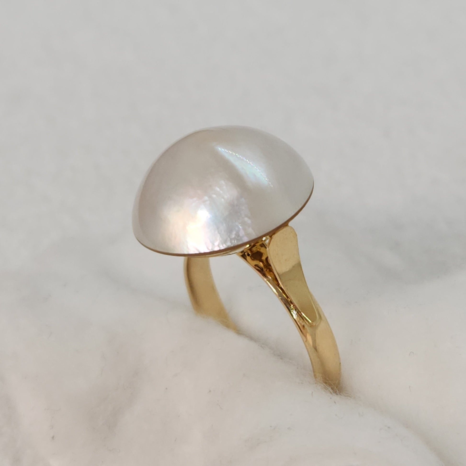 With ripples akin to ocean waves, this is a glowing delight! A mabe pearl, sometimes referred to as a blister pearl, is one formed on the side of the mollusk's shell. This forms a half-dome shape.