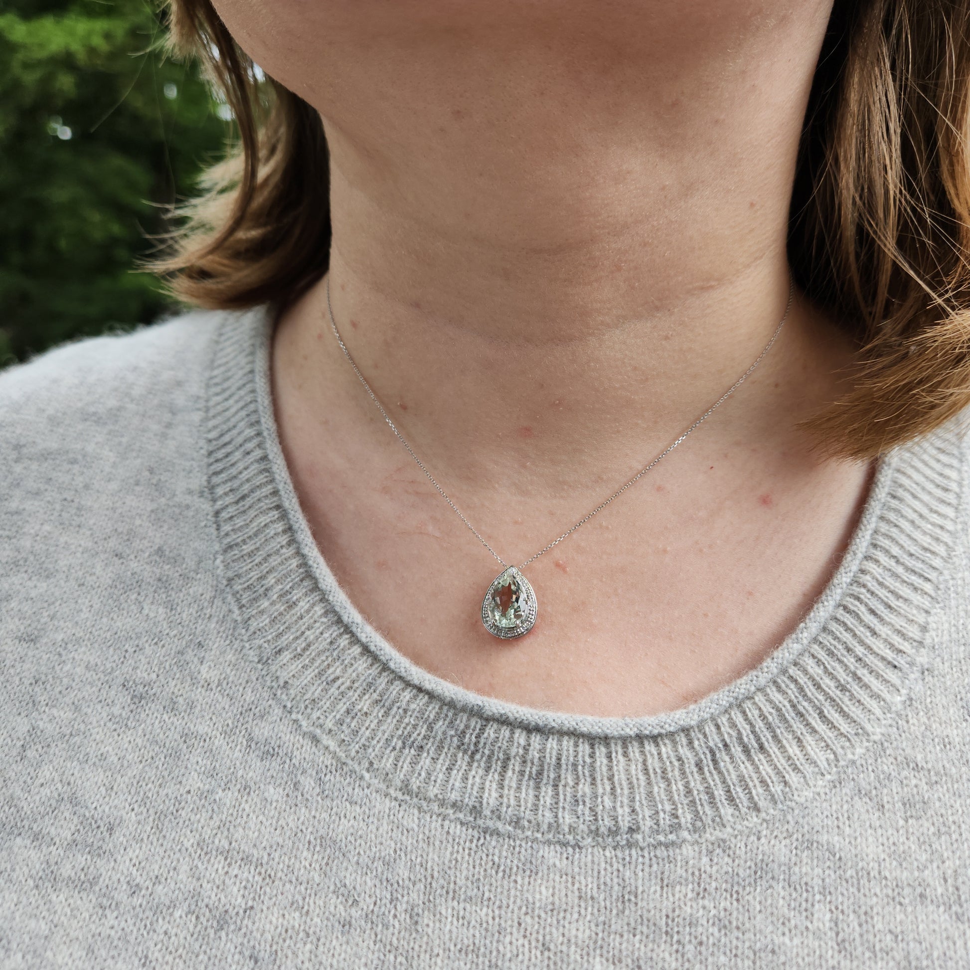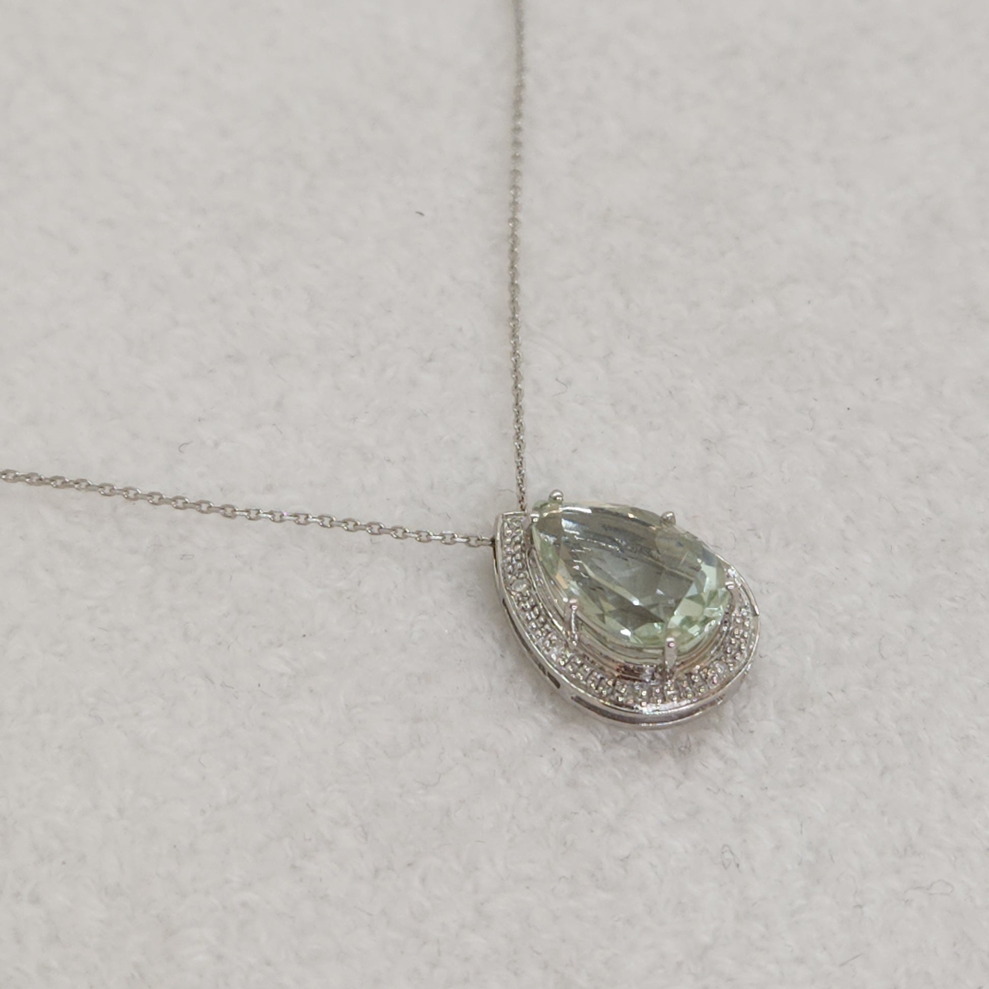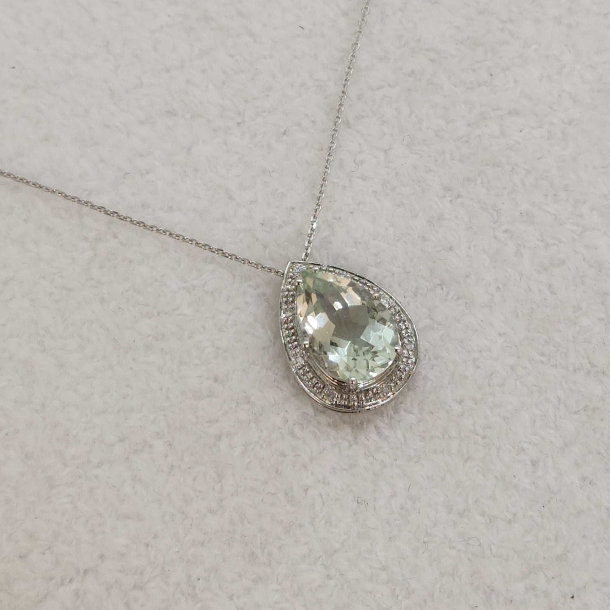 Sometimes referred to by it's formal name of Prasiolite, this soft green quartz is larger than expected. A gorgeous piece that would nestle around the the neck to catch the light - and lots of attention!