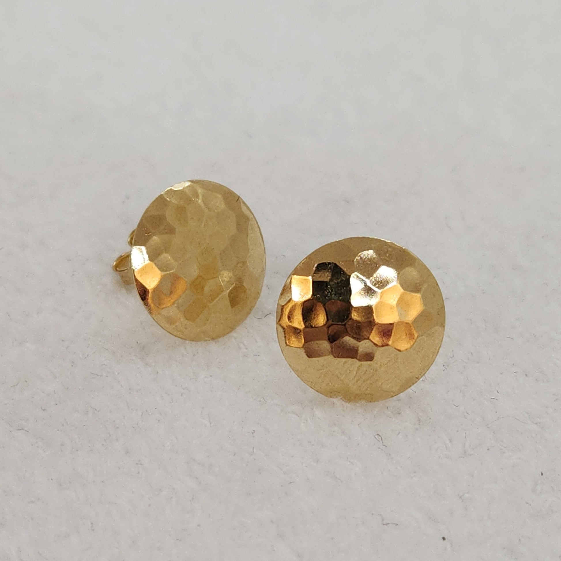 Another example of an embellishment technique creating a unique look. In this case the art of hammering or forging is an ancient craft practiced for centuries to make jewellery. A subtle but effective look on this lovely pair of earrings.
