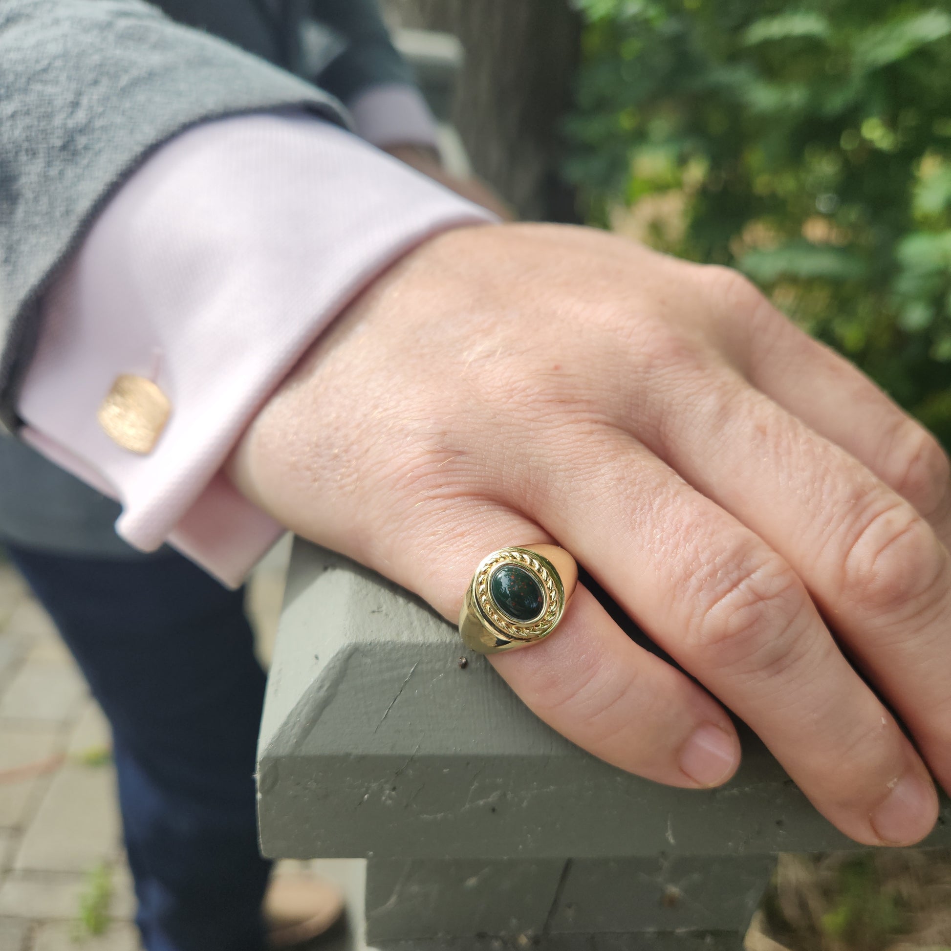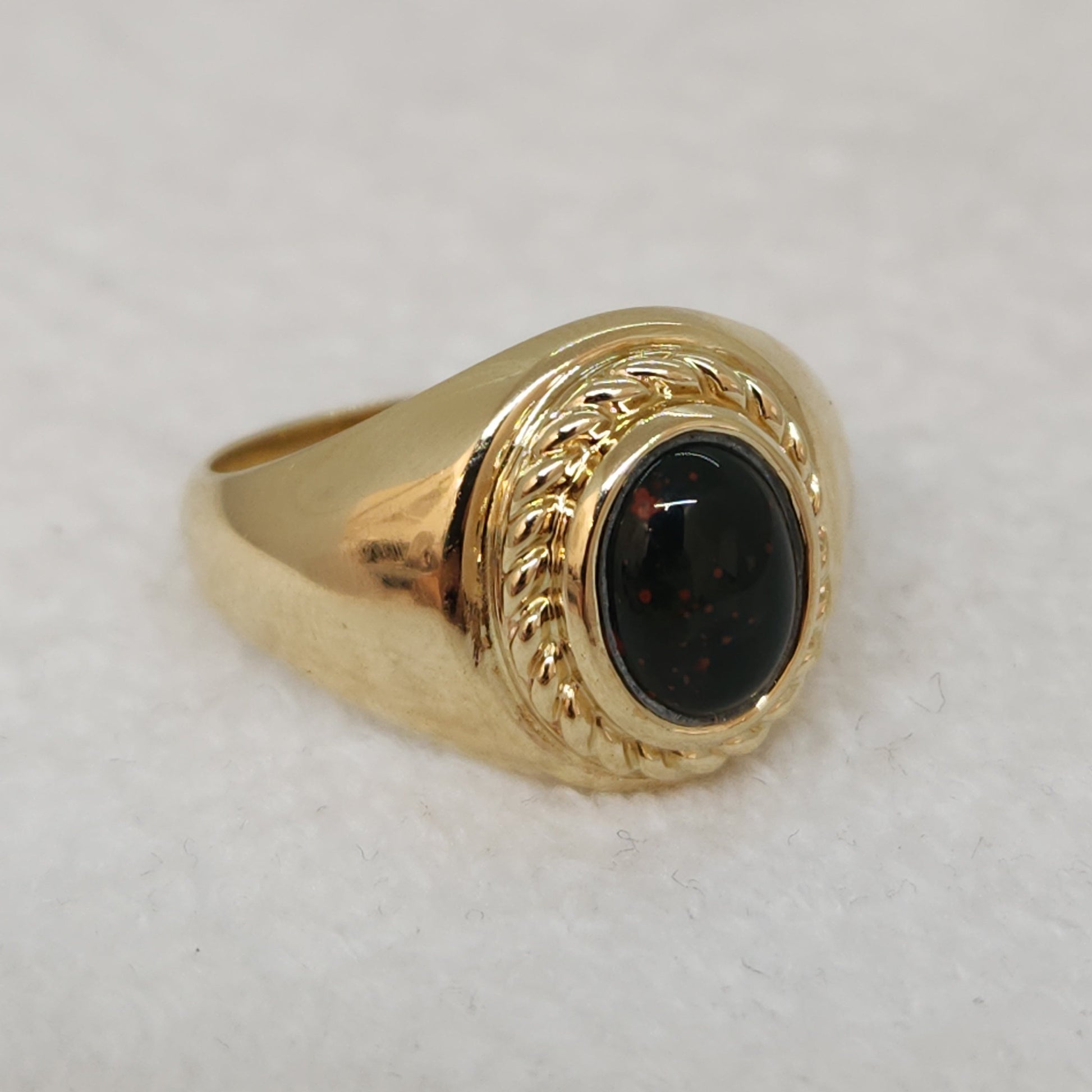 Bloodstones are a dark green variety of chalcedony often adorned with a splatter of bright red. It has been a popular gemstone for at least two thousand years, and more traditionally referred to as "heliotropes" by European authors and in works of the 18th century and earlier, championed for their healing properties.