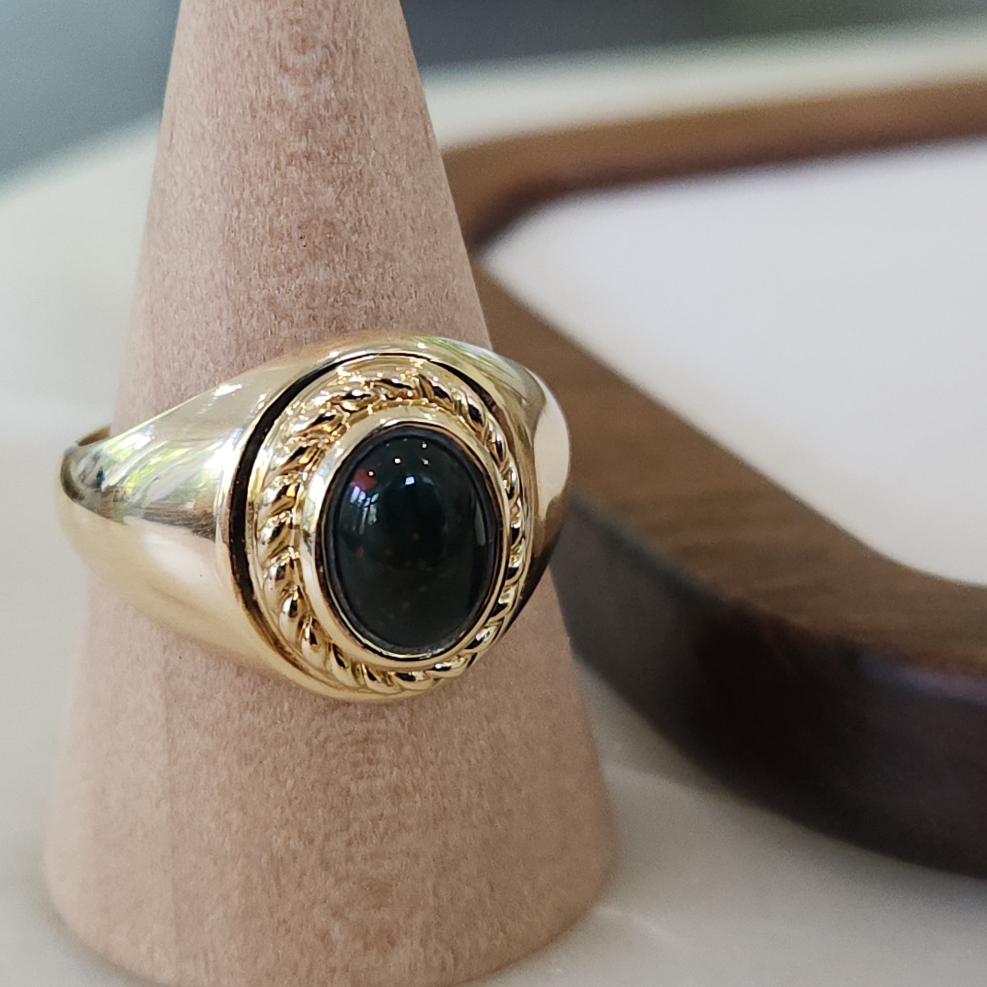 We love the rope detail surrounding the stone. This is perfect for a woman, or as a men's pinky ring!