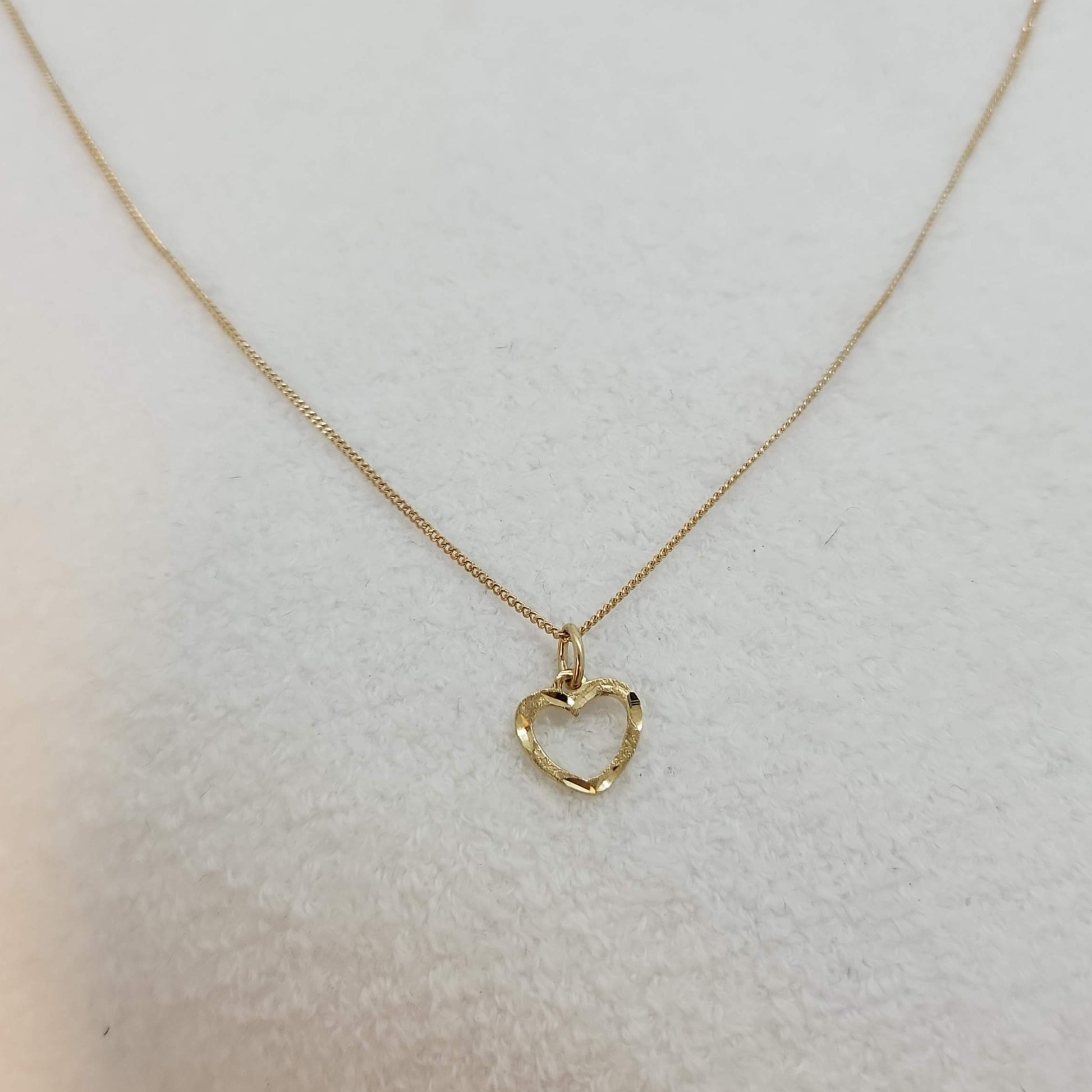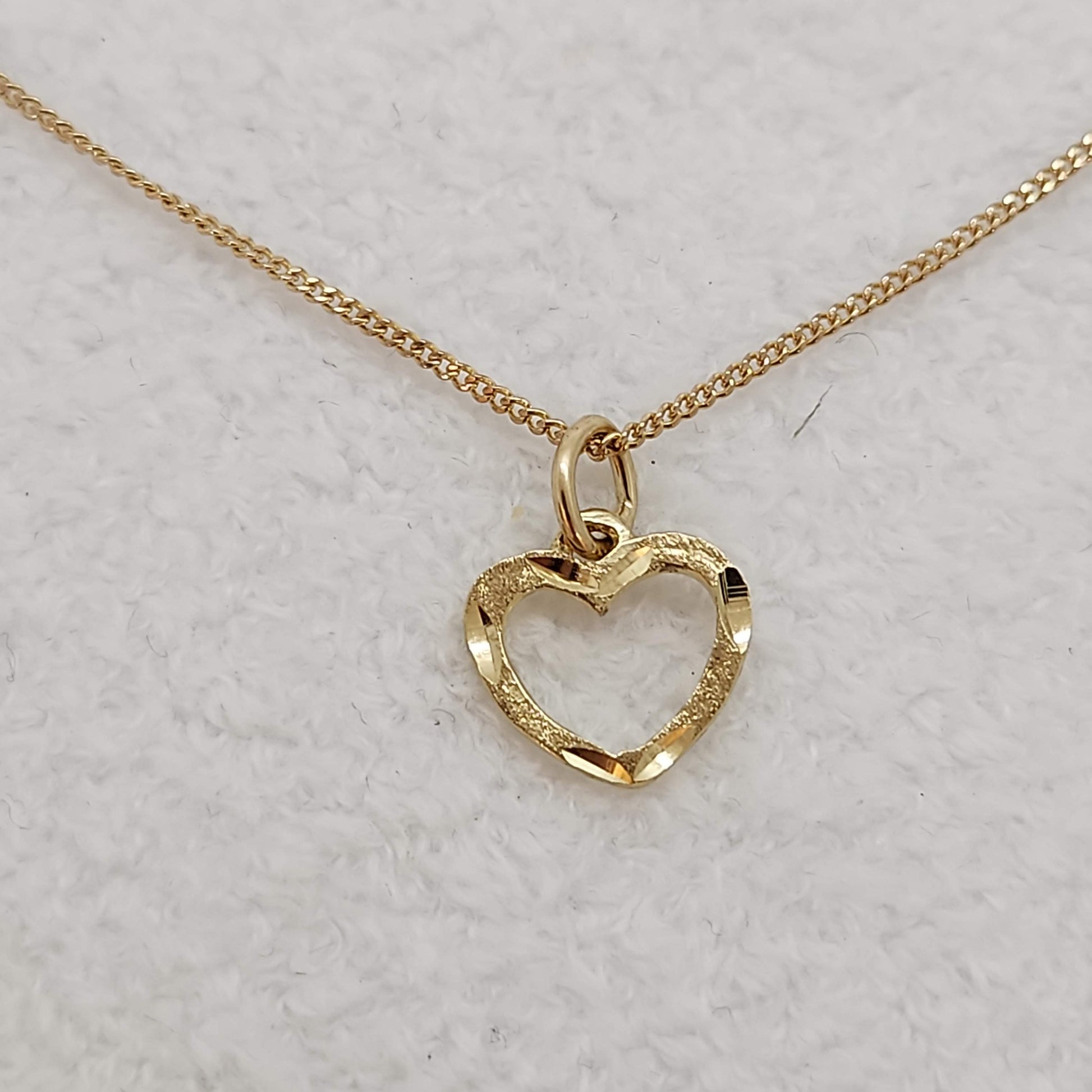 A golden pendant filled with the warmth of a love story. The diamond cut texture catches the light from every angle. A perfect gift to celebrate someone special.