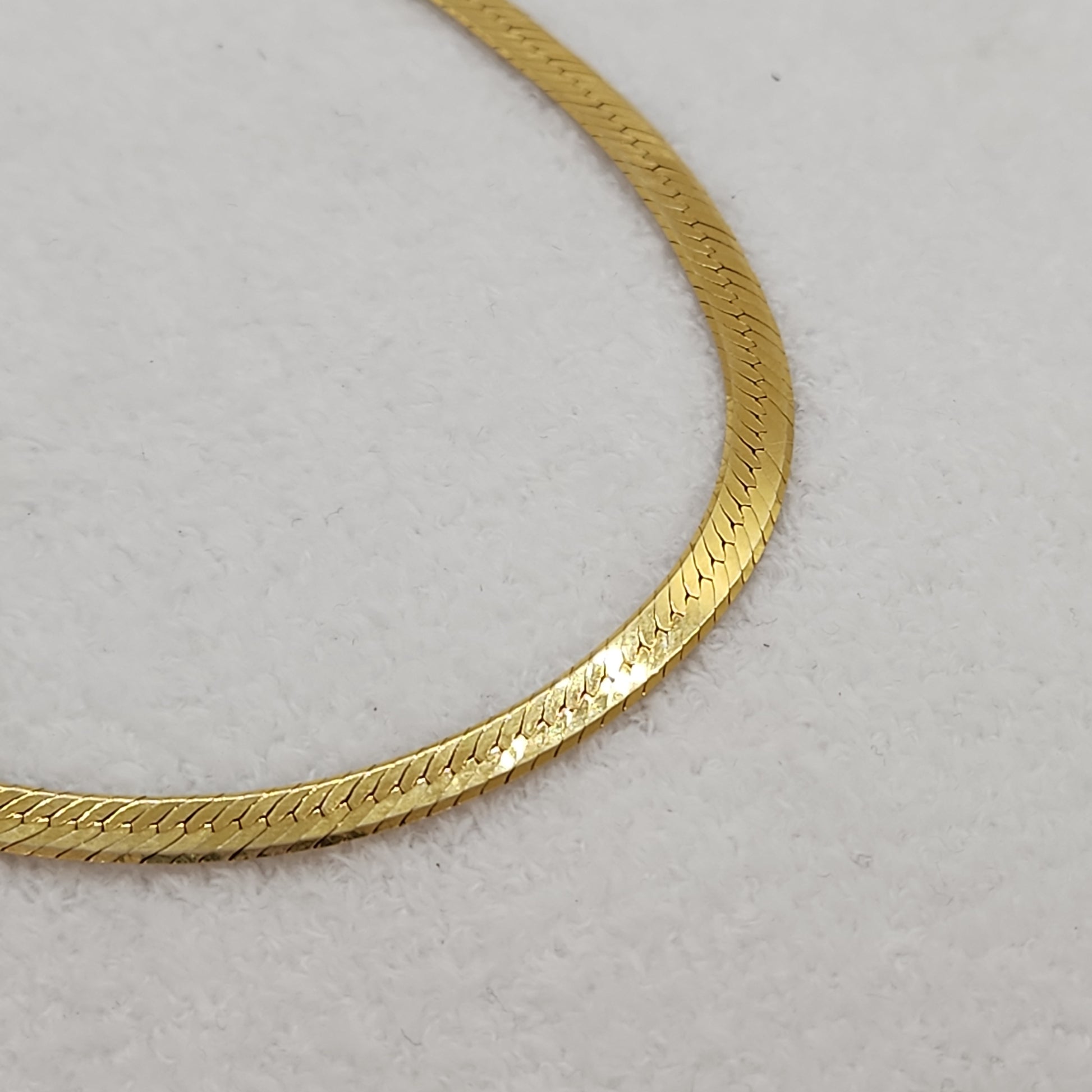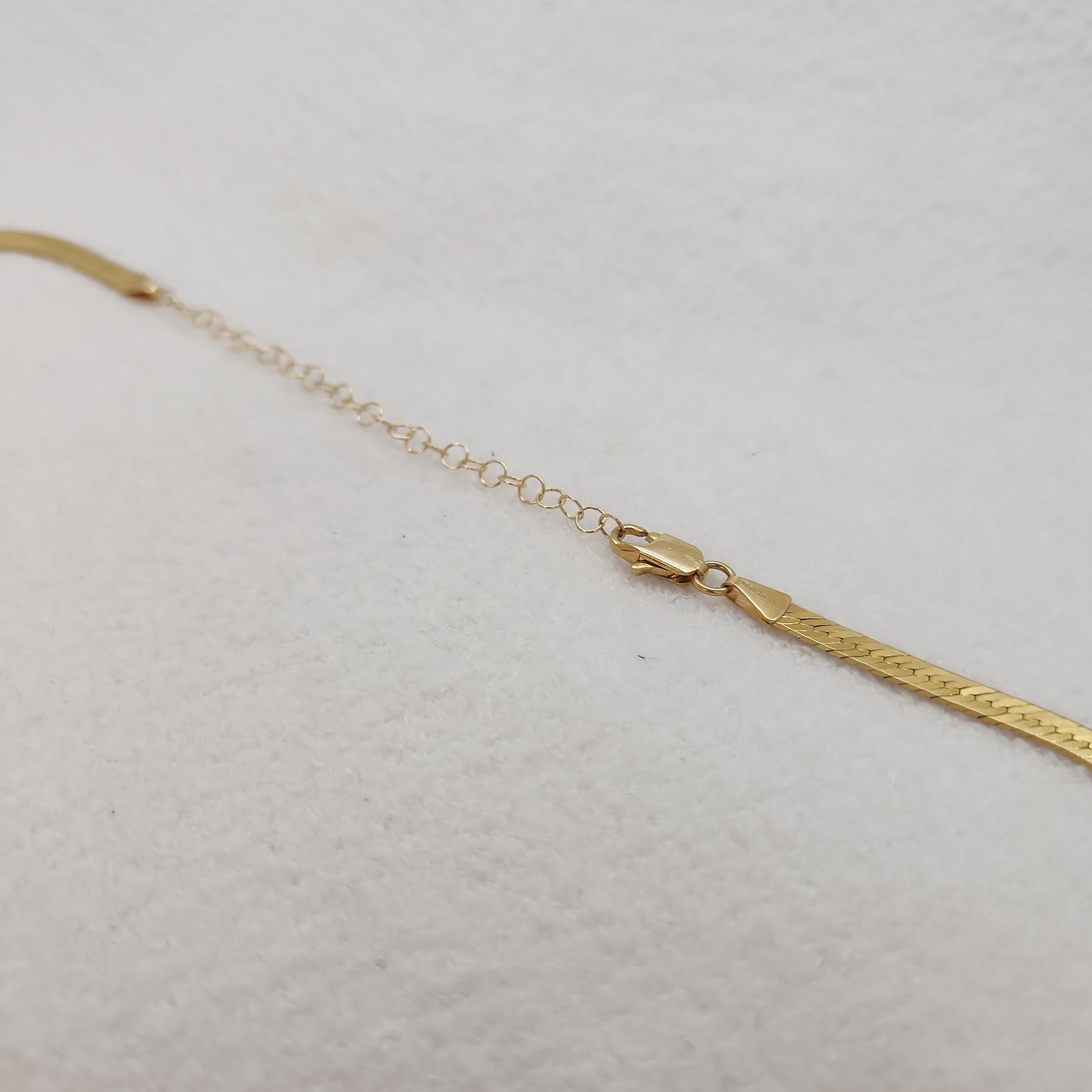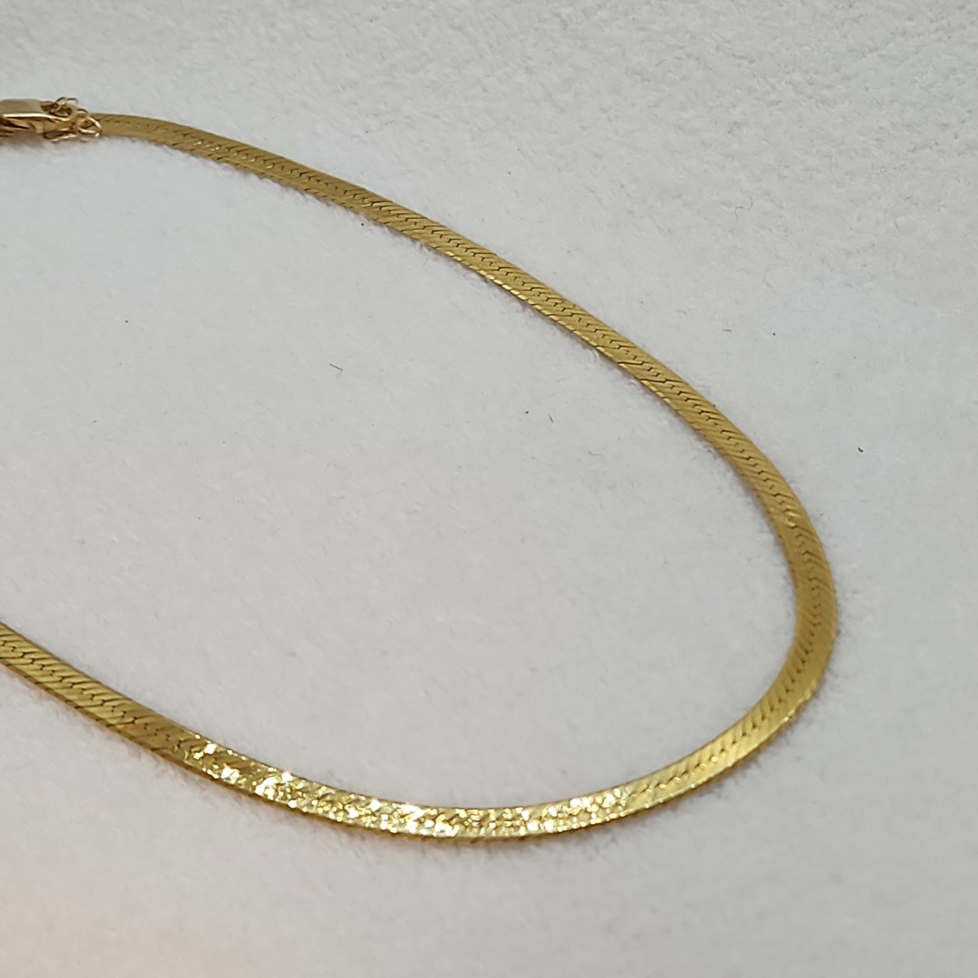 A design the dates back to Ancient Egypt, the herringbone chain is is named for its resemblance to the many slanted bones of the herring fish. It's dreamy, it hugs your collarbone and the gold luster just glows.