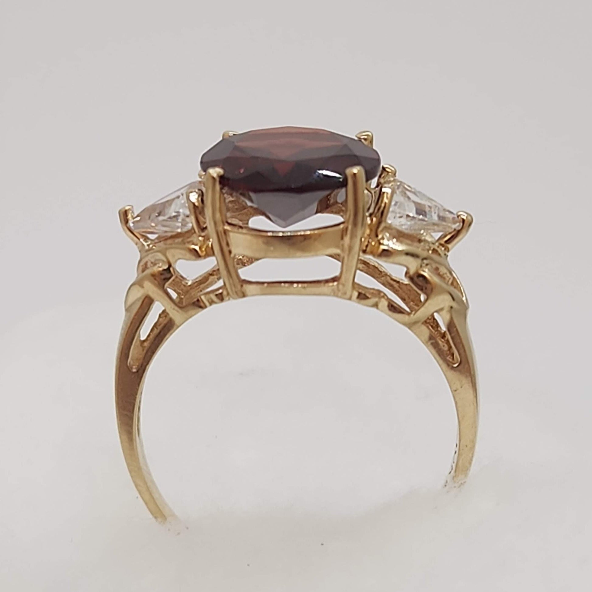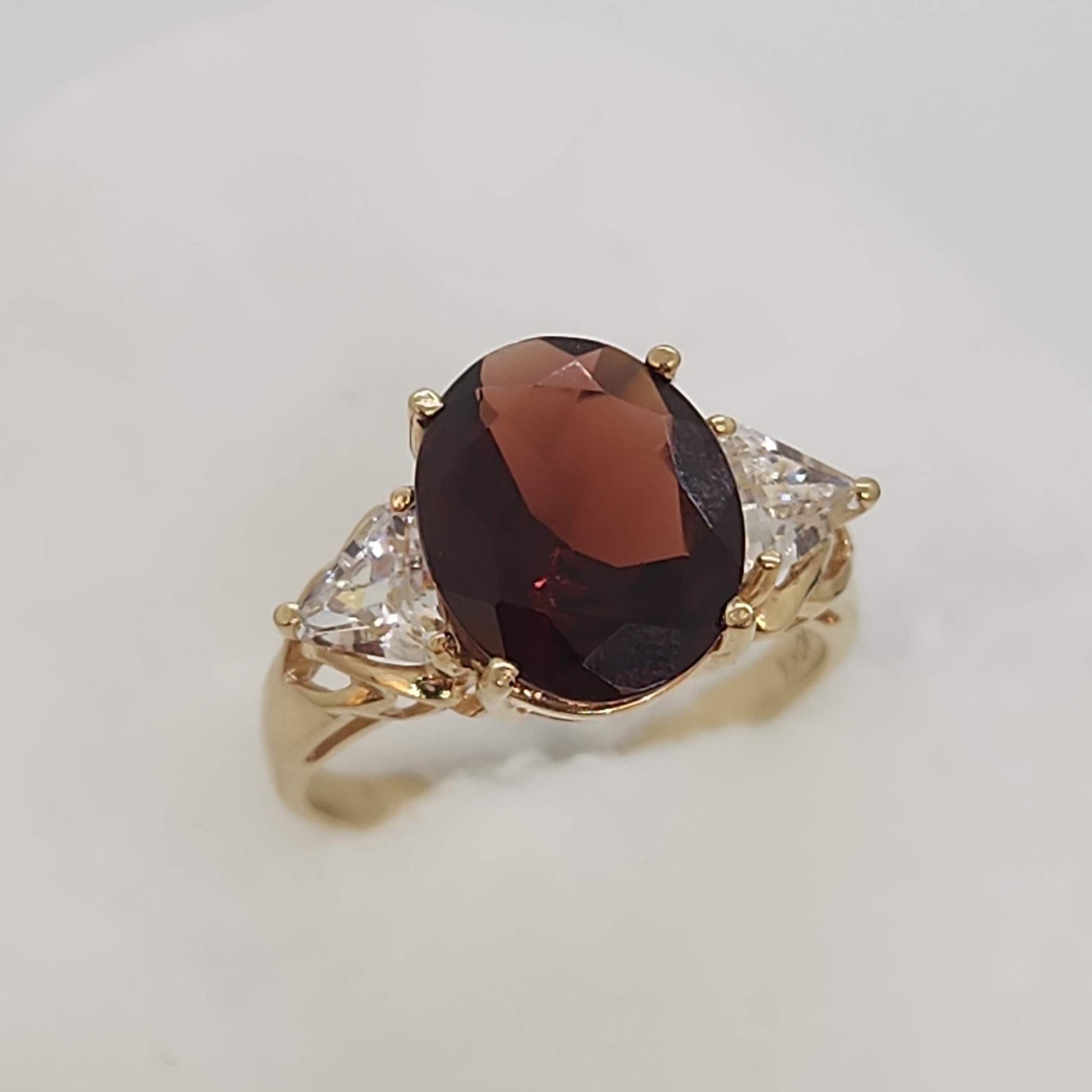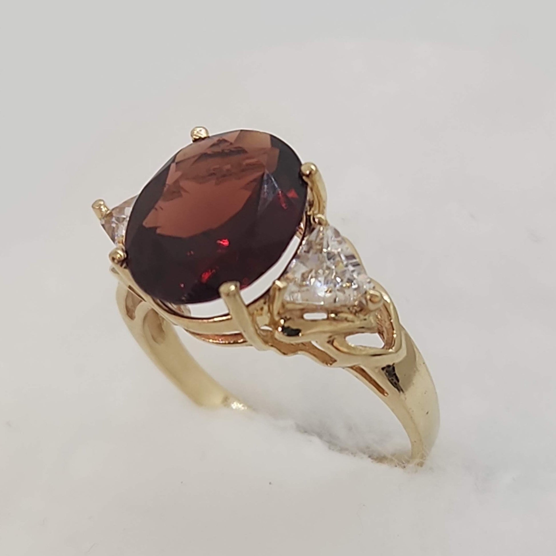 The name “garnet” originates from the medieval Latin granatus, meaning “pomegranate,” in reference to the similarity of the red color. Substantial in size, this stone showcases beautifully. Garnet is a January birthstone. A lovely design for a larger finger.