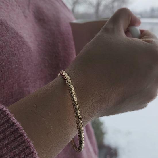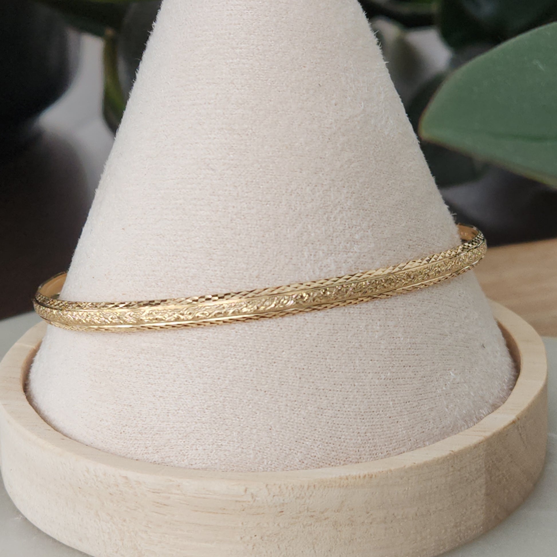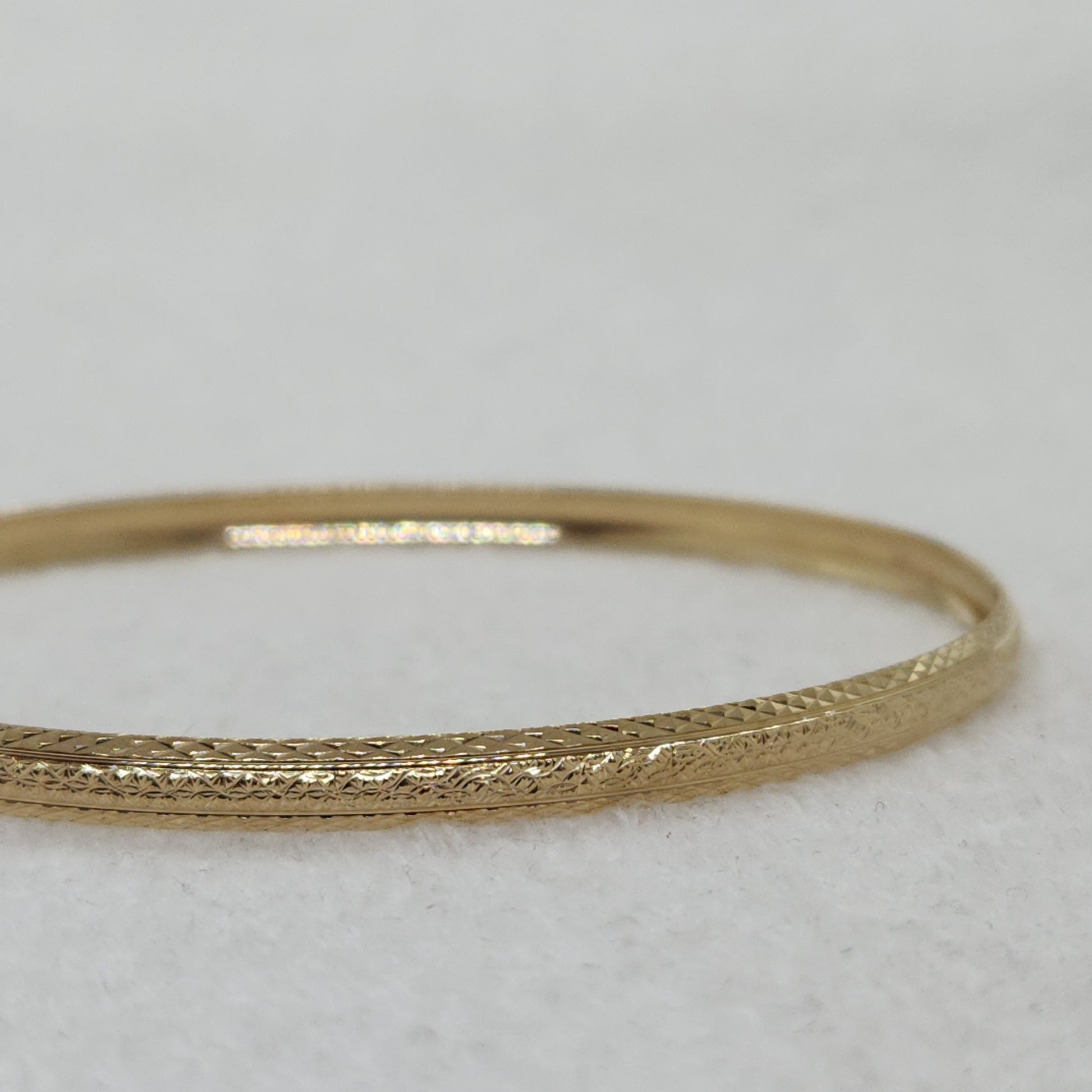 Radiant and refined, this bangle is incredibly eye-catching! The texture bounces the light around and it's sparkle galore. This classic bangle can stand on its own or part of a bangle stack.