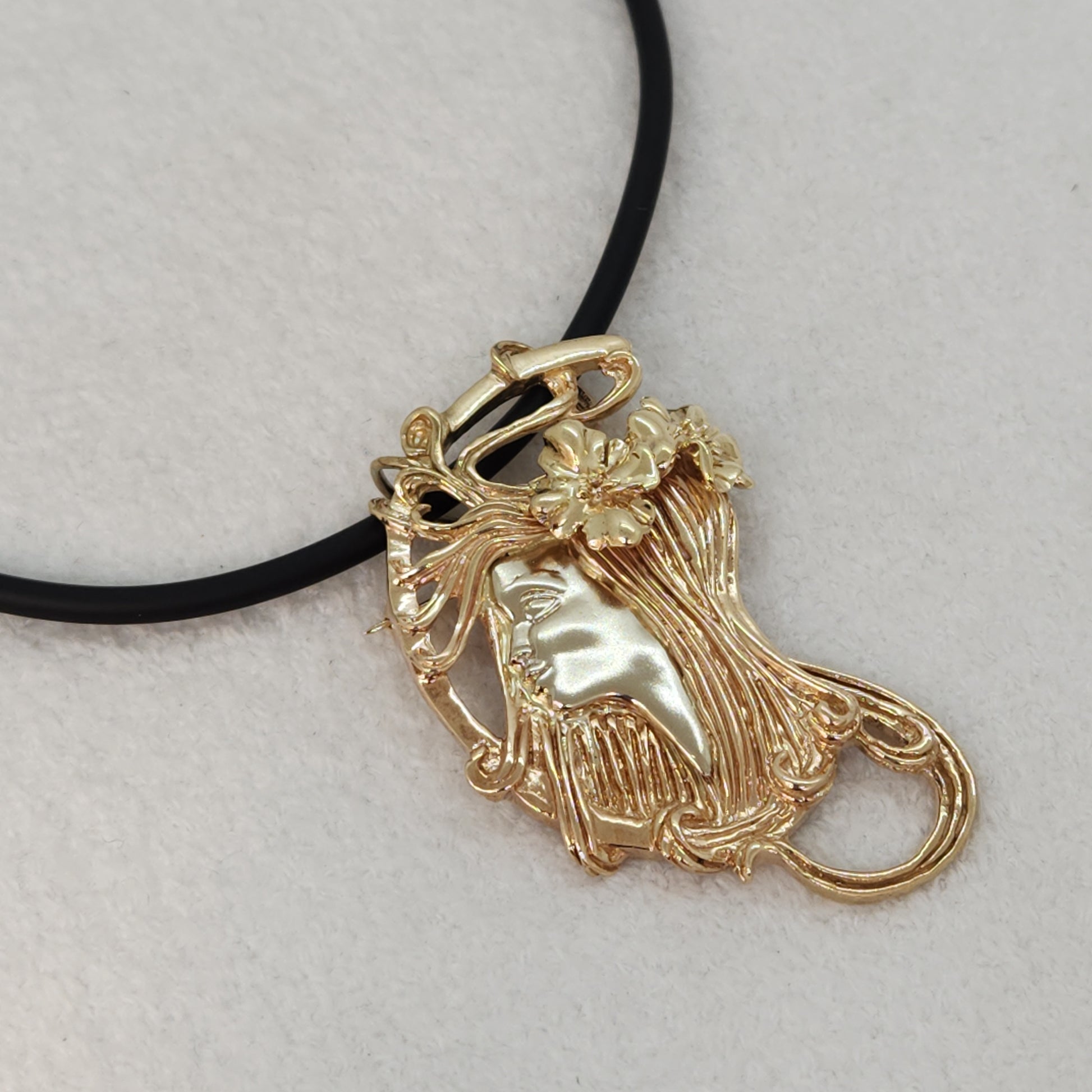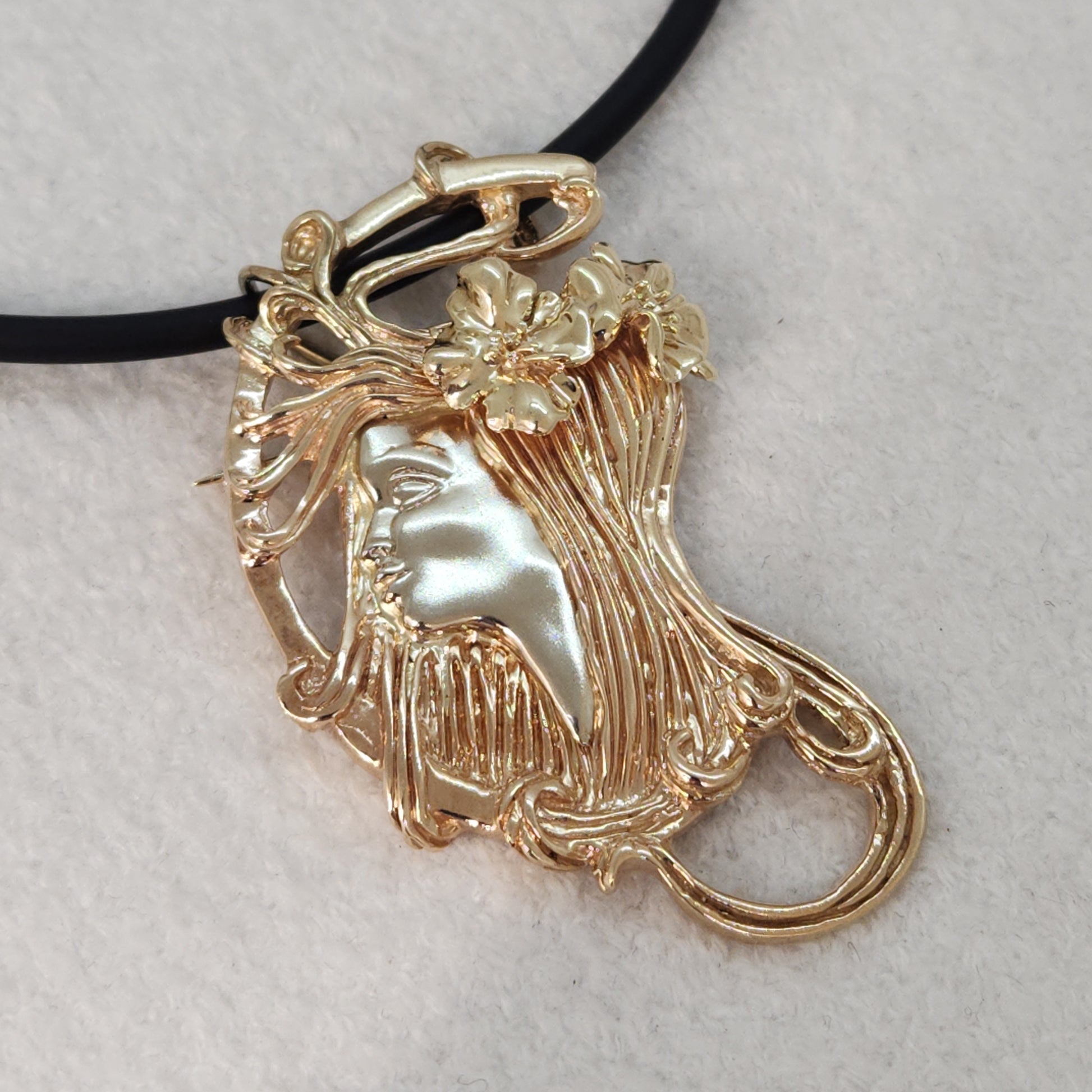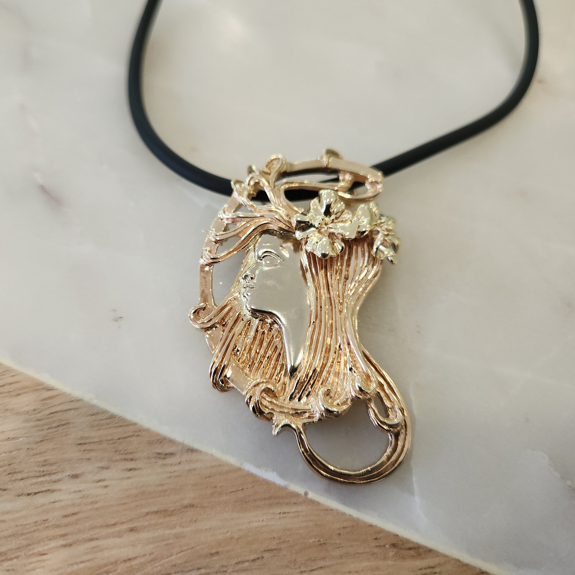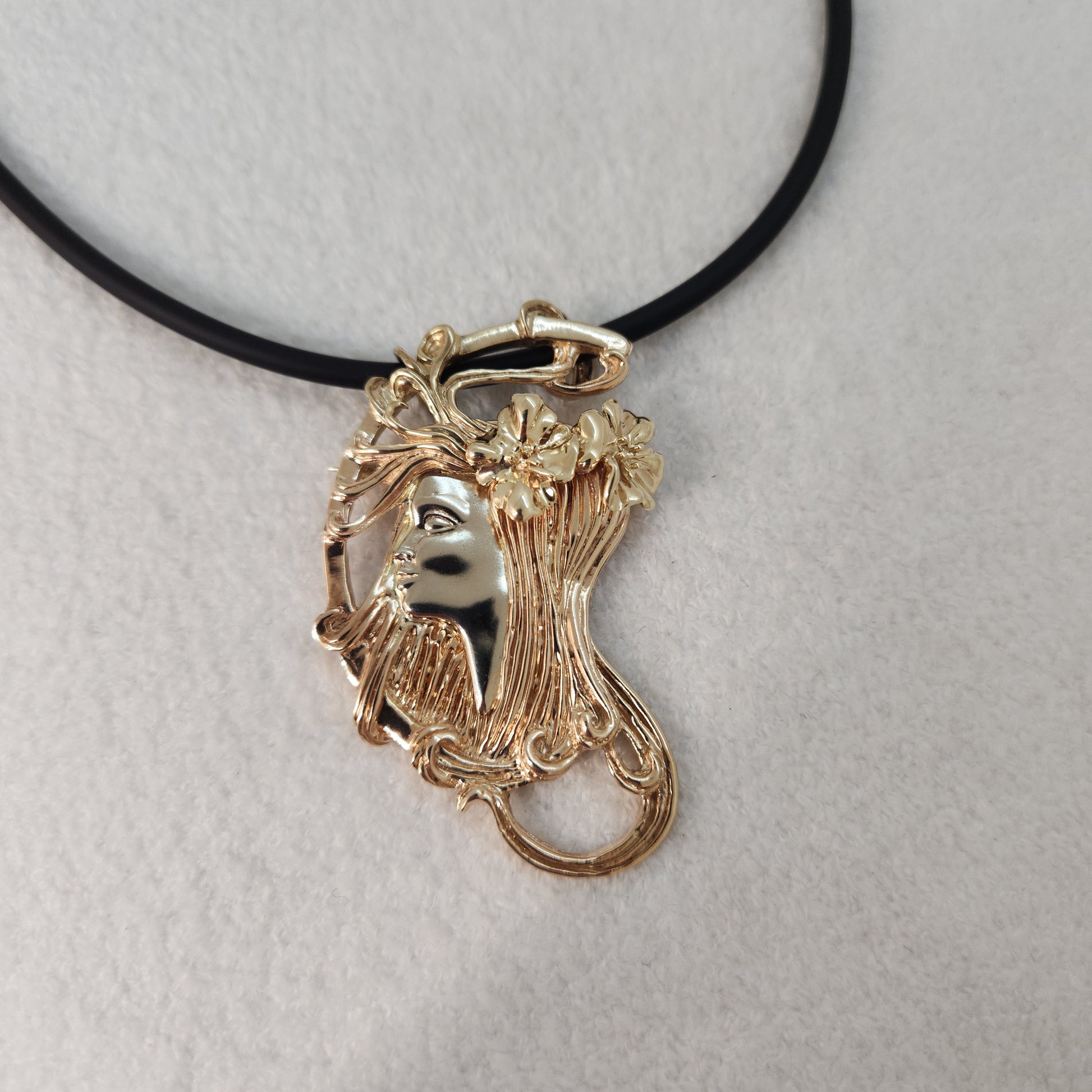With locks of hair floating in the current, surrounding high cheekbones. Her head is bedecked with a garland of flowers. What is her message? Art Nouveau inspired, perfect for any season - a truly gorgeous statement!
