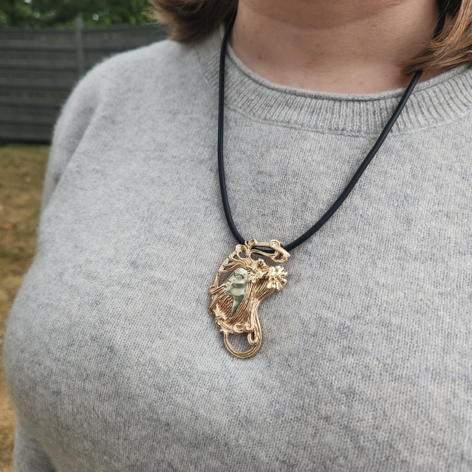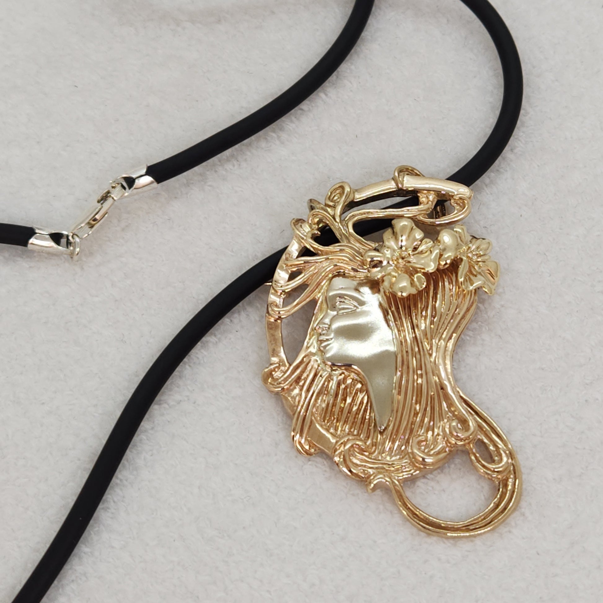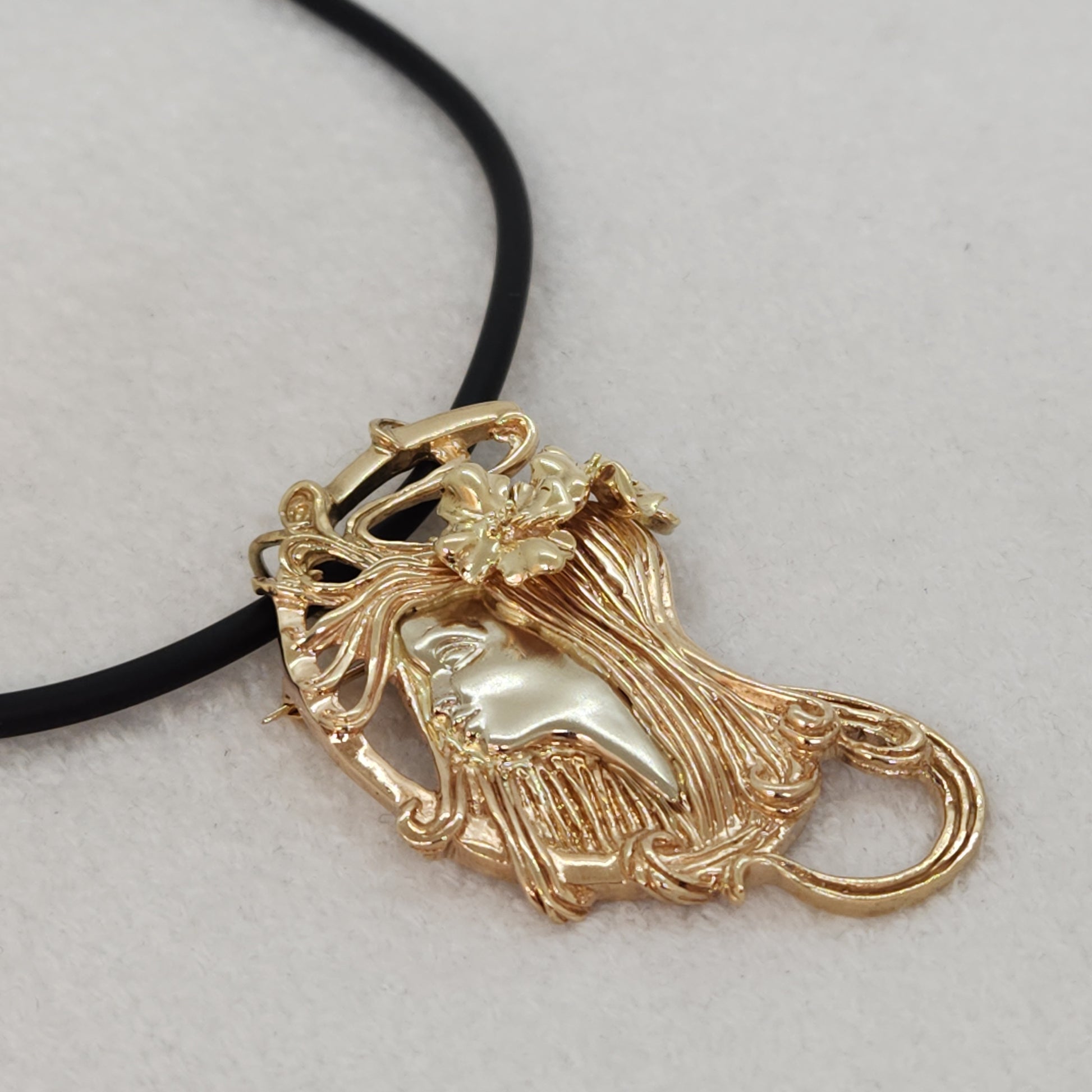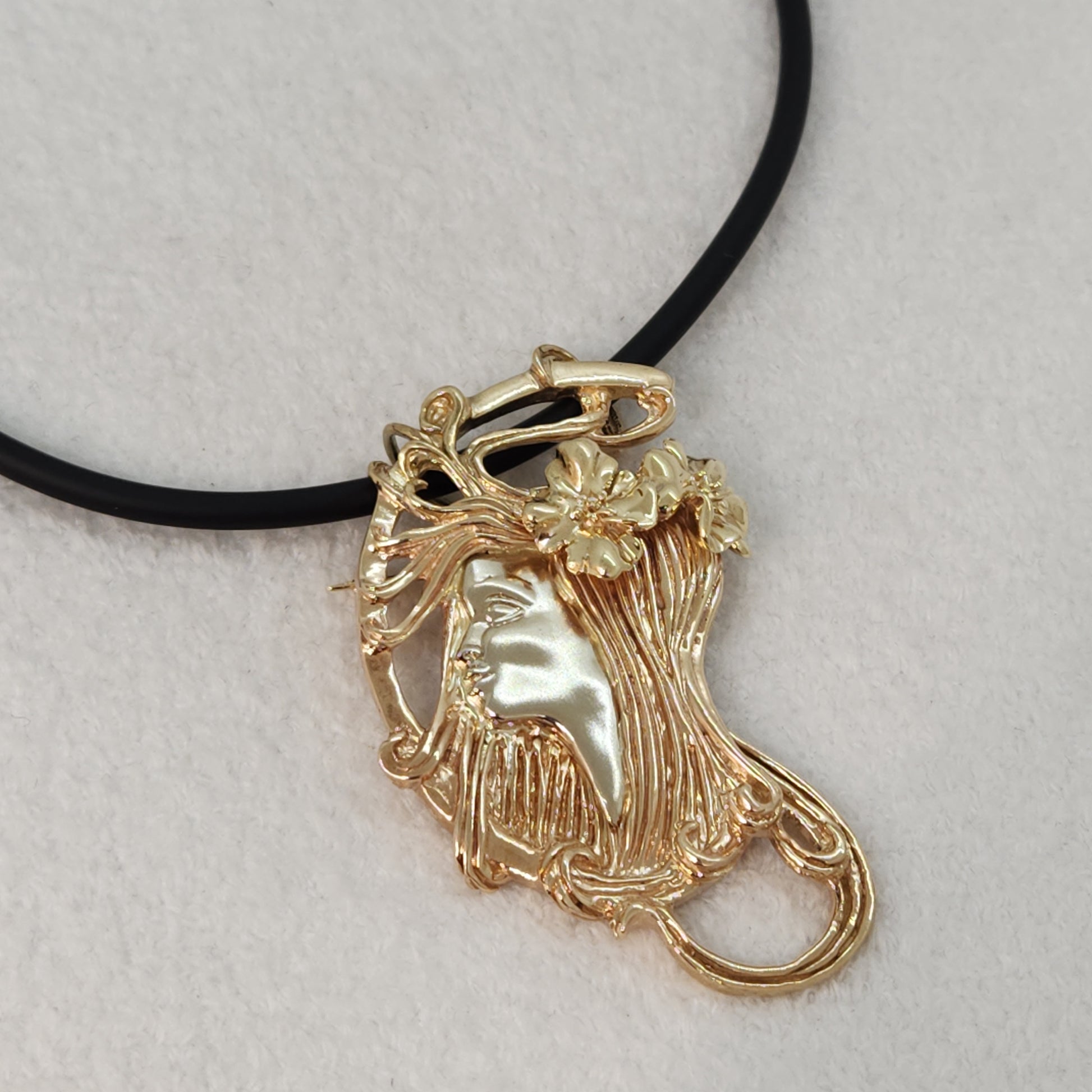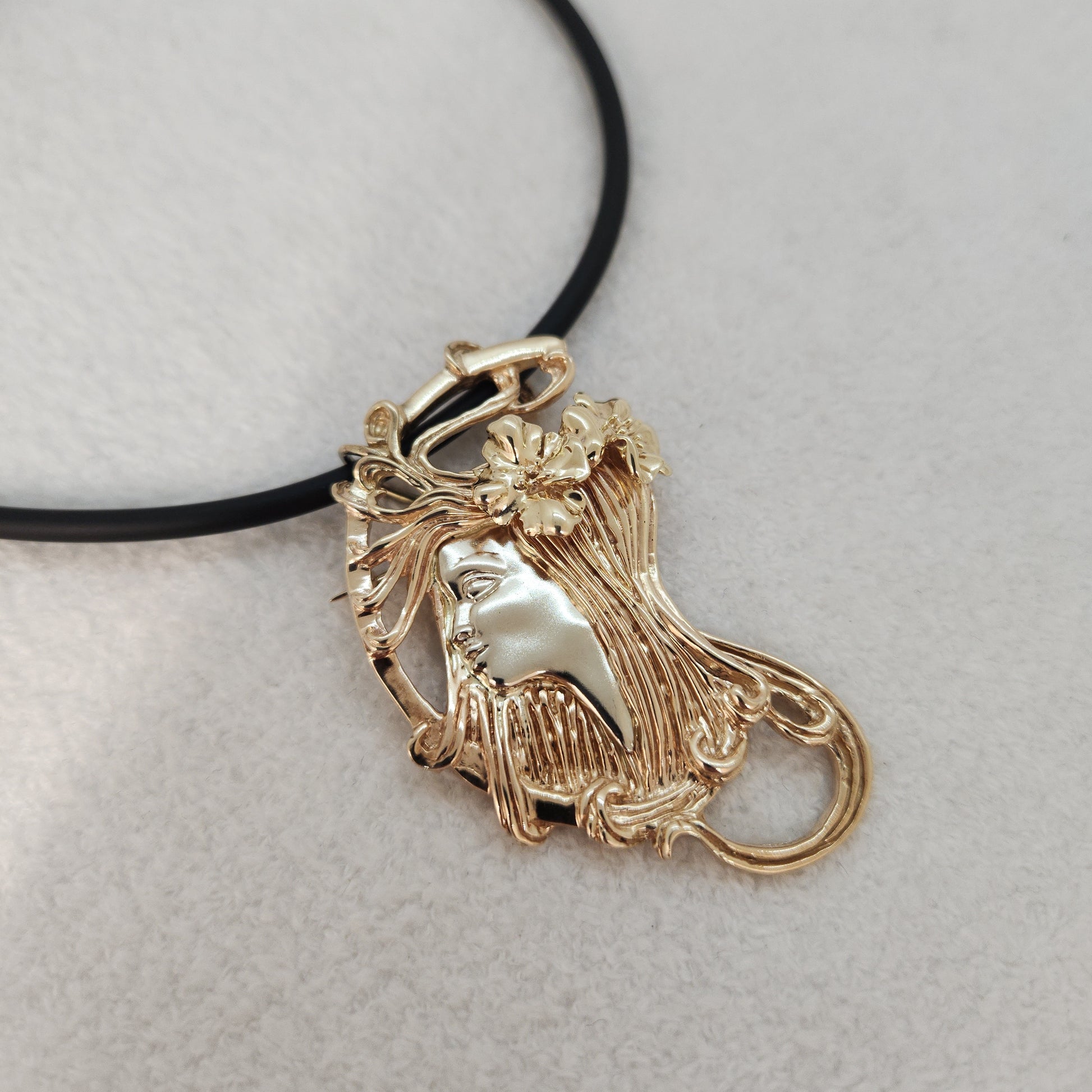 With locks of hair floating in the current, surrounding high cheekbones. Her head is bedecked with a garland of flowers. What is her message? Art Nouveau inspired, perfect for any season - a truly gorgeous statement!