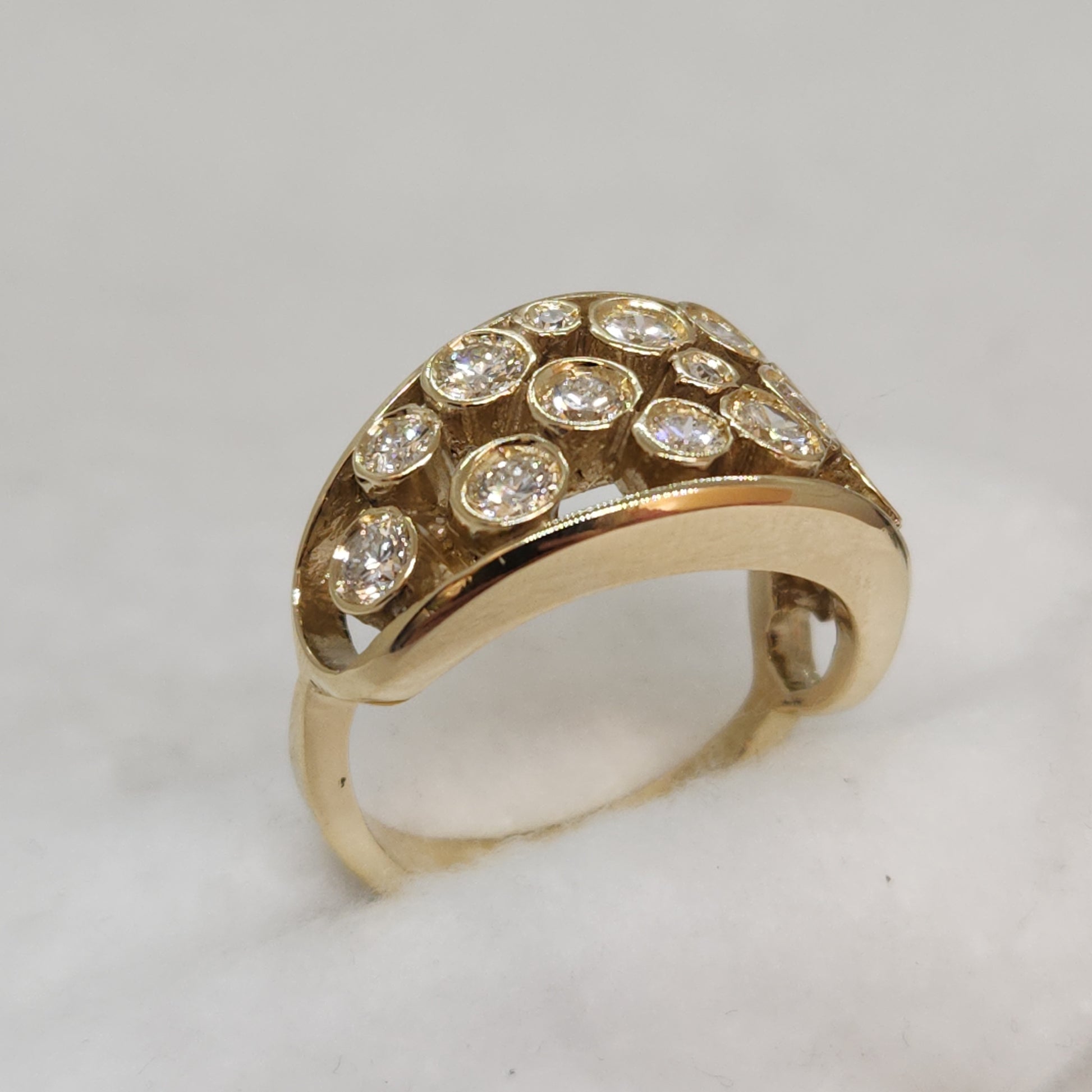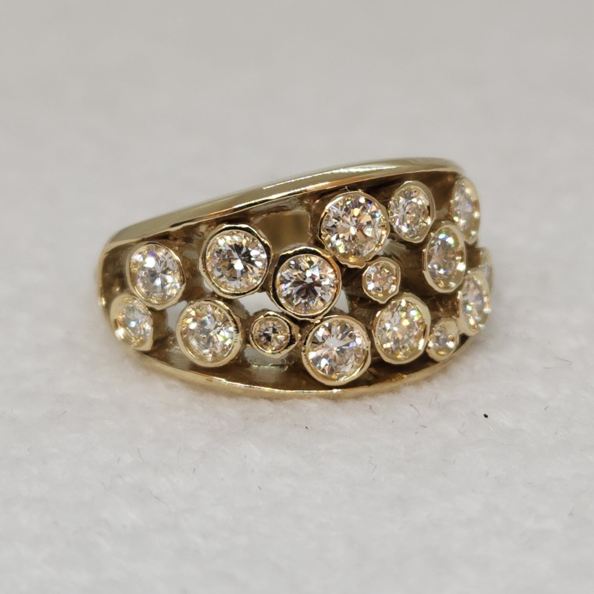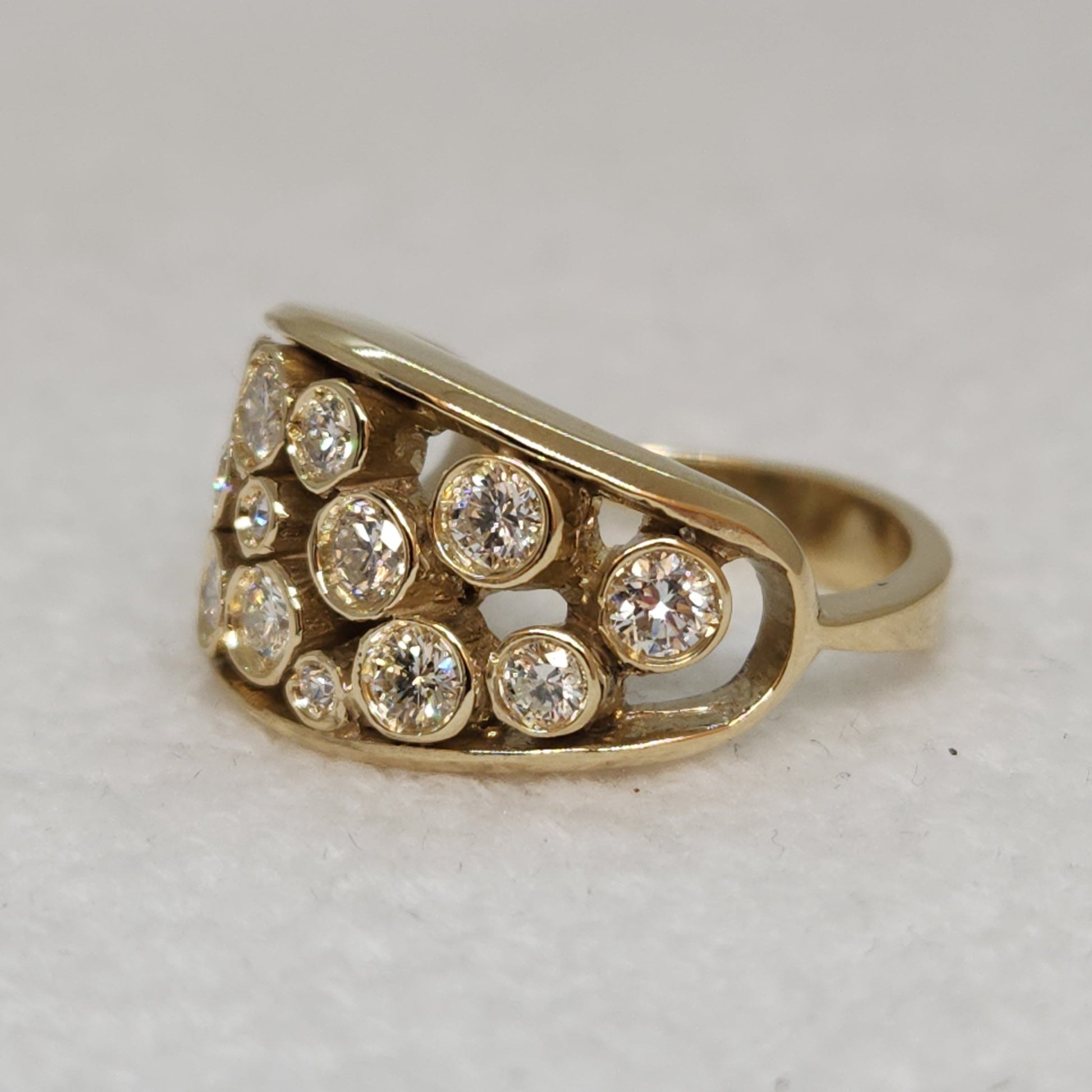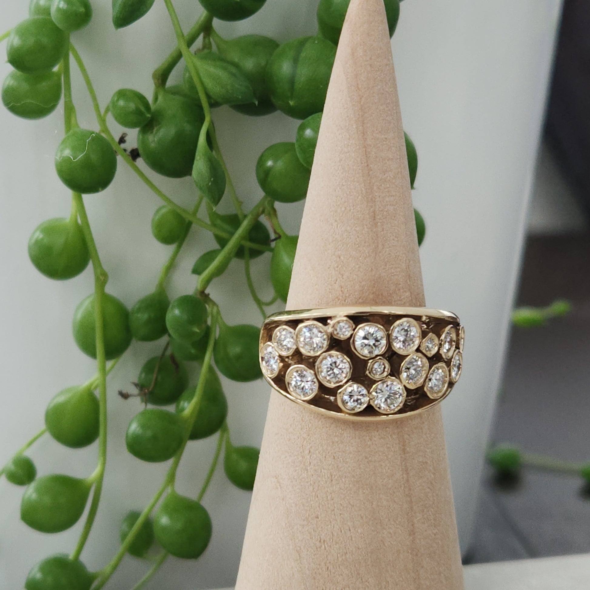 Give in to your inner magpie, this one is full of incontestable elegance. A starry night of sparkling diamonds, this is a one-of-a-kind creation made by Marilyn herself! A pairing of diamonds, in various sizes come together to create a band of sparkles across your finger. Comfortable to wear, you can make this your everyday statement piece.