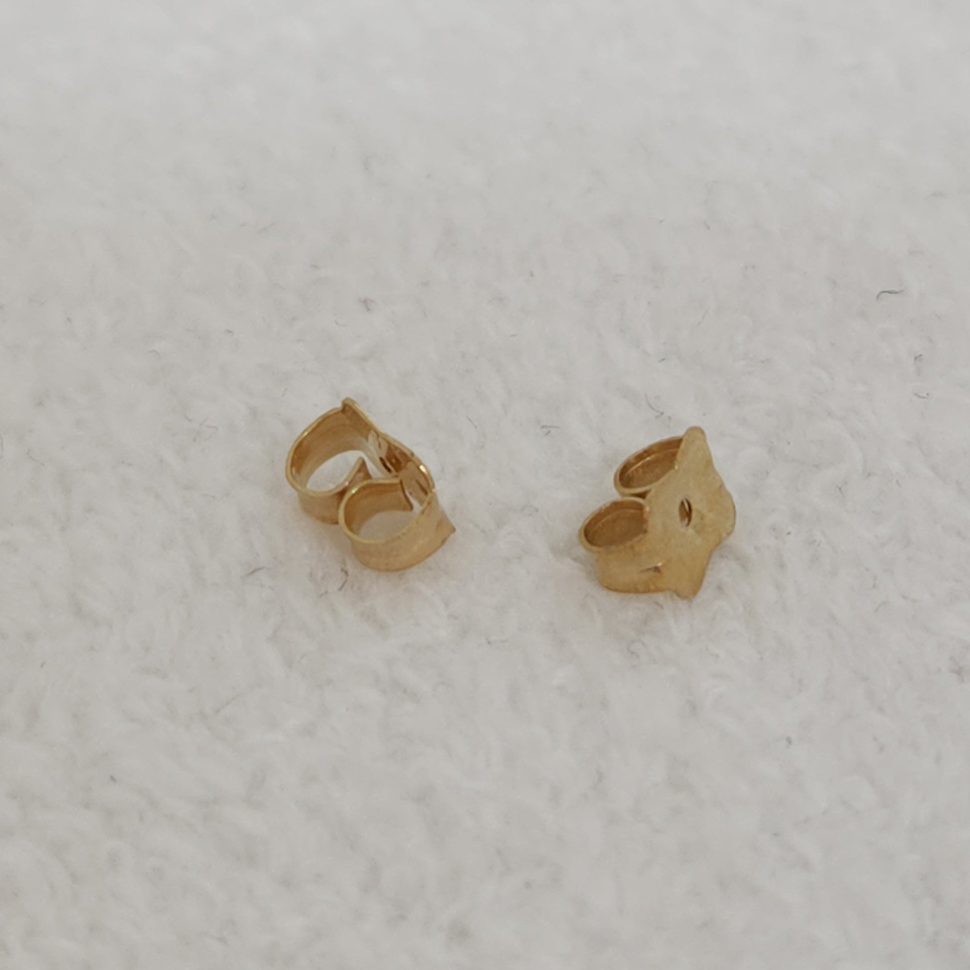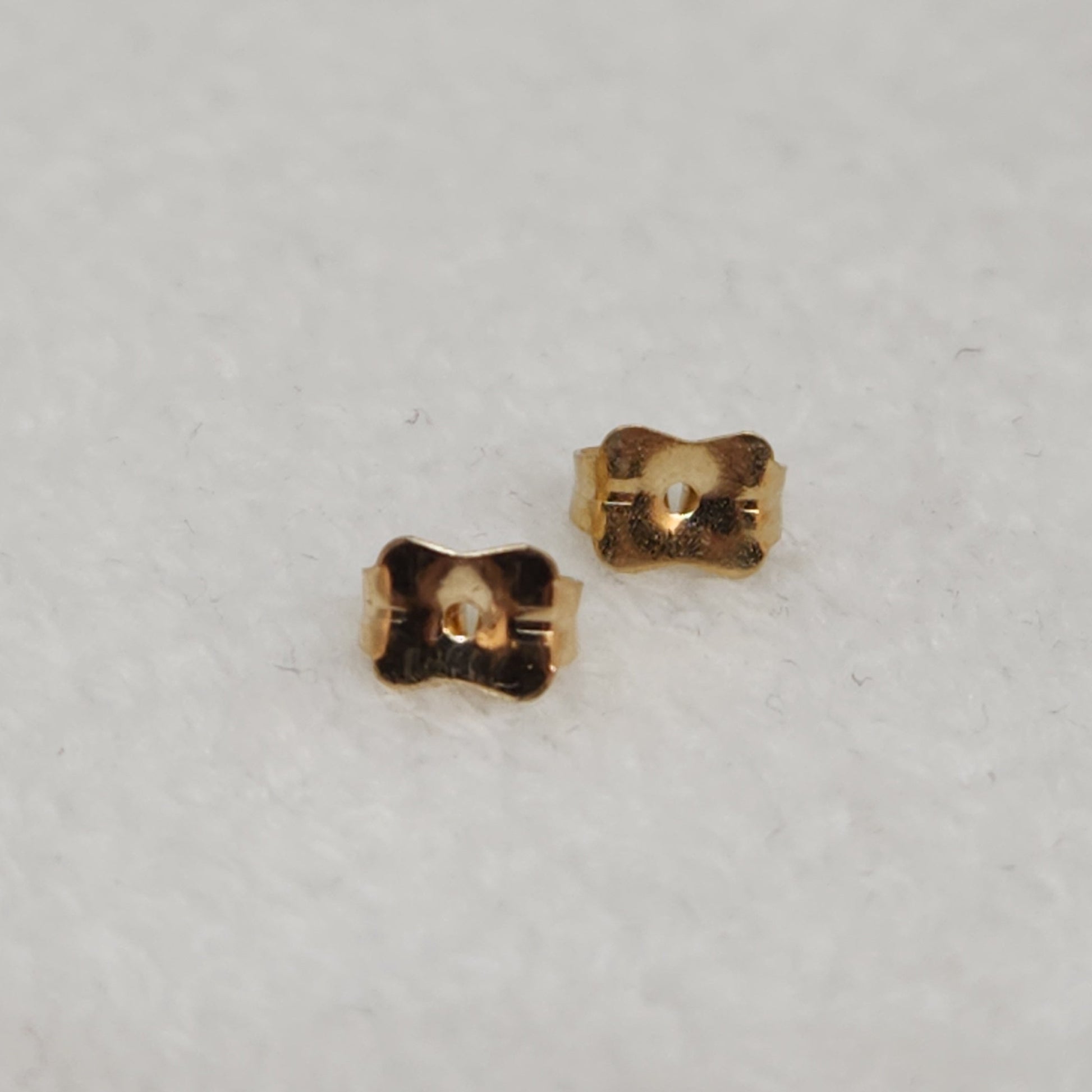 Such a teeny tiny but necessary item in our jewellery box. Here is a matched set of 14k butterfly backings that can be used to replace any that may have gone missing from your jewellery box over the years.