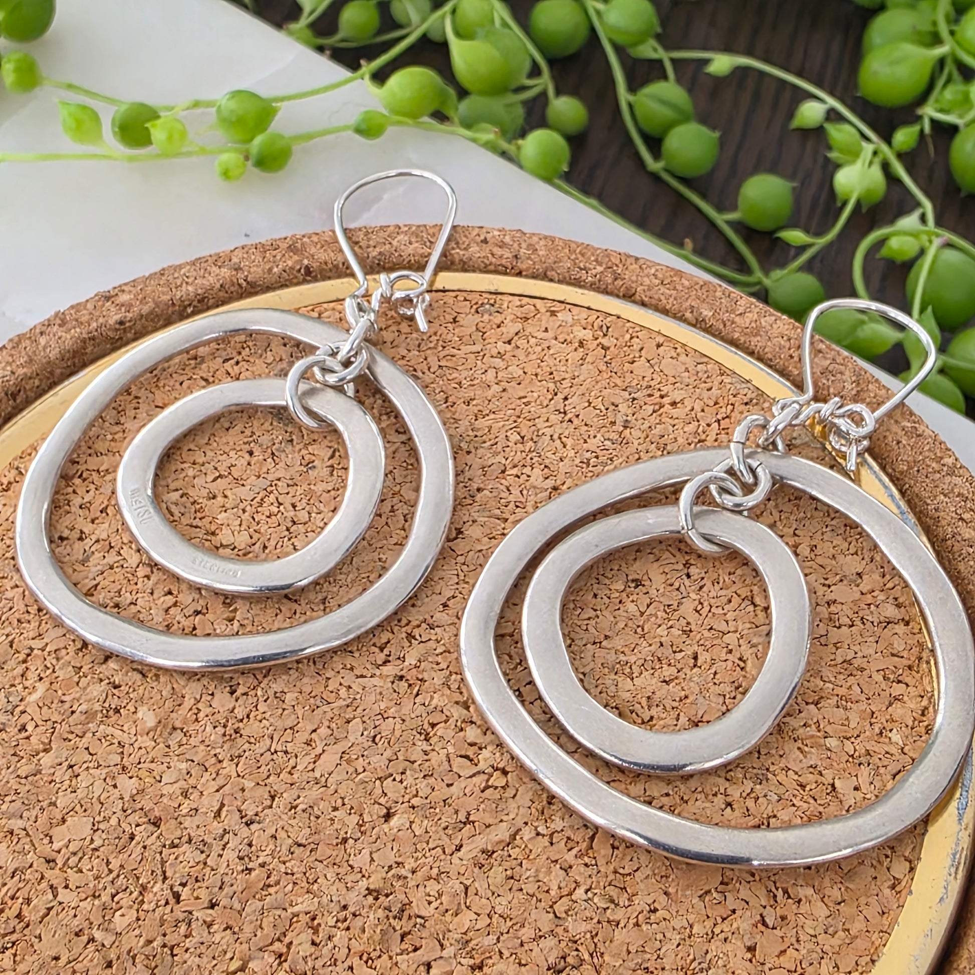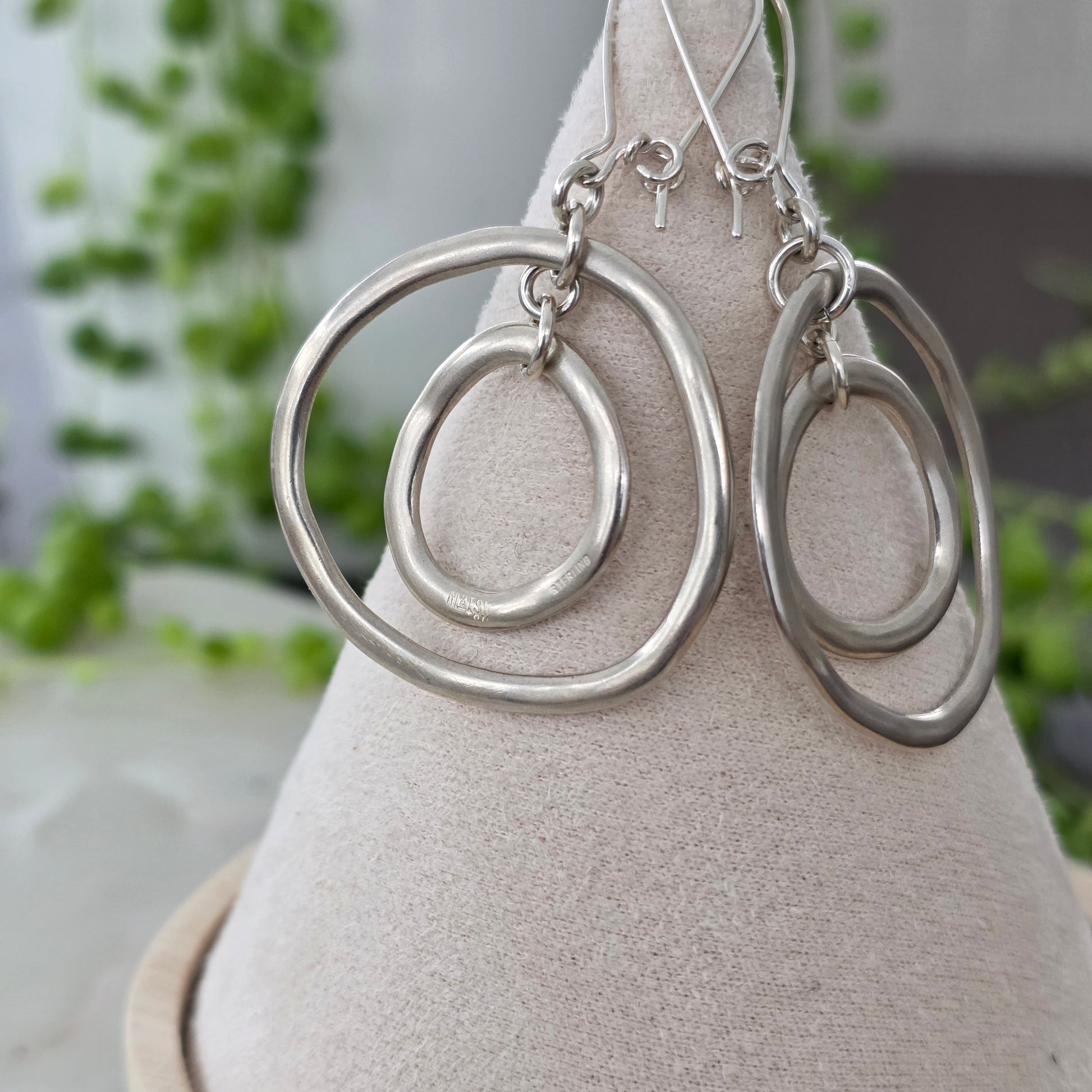 Celebrating organic form, these earrings dangle beautifully and have a brushed finish that really highlights the handmade texture.
