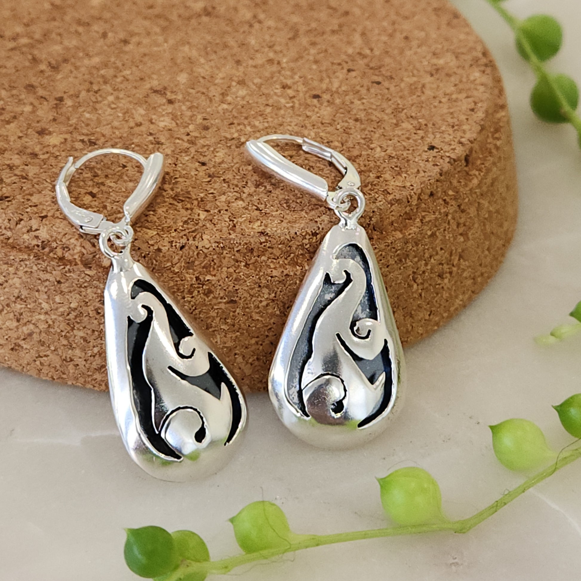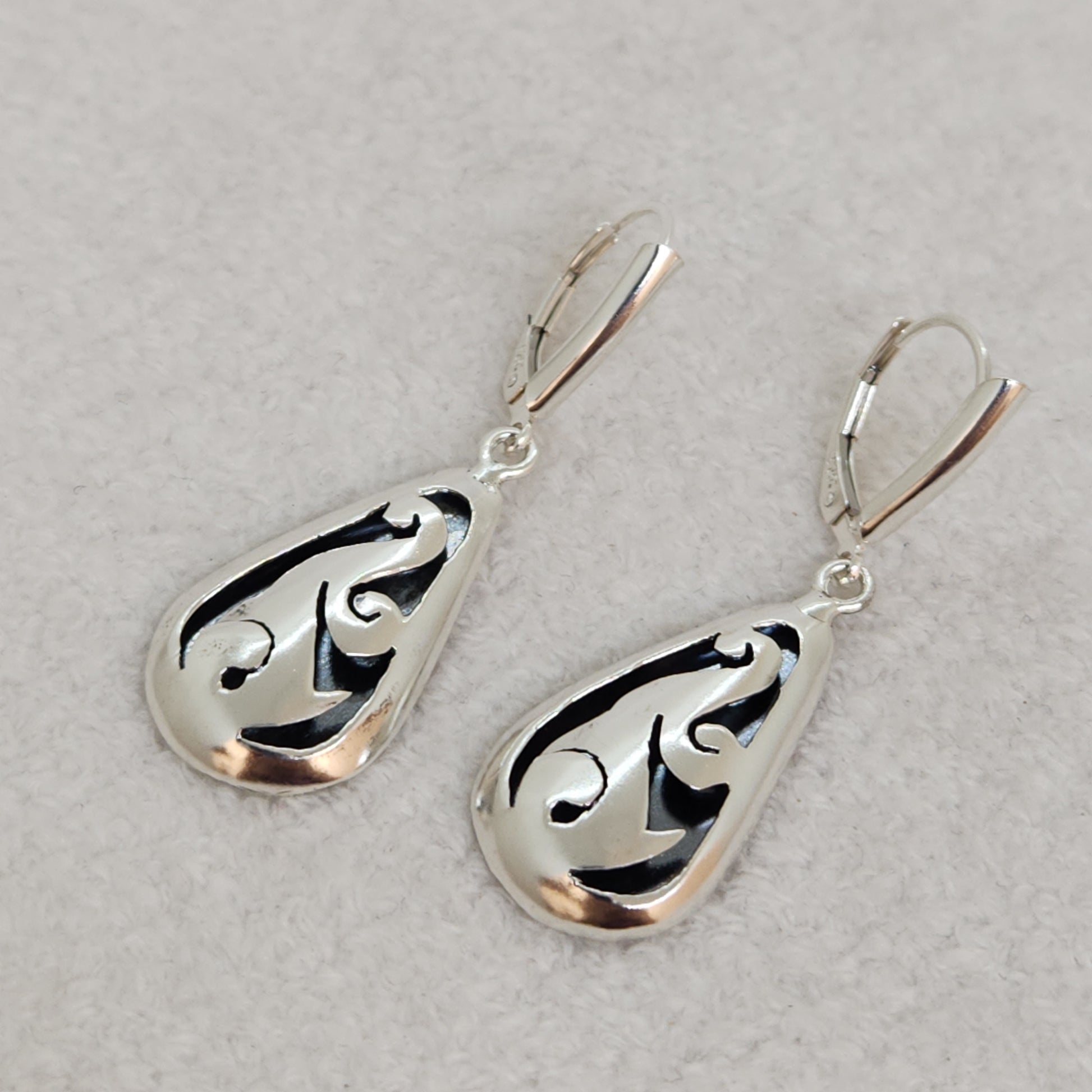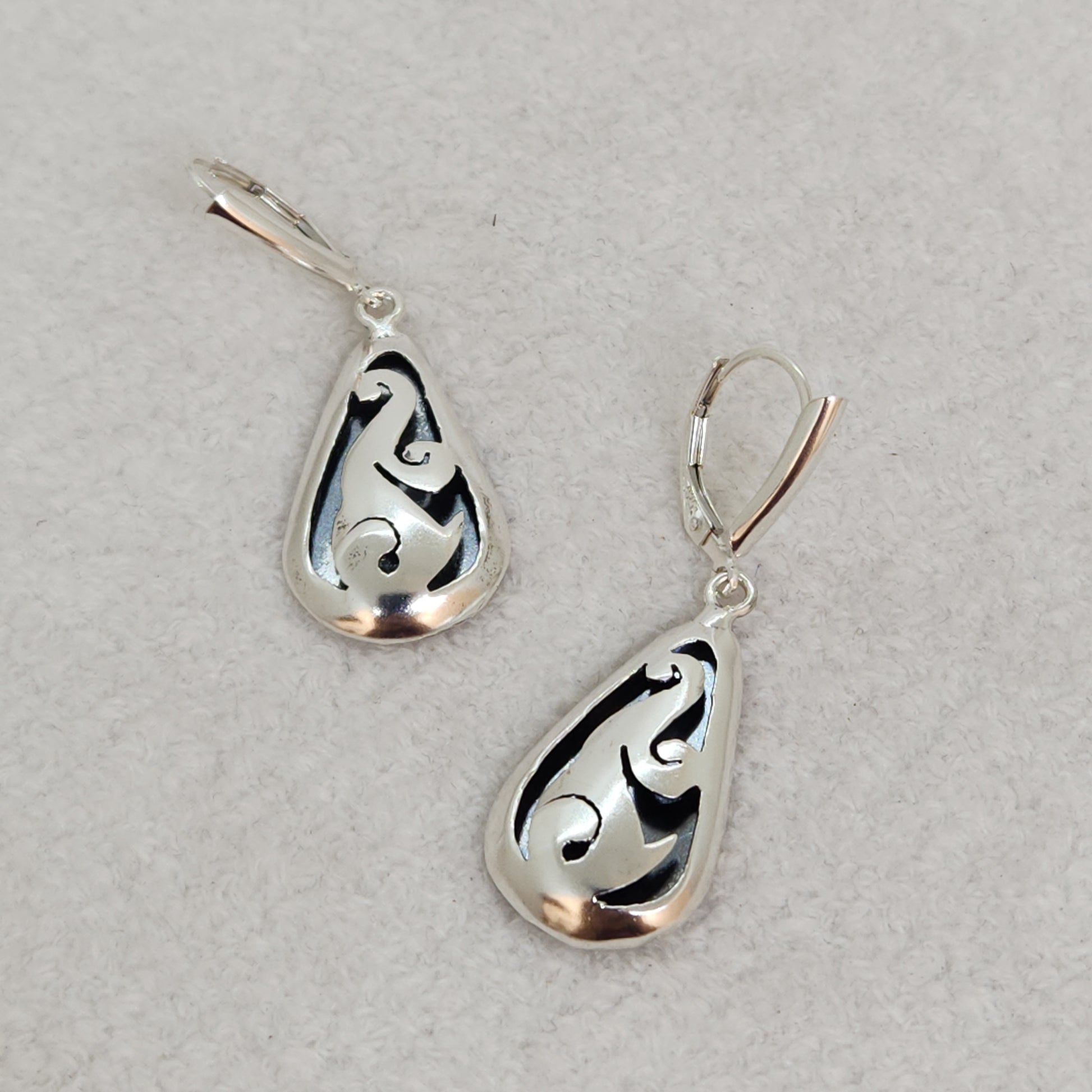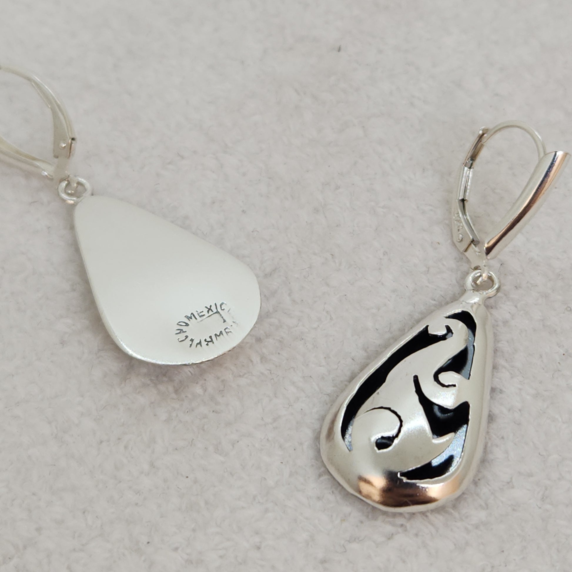 Handmade in Mexico, these showcase the art of fabricating a handmade piece. First a silver sheet is formed into a dome, then the design is hand pierced into it. We can even see little marks from the teeth of the very fine sawblade! Then the top dome is soldered to the flat back sheet. The interior has a natural dark patina, all adding to their beauty.