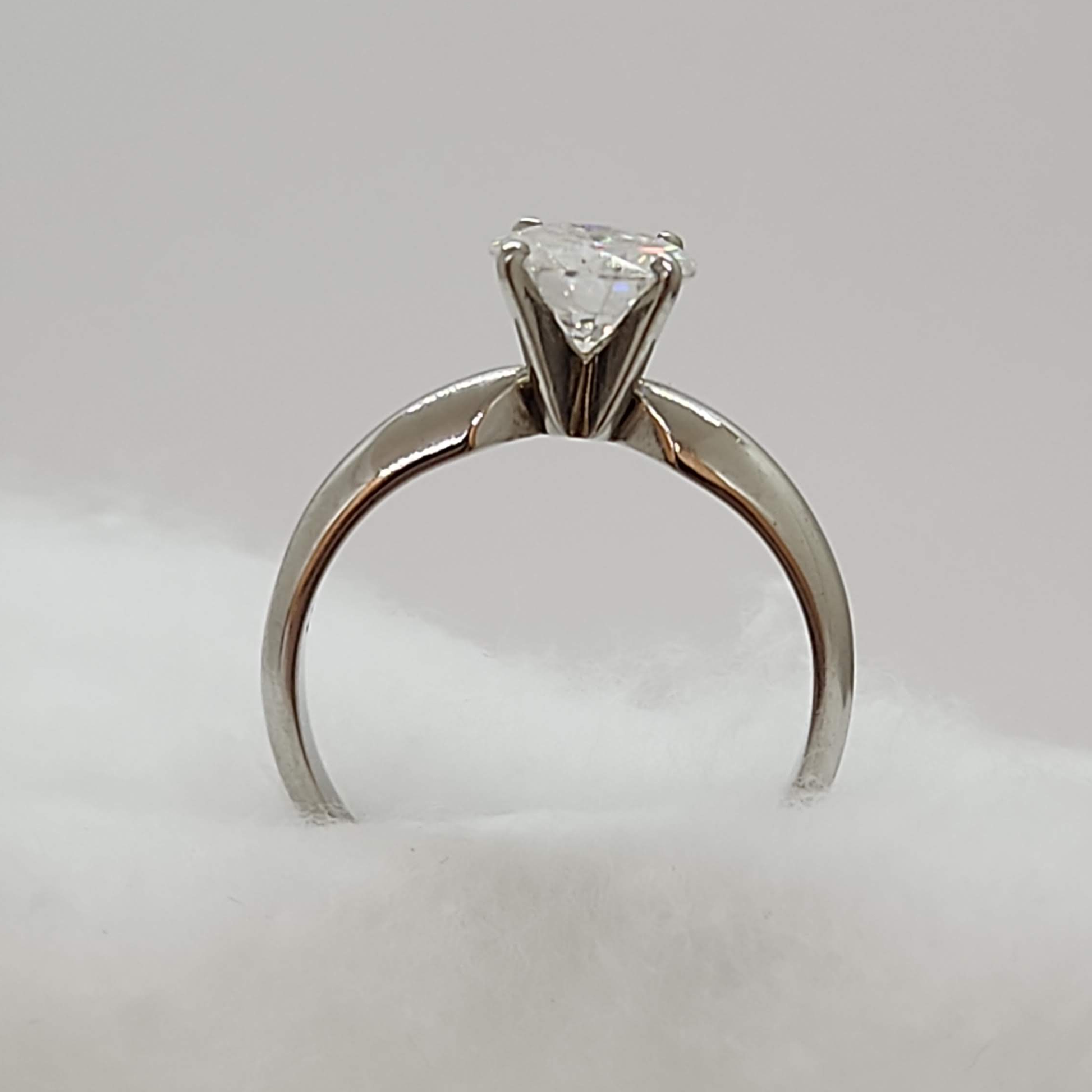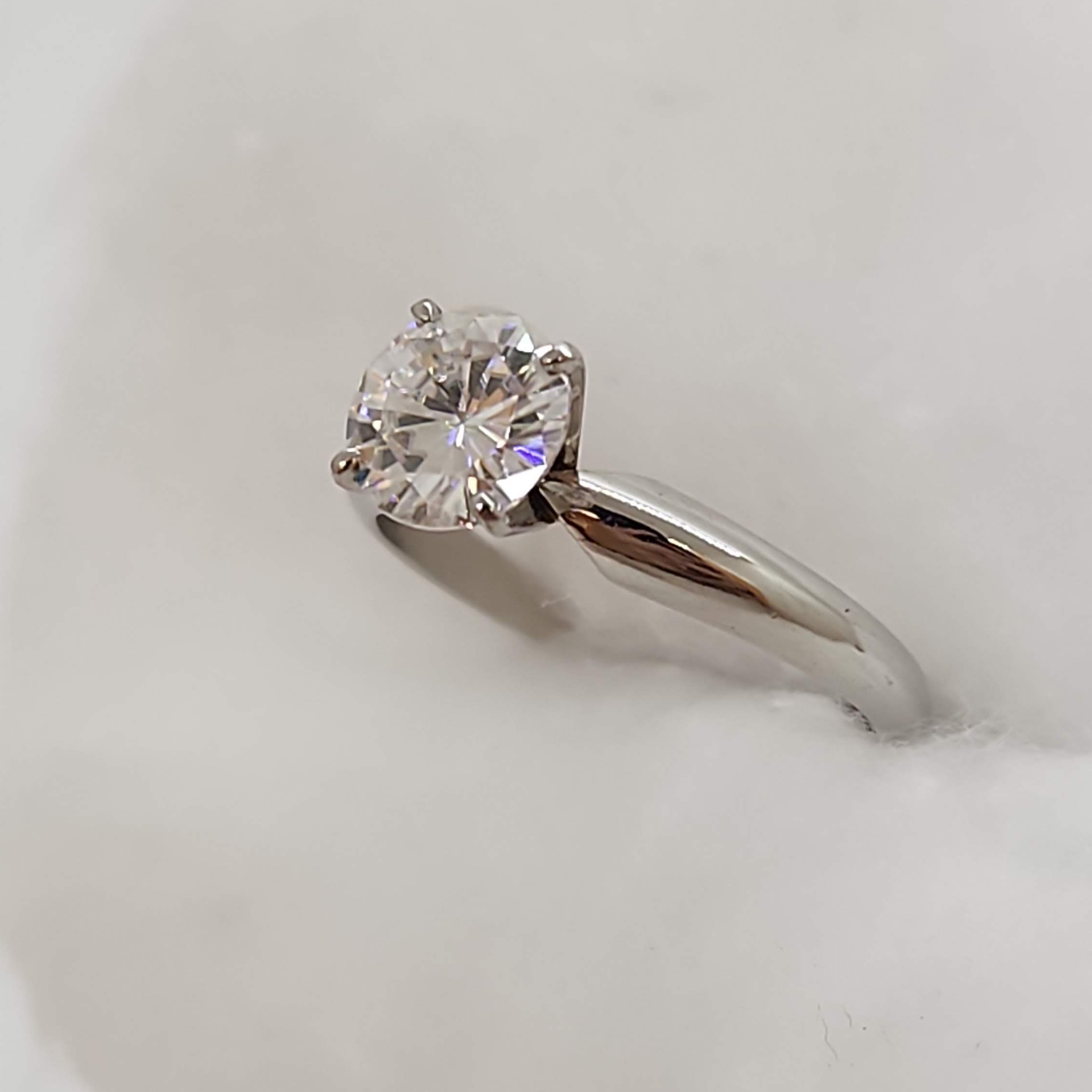 If you would prefer not to have a diamond, join the moissanite club! Moissanite is unique from diamonds because it's Refractive Index is higher, it reflects more light. Moissanite is also less likely to attract dirt and grime than a diamond and stays more brilliant between cleanings. Moissanite was first discovered in Arizona in 1893 by Noble Prize winning French scientist Henri Moissan. His first sample of Moissanite (named after himself) was found inside of a meteorite crater. While he initially thought he had found a diamond, he took his sample to the lab and discovered it was silicon carbide. Moissanite was born. This is a classic solitaire design that suits any hand.