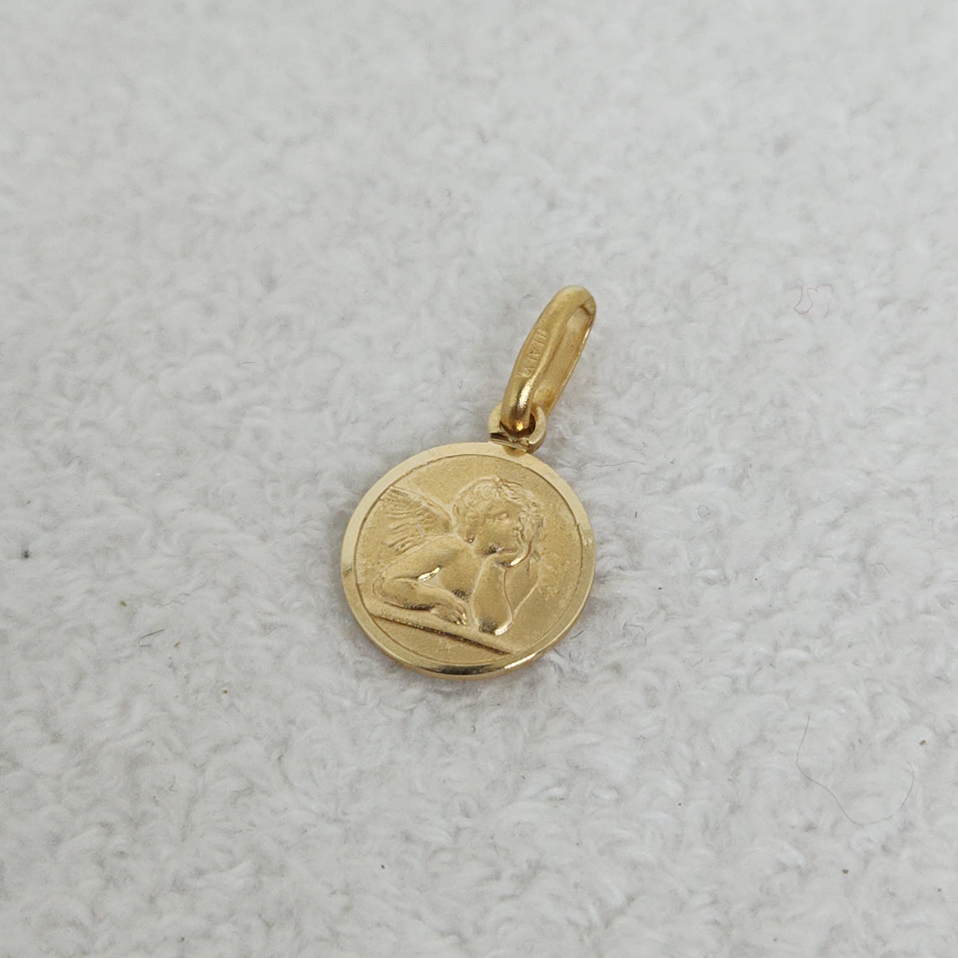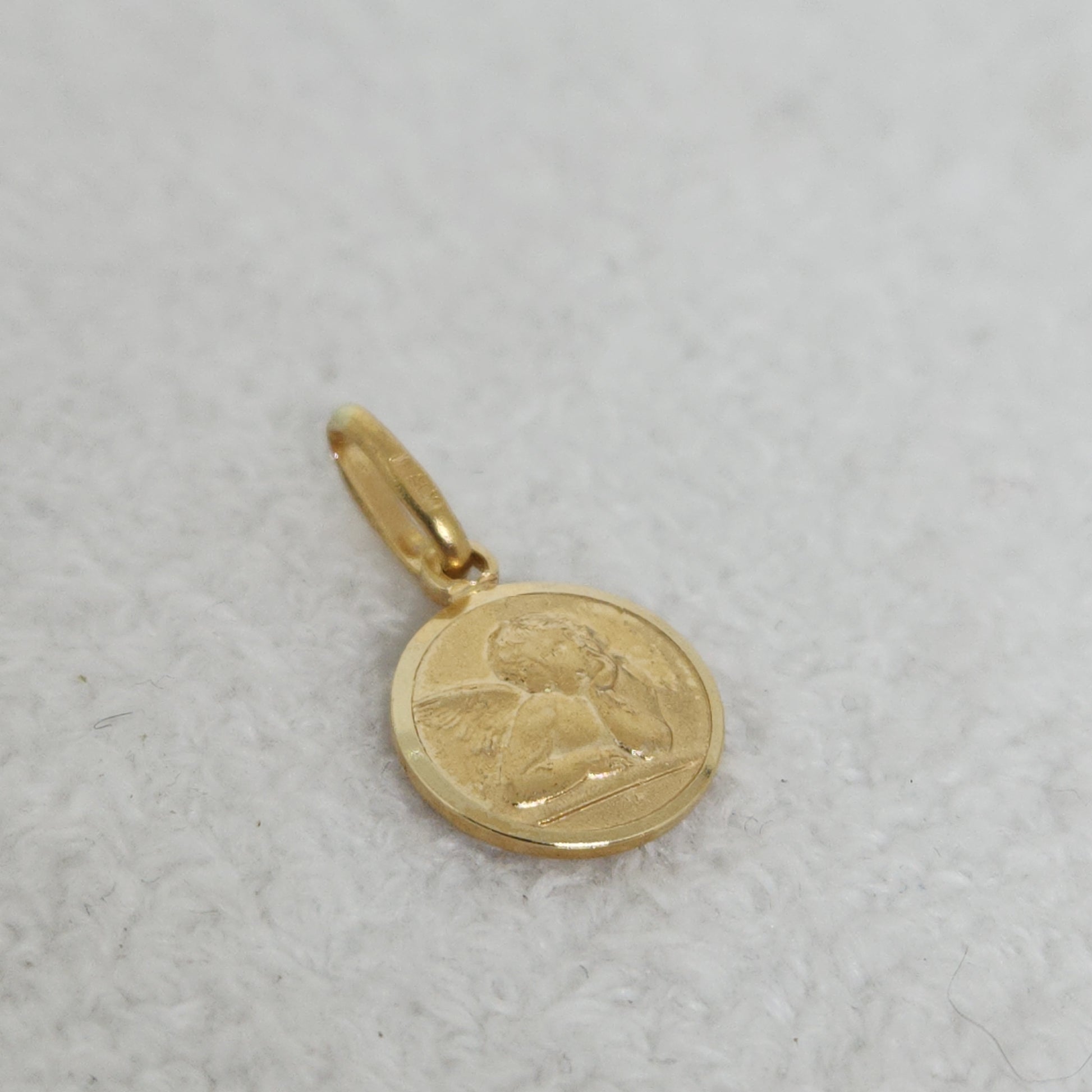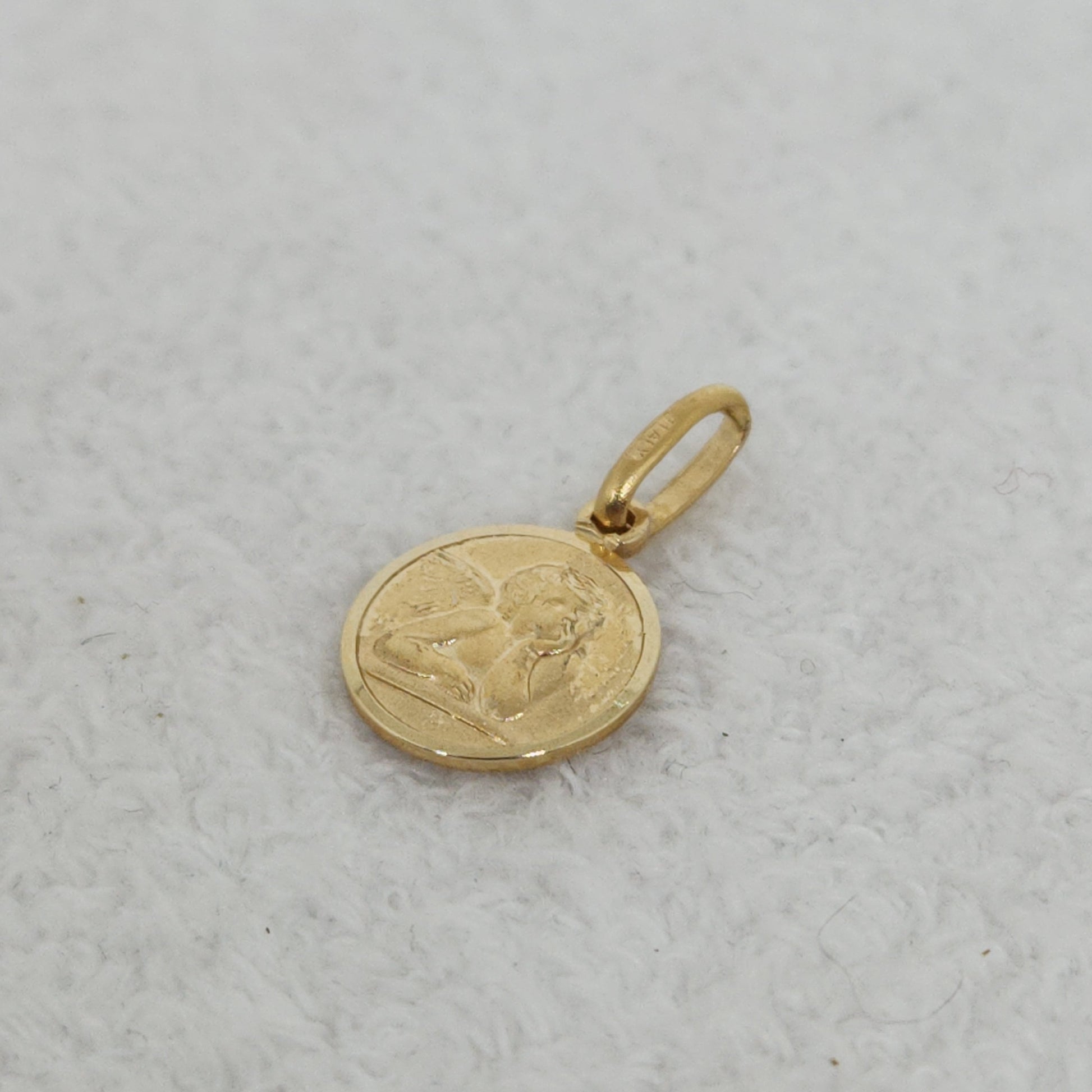 A tiny golden disc emblazoned with a simple angelic figure. A symbol of protection and guidance.