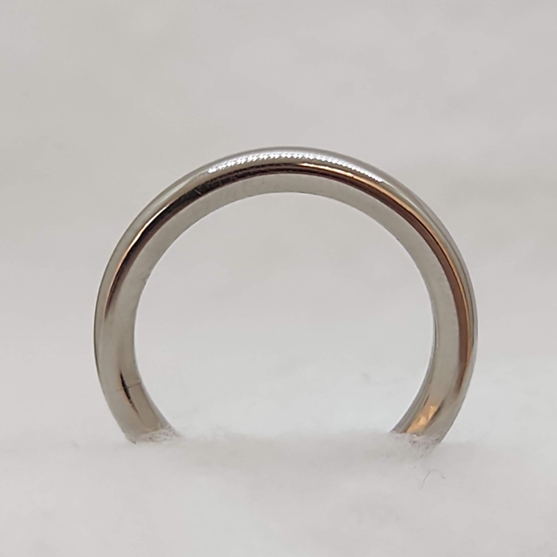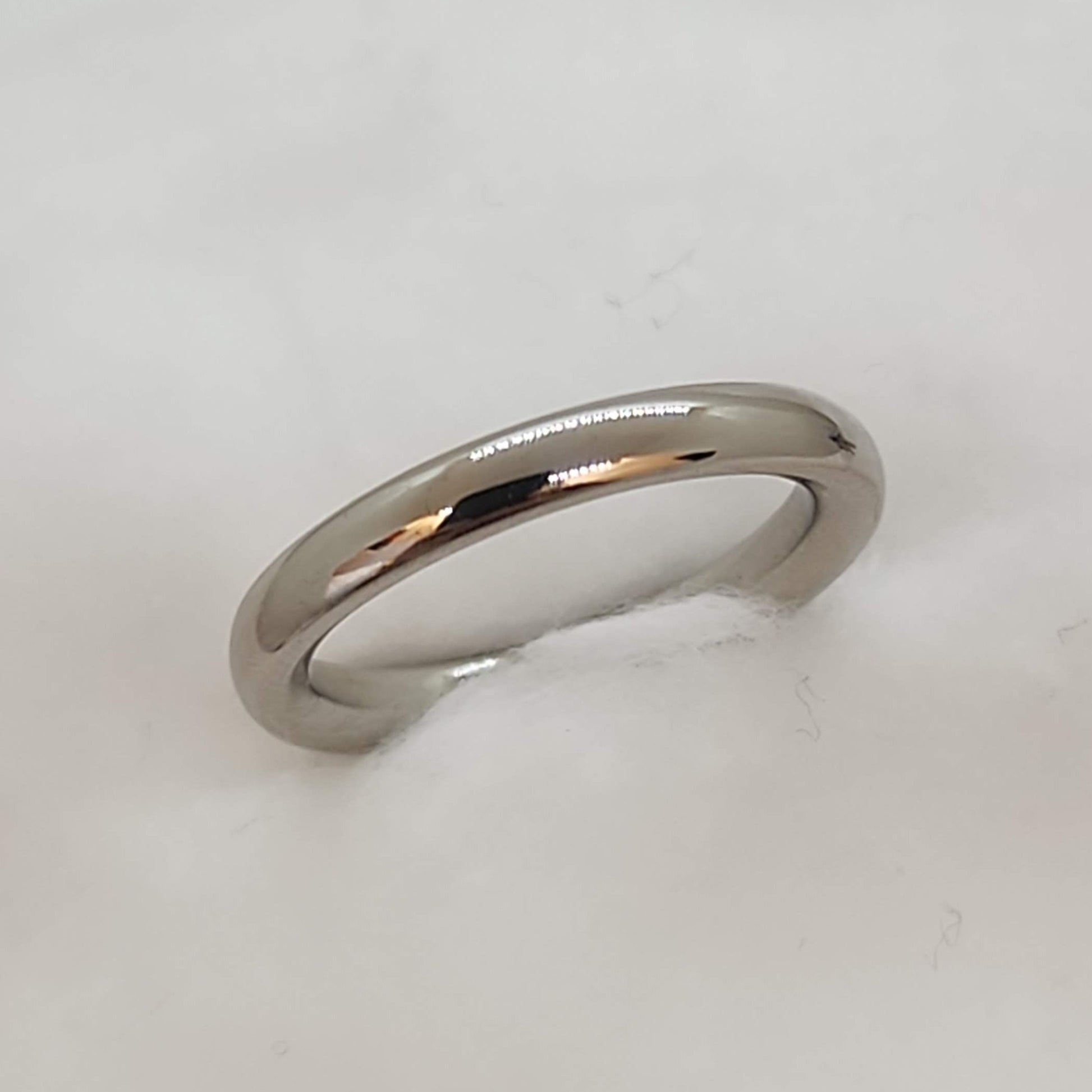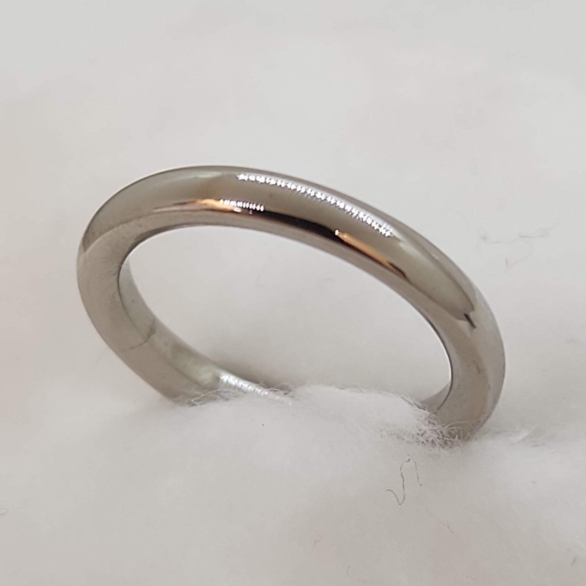 Palladium has been used in jewellery since the early 1900s. A naturally bright white metal just like platinum, what makes it unique to its more well-known cousin is that it is lighter and approximately 40% less dense. It makes an excellent environmentally friendly option as it's a by-product of mining platinum giving it effectively better environmental credentials that other metals because it's mining causes no further damage to the environment. It's a relatively rare metal, and is often recycled from other applications. This band has a shape that makes it very comfortable to wear. A deep comfort fit and at 2.19mm thick it's substantial, perfect on it's own or paired with another ring.
