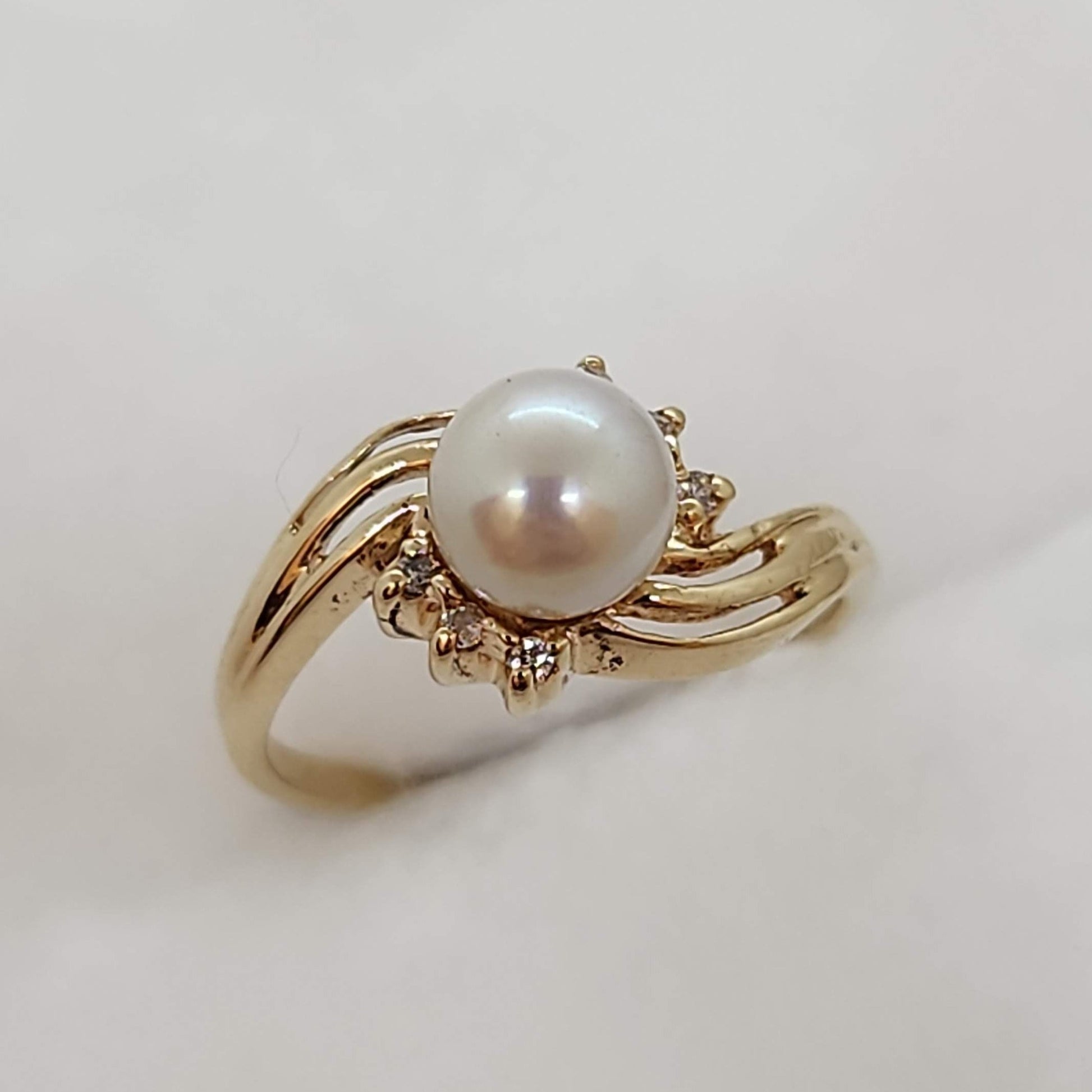 A delicate swirl leads the eye to this creamy pink pearl with beautiful lustre and diamonds for a little extra sparkle. This ring is made to fit the curves of your hand. Due to the delicate nature of pearl jewellery, this isn't suited for everyday wear, although it's a perfect addition to a special outing or a low key day at home. This would be a lovely June birthstone ring.