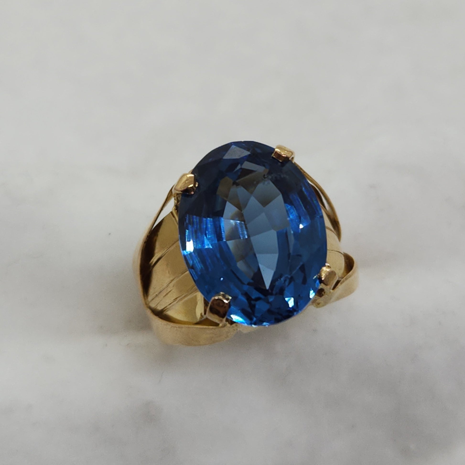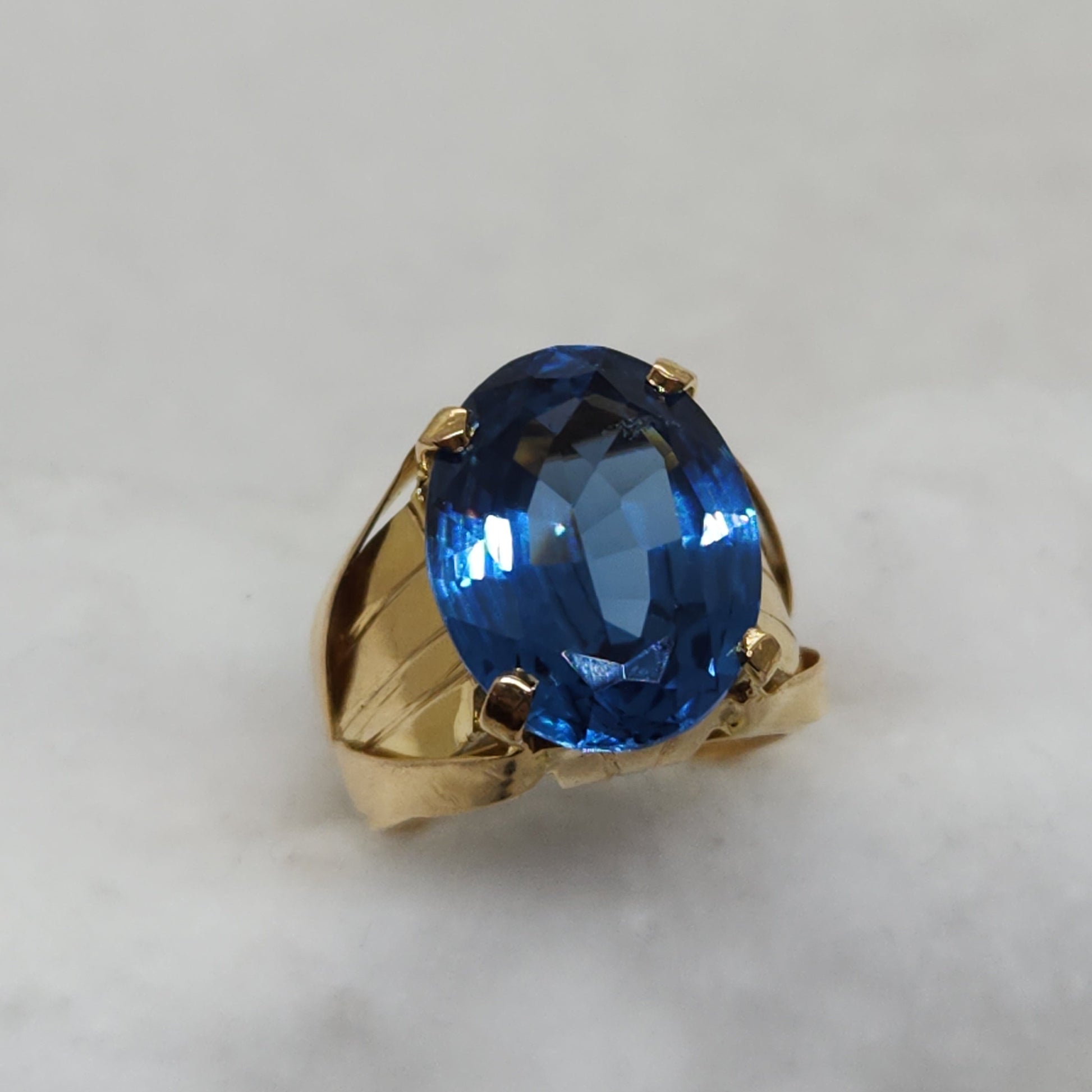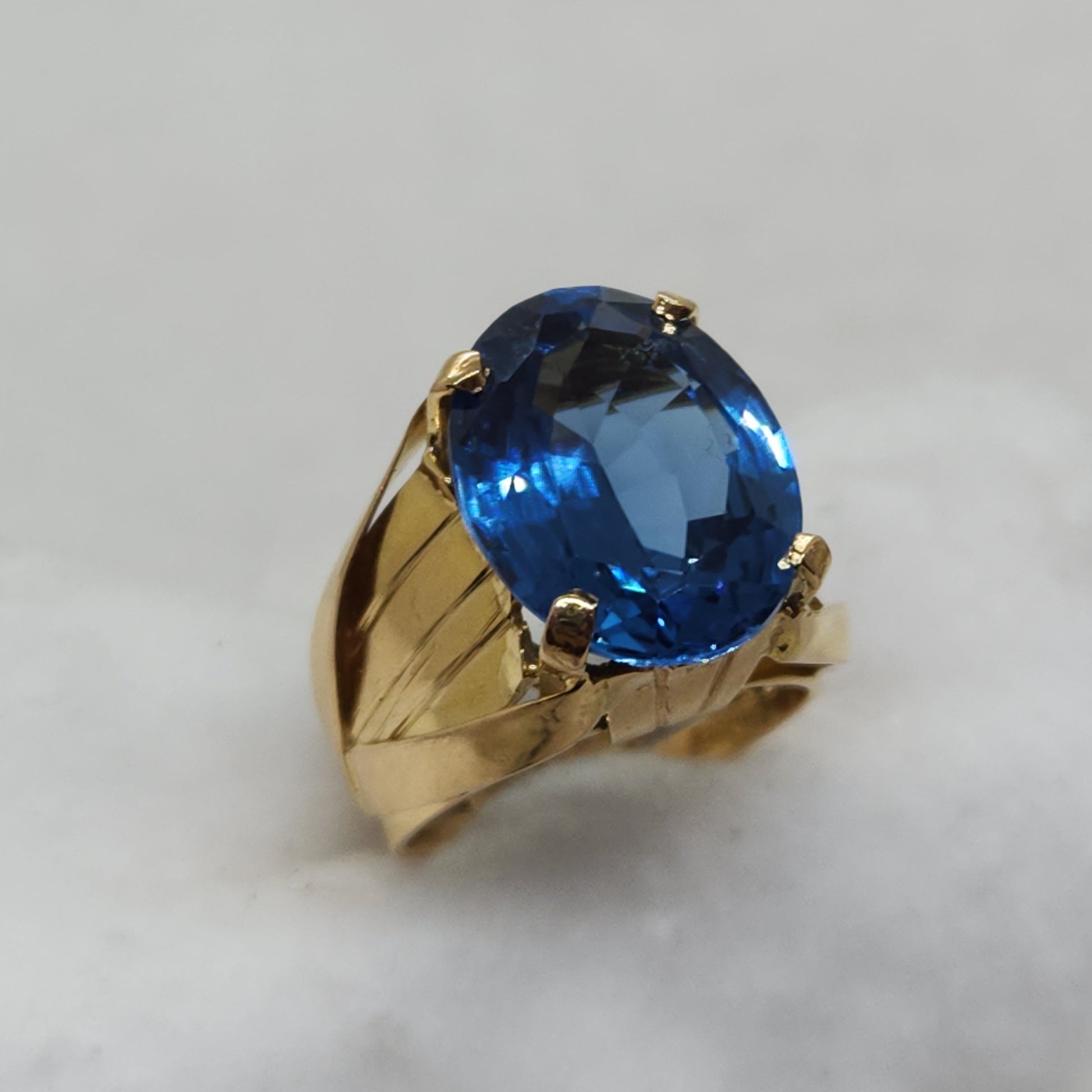This shade of blue, referred to as London Blue, holds the deepest most saturated colour of all the blue topaz varieties. Handcrafted, each component of this ring was made by hand and soldered together. The fascination with topaz gemstones dates back to ancient civilizations. Referenced in the Bible and early Sanskrit texts, it was esteemed just as highly as sapphires and rubies in those times. This ring was made in Egypt.
