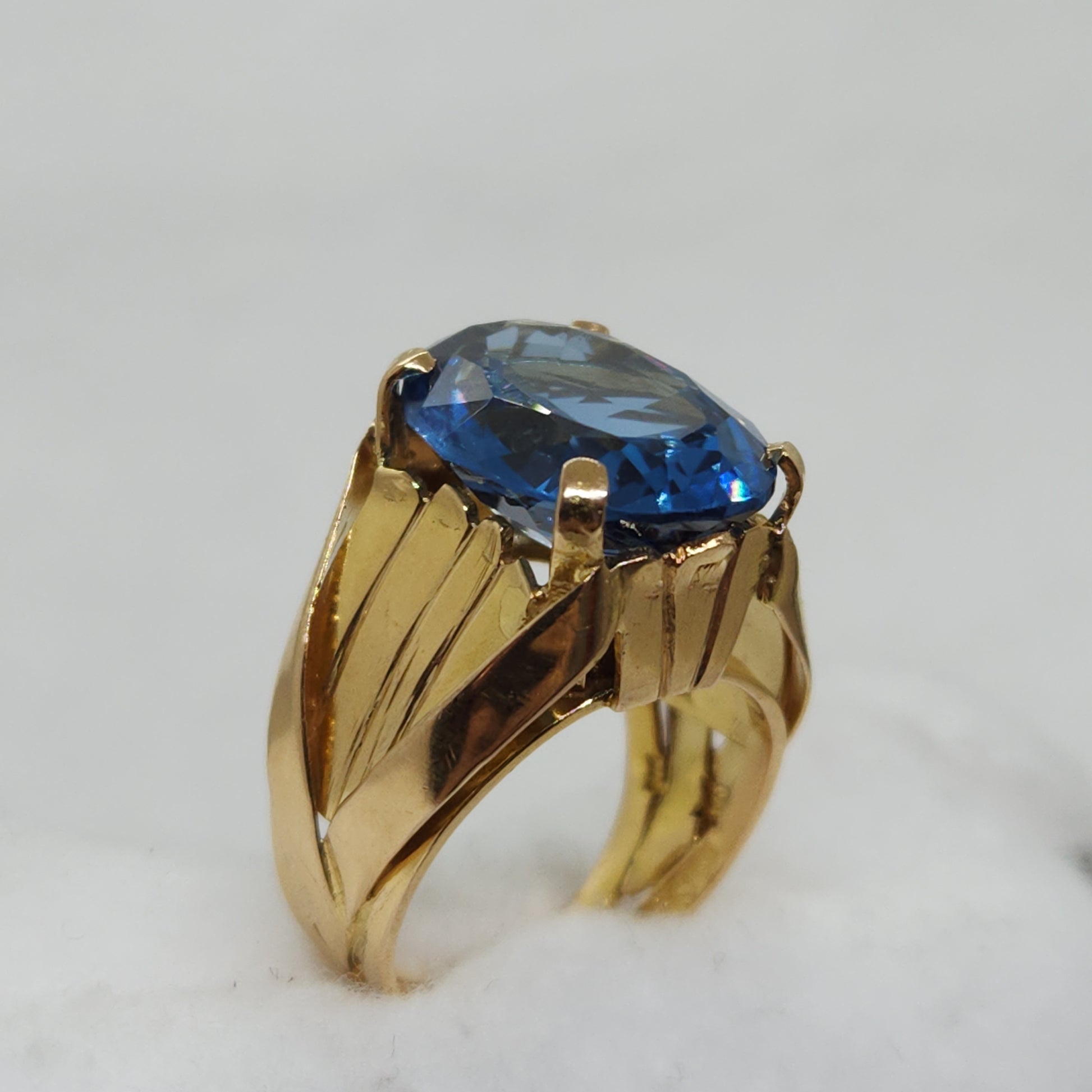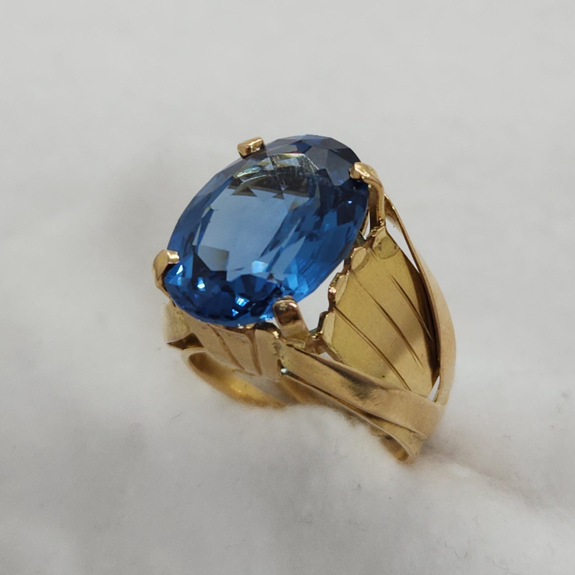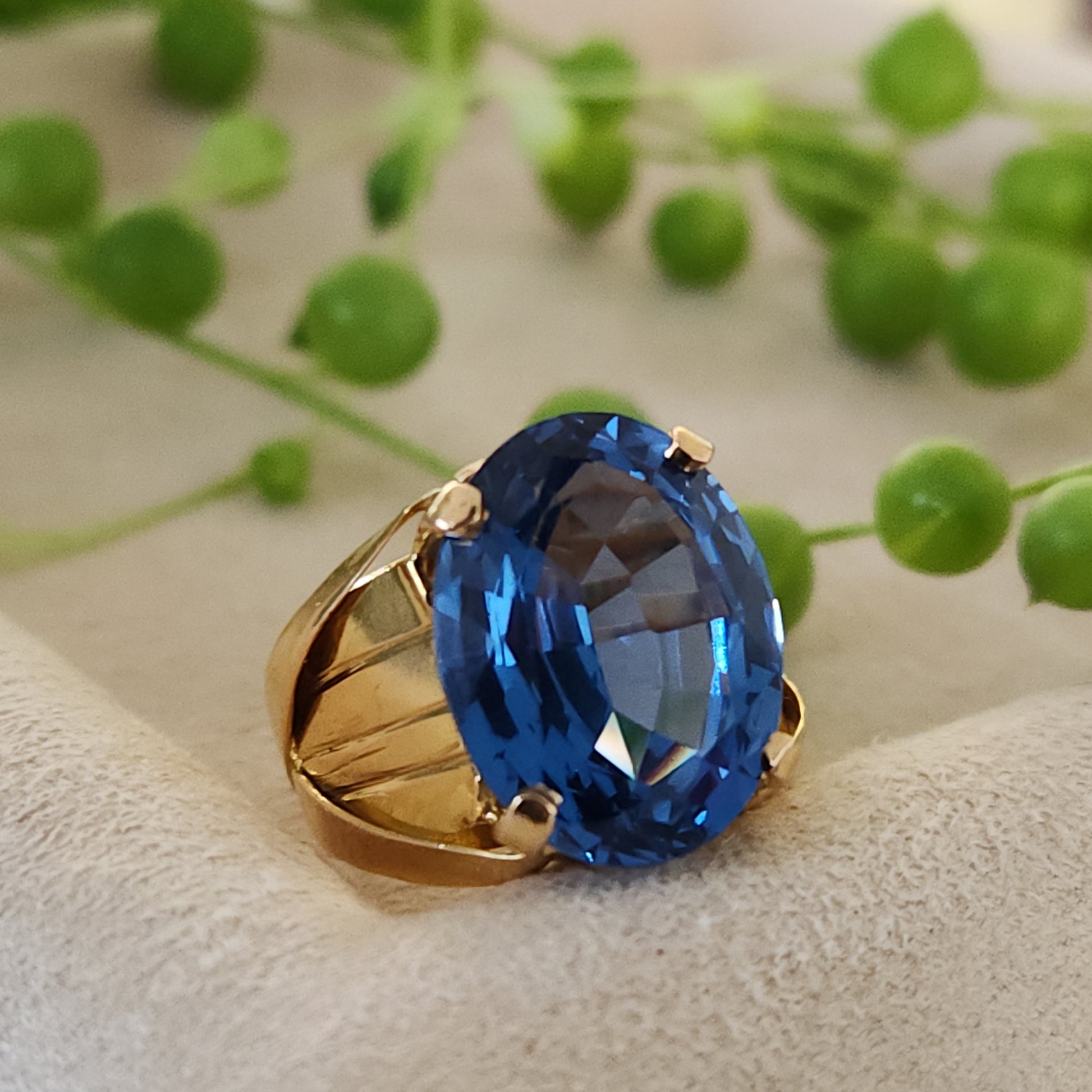 This shade of blue, referred to as London Blue, holds the deepest most saturated colour of all the blue topaz varieties. Handcrafted, each component of this ring was made by hand and soldered together. The fascination with topaz gemstones dates back to ancient civilizations. Referenced in the Bible and early Sanskrit texts, it was esteemed just as highly as sapphires and rubies in those times. This ring was made in Egypt.