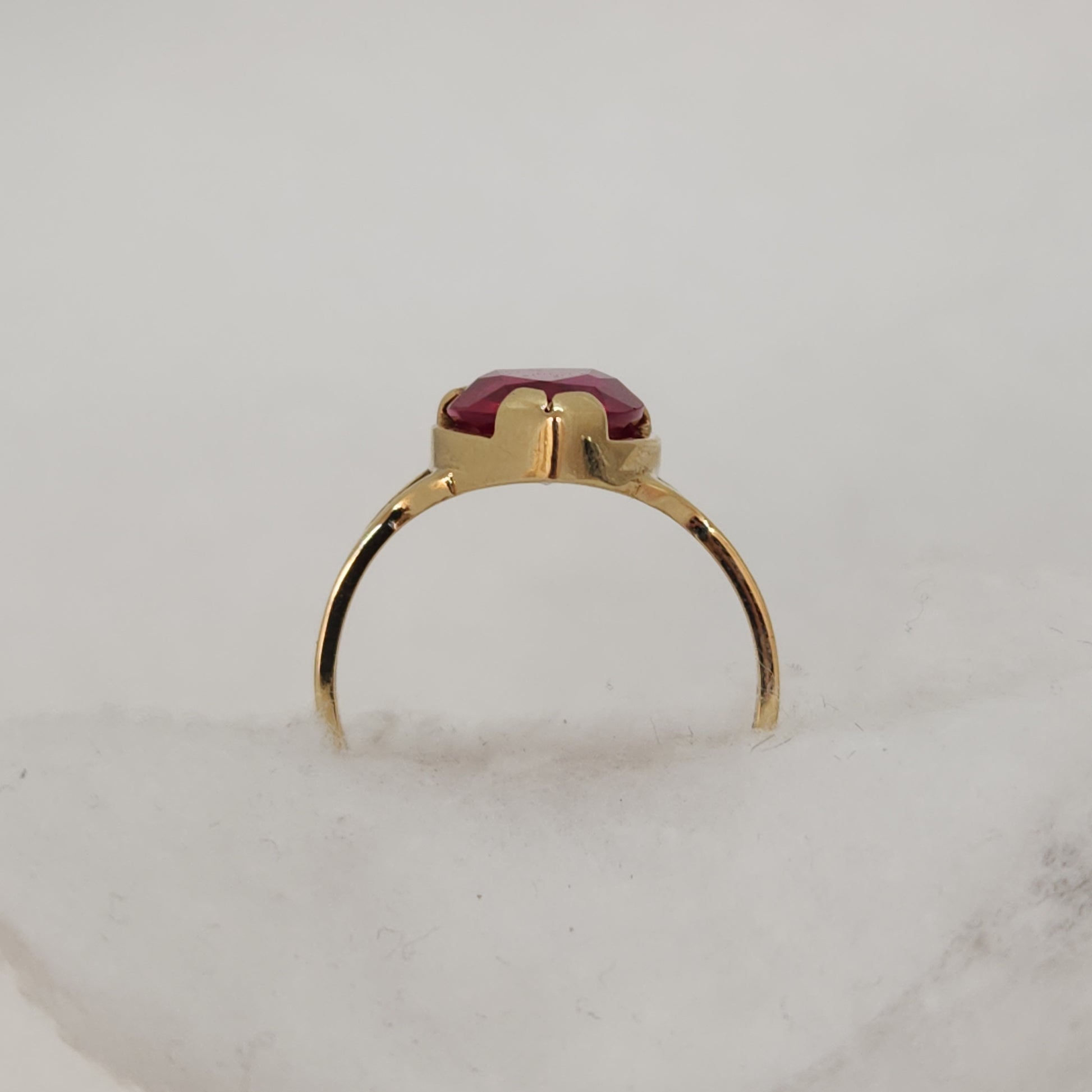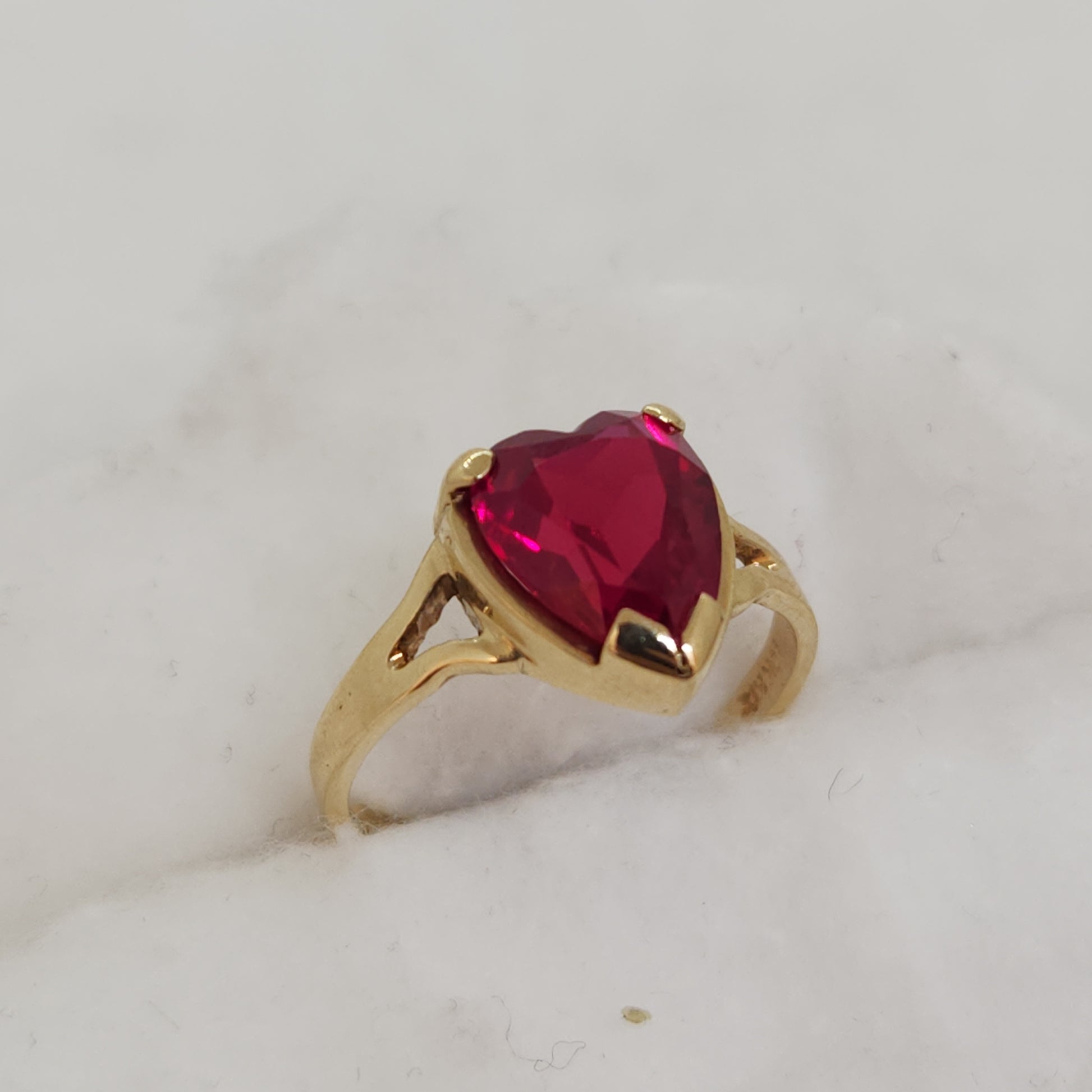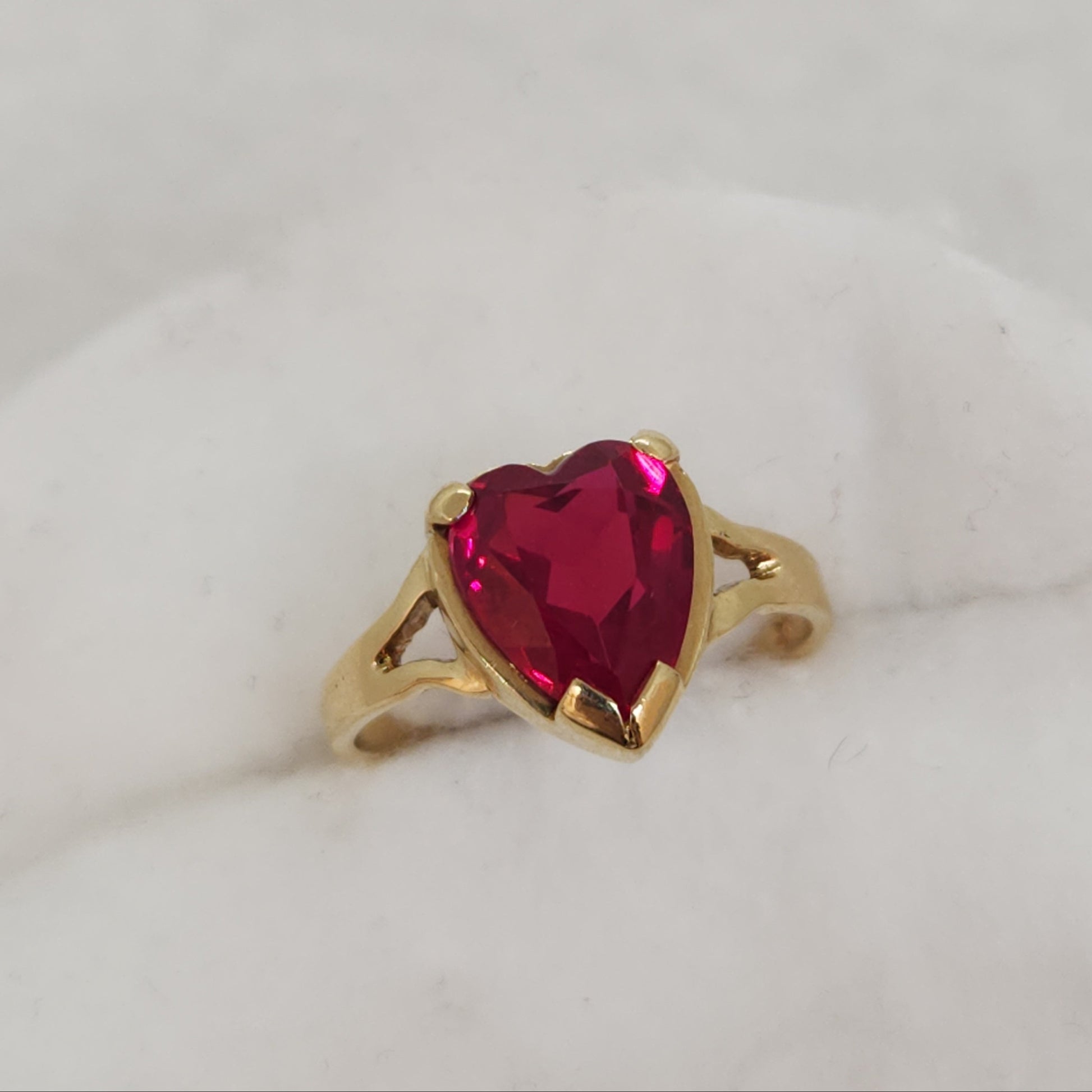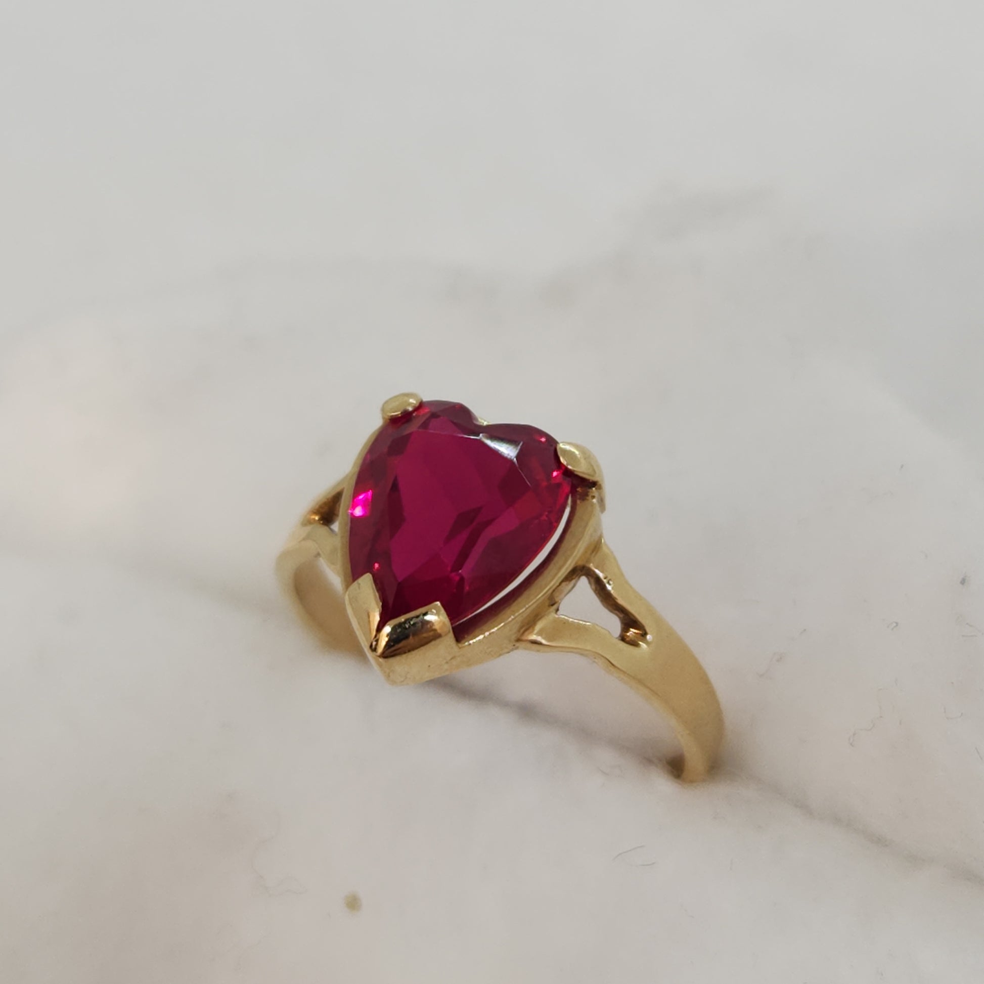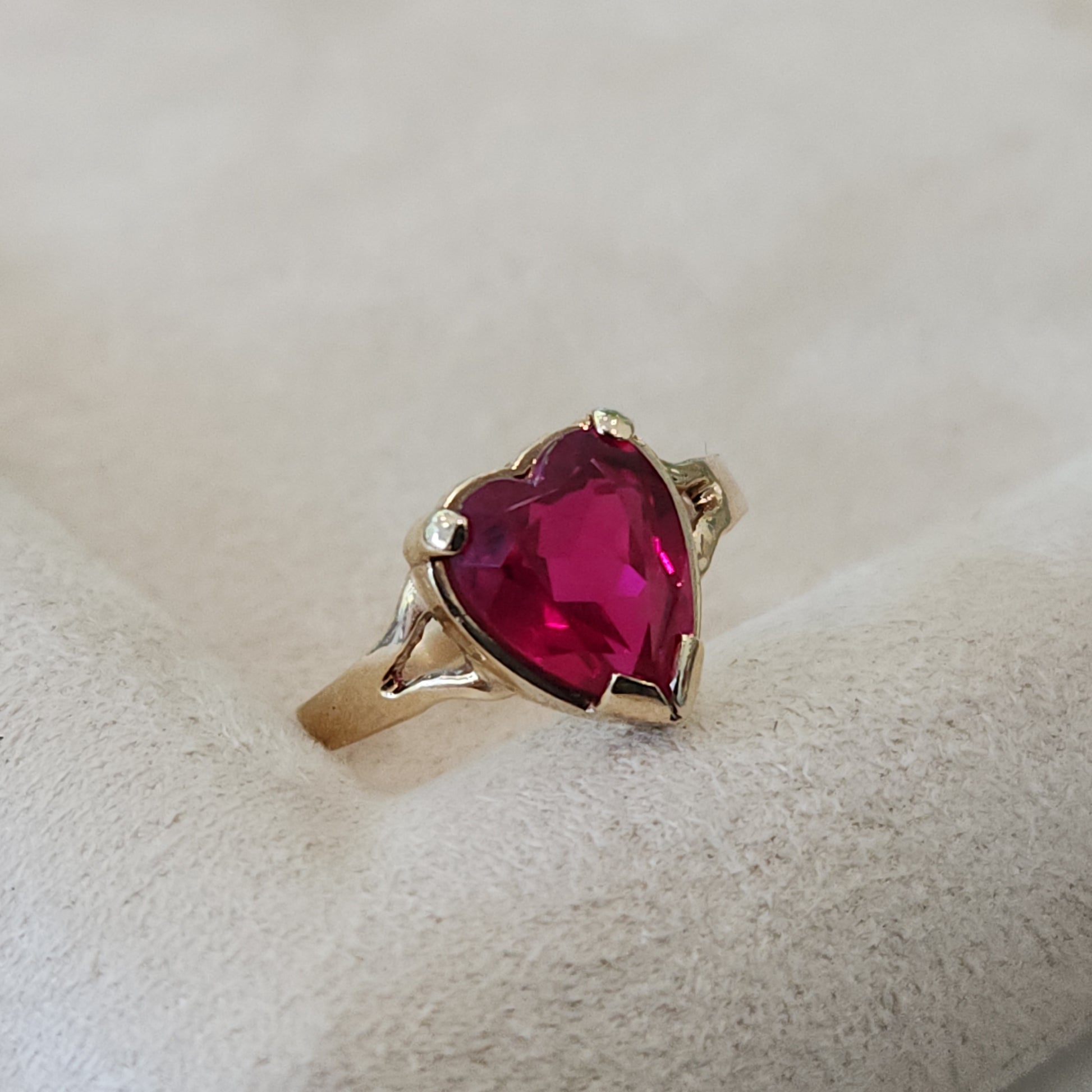 A vibrant pinkish red spinel cut into the shape of a heart. If you wear your heart on your sleeve, you can now also wear it on your finger!
