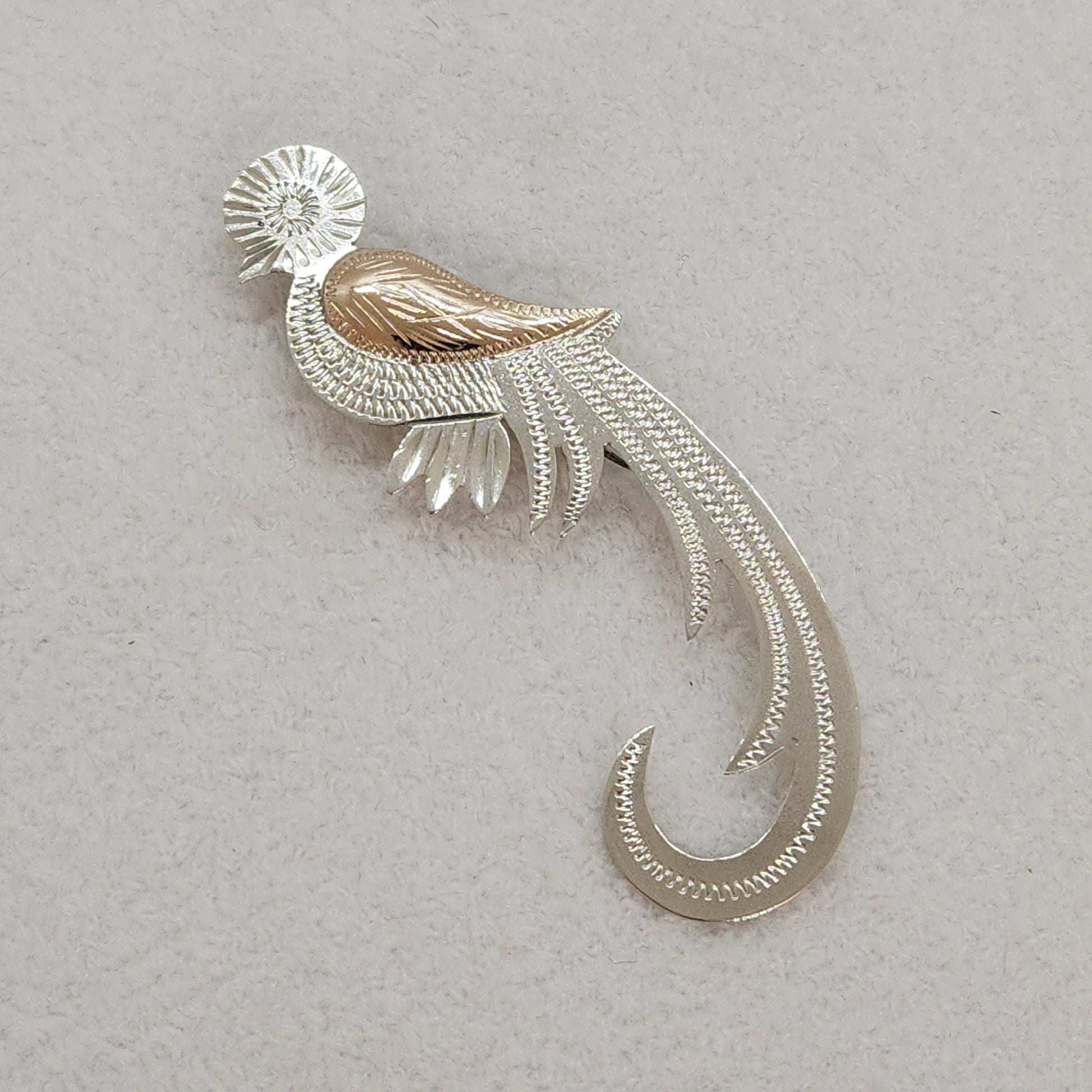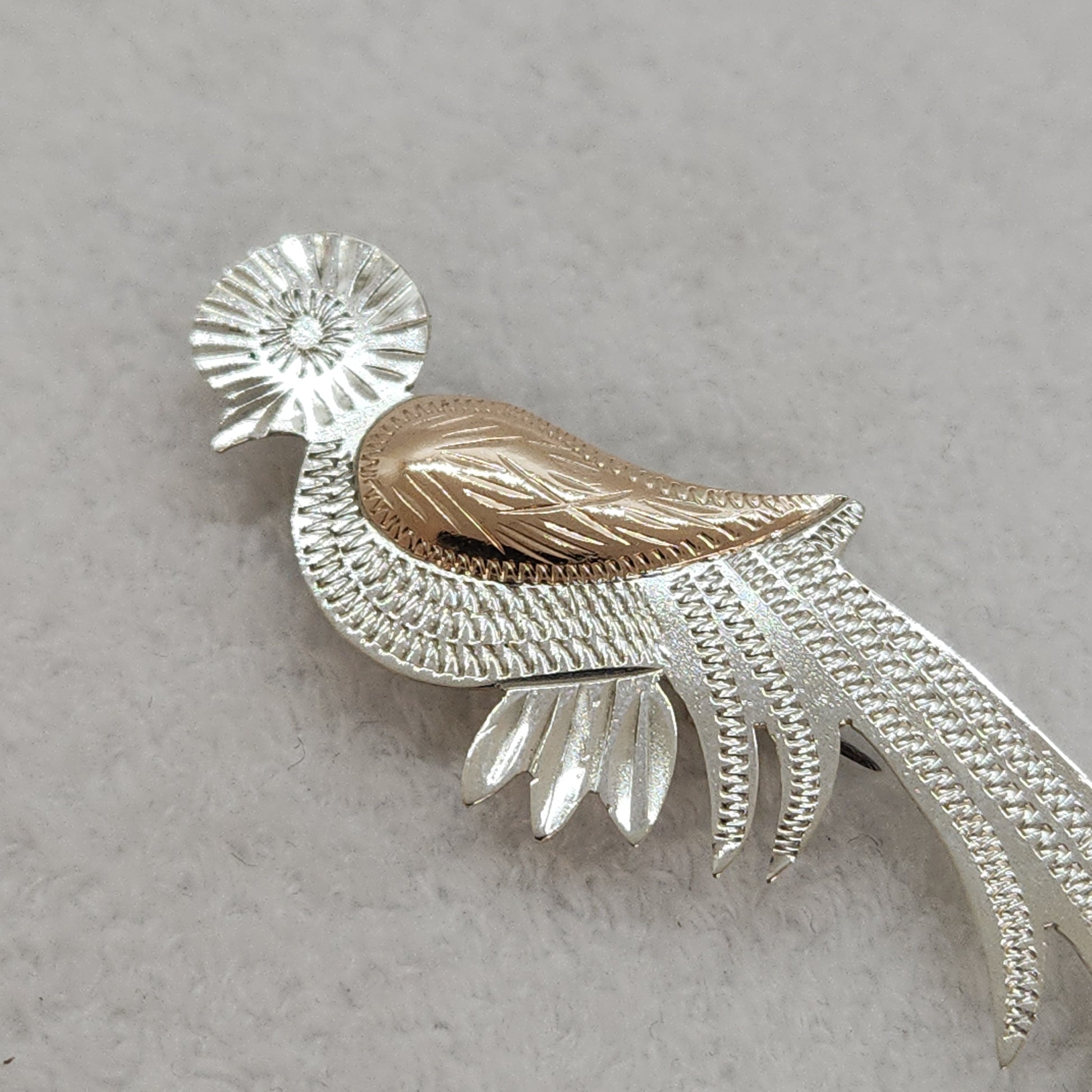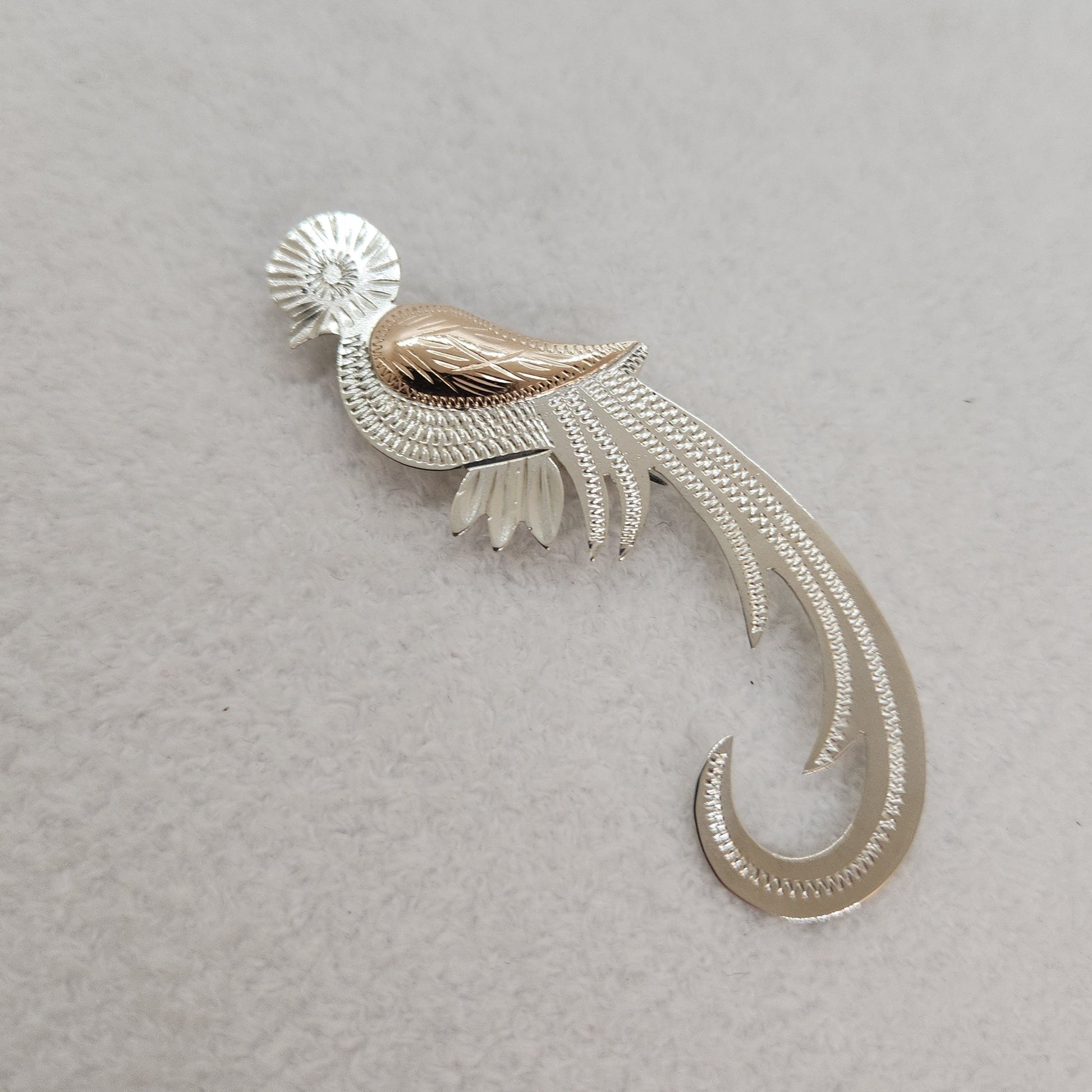 Worshipped by Mayas and Aztecs, the Quetzal is the symbol of Guatemala. This symbolism is not accidental: the local tradition considers it a symbol of freedom because it was believed that it preferred to die of hunger rather than to live as a prisoner. A striking and beautiful bird, equally striking as a brooch.