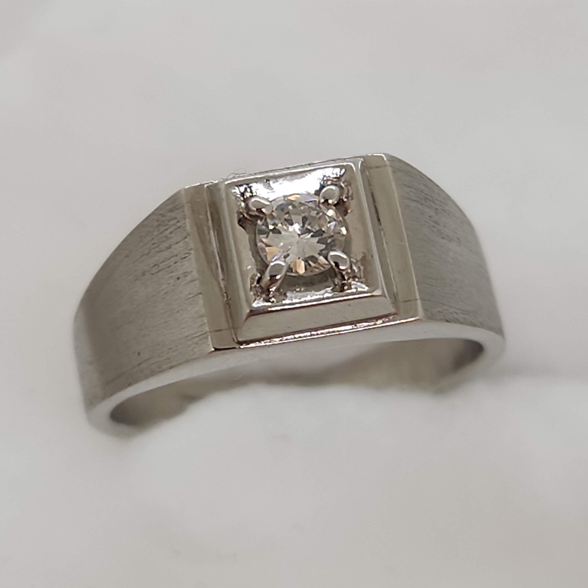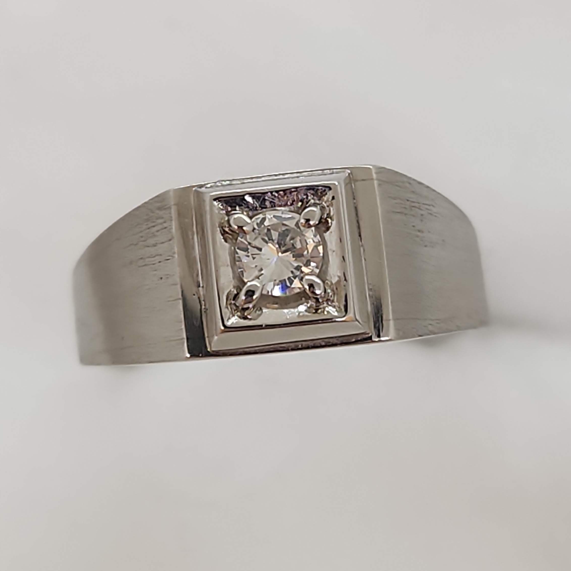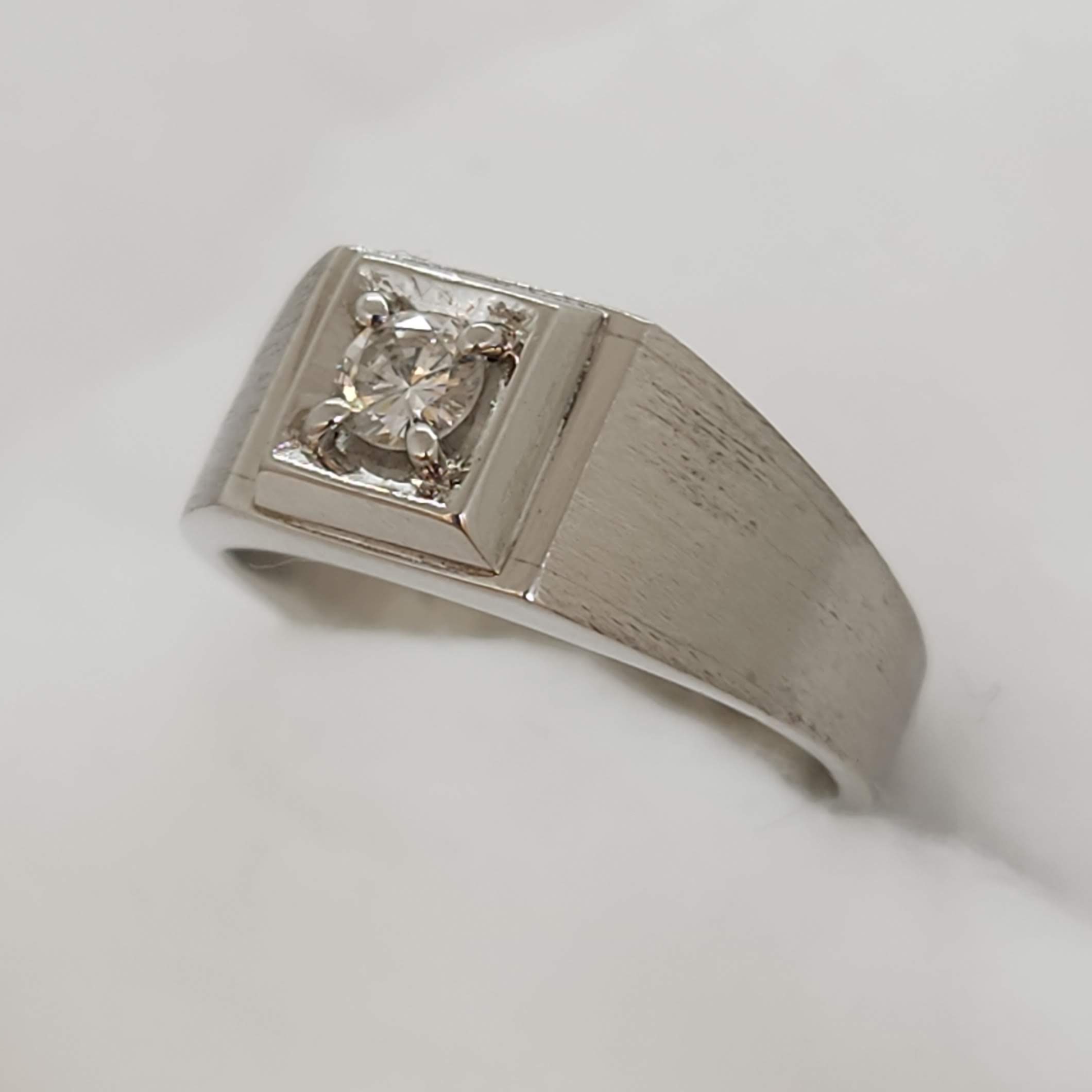 This setting makes a strong first impression! An absolutely timeless handmade platinum ring, finished with a brushed texture on the sides giving it a refined yet rugged feel. The history of this ring is it's hand assembled circa 1960-1980's, originating from Hong Kong.