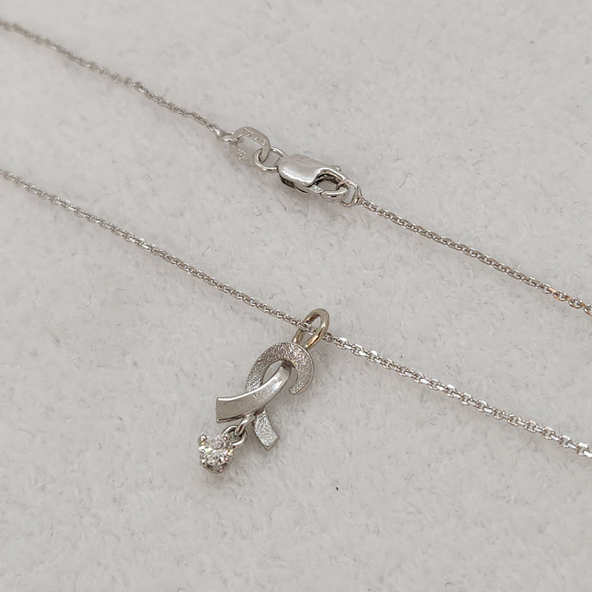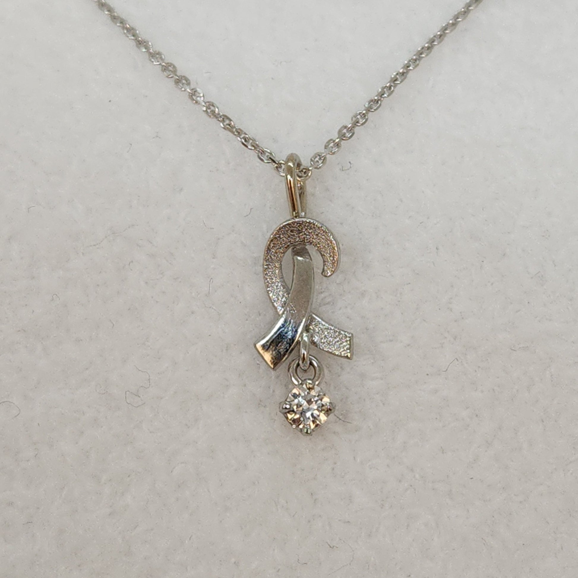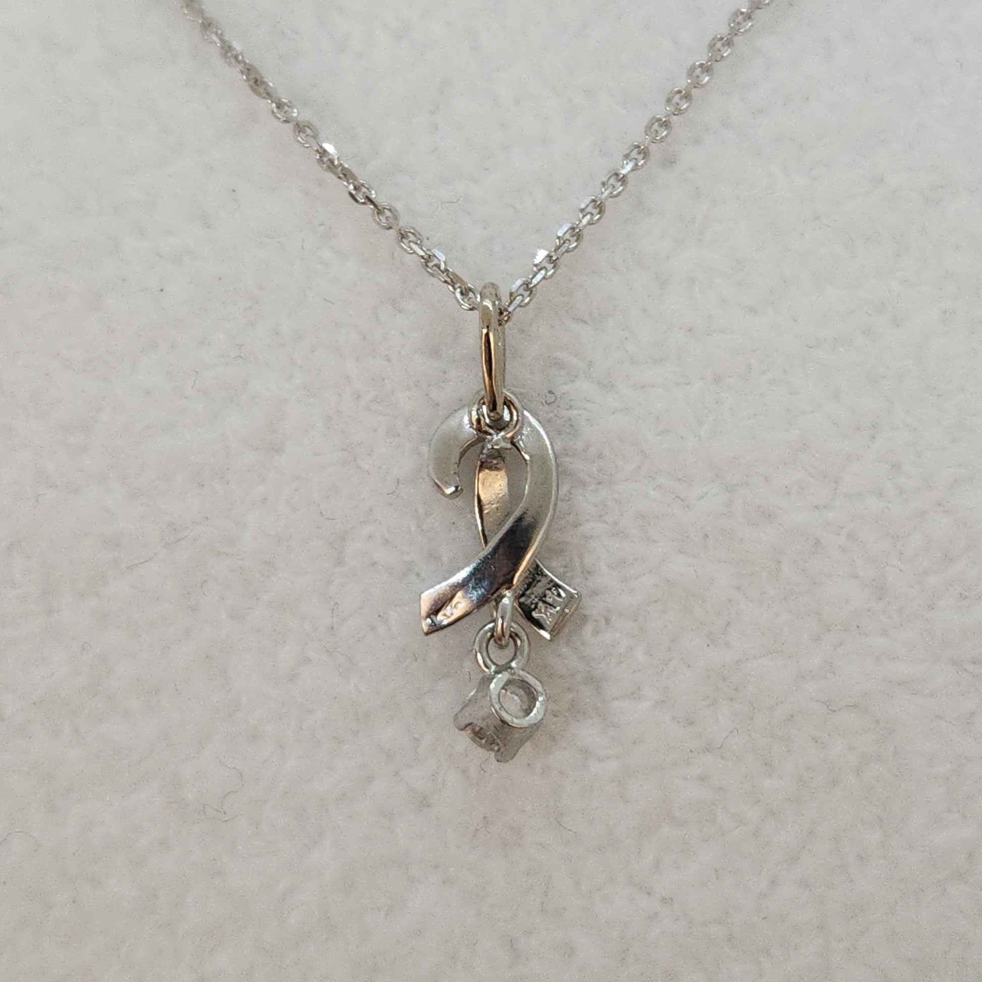 Reminicent of the cancer ribbon, this necklace reminds us of these ribbons that hold such important meaning to so many. You may wear this in celebration, for awareness or in memory of a loved one.