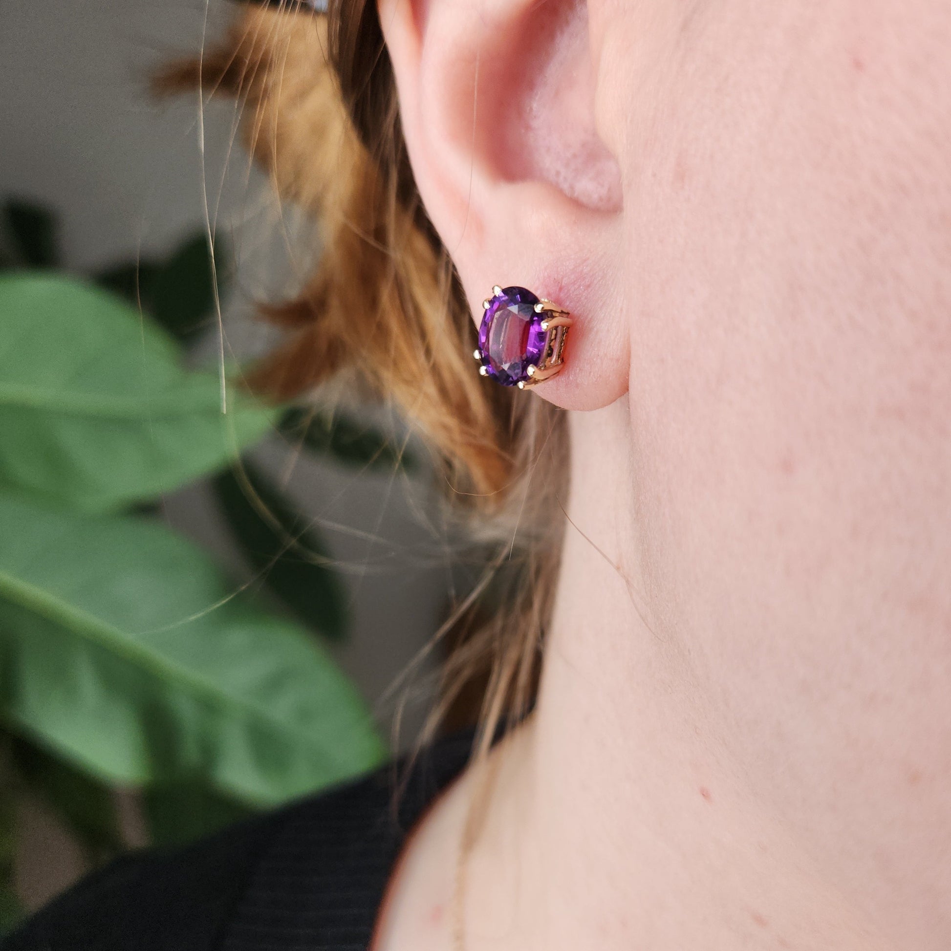 A true royal shade of purple, looking glamourous with their double claw style. An amethyst stud that is just a little different. It is also the February birthstone.